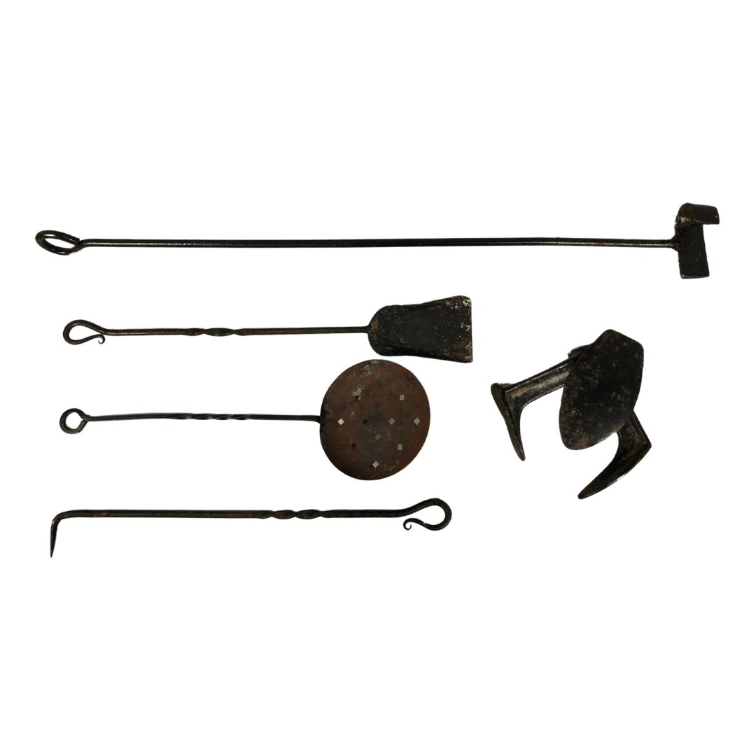 Collection of Vintage Items including Shoe Last, Branding Iron with Letter 'J' and Fireside Set.