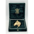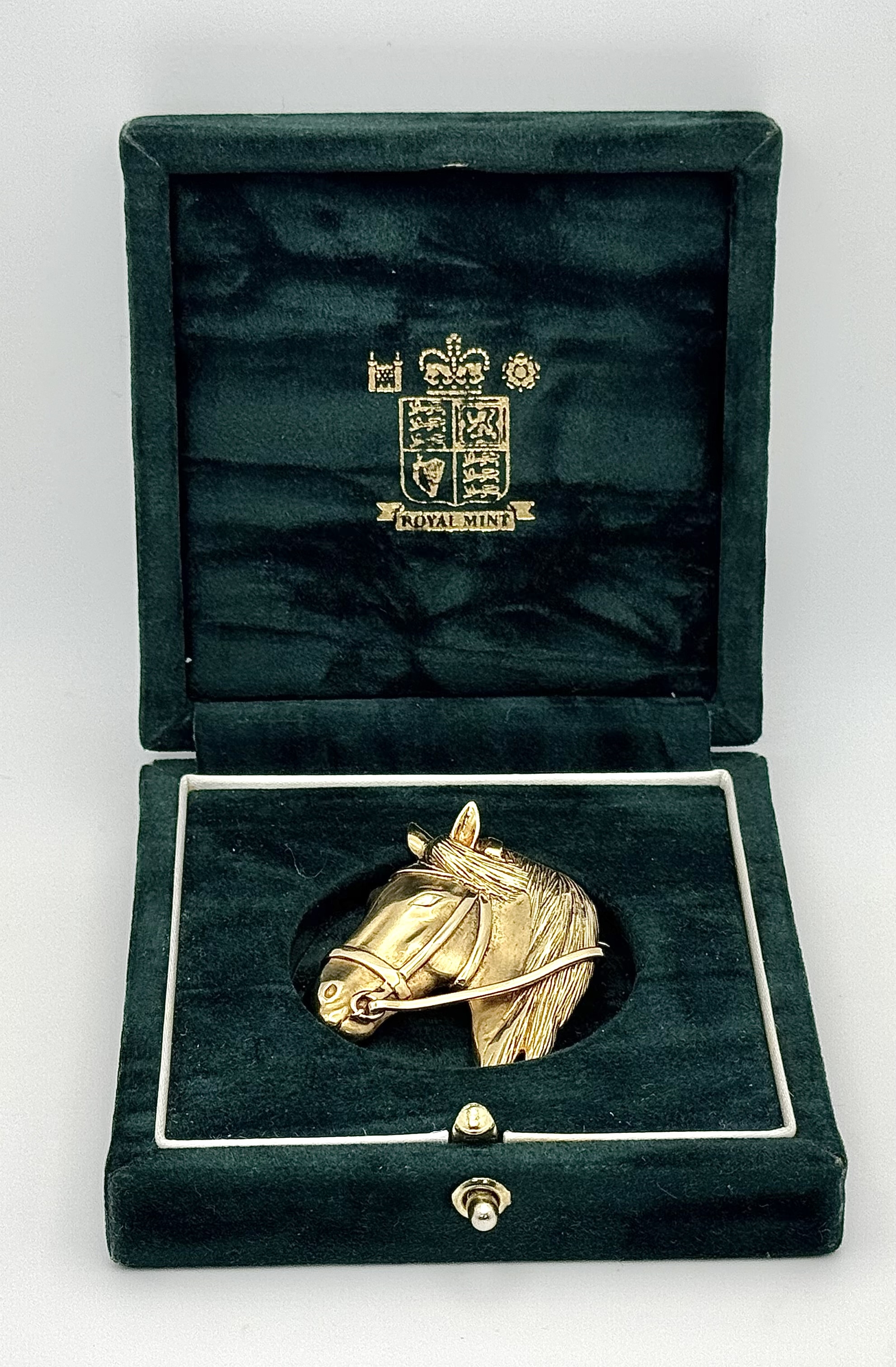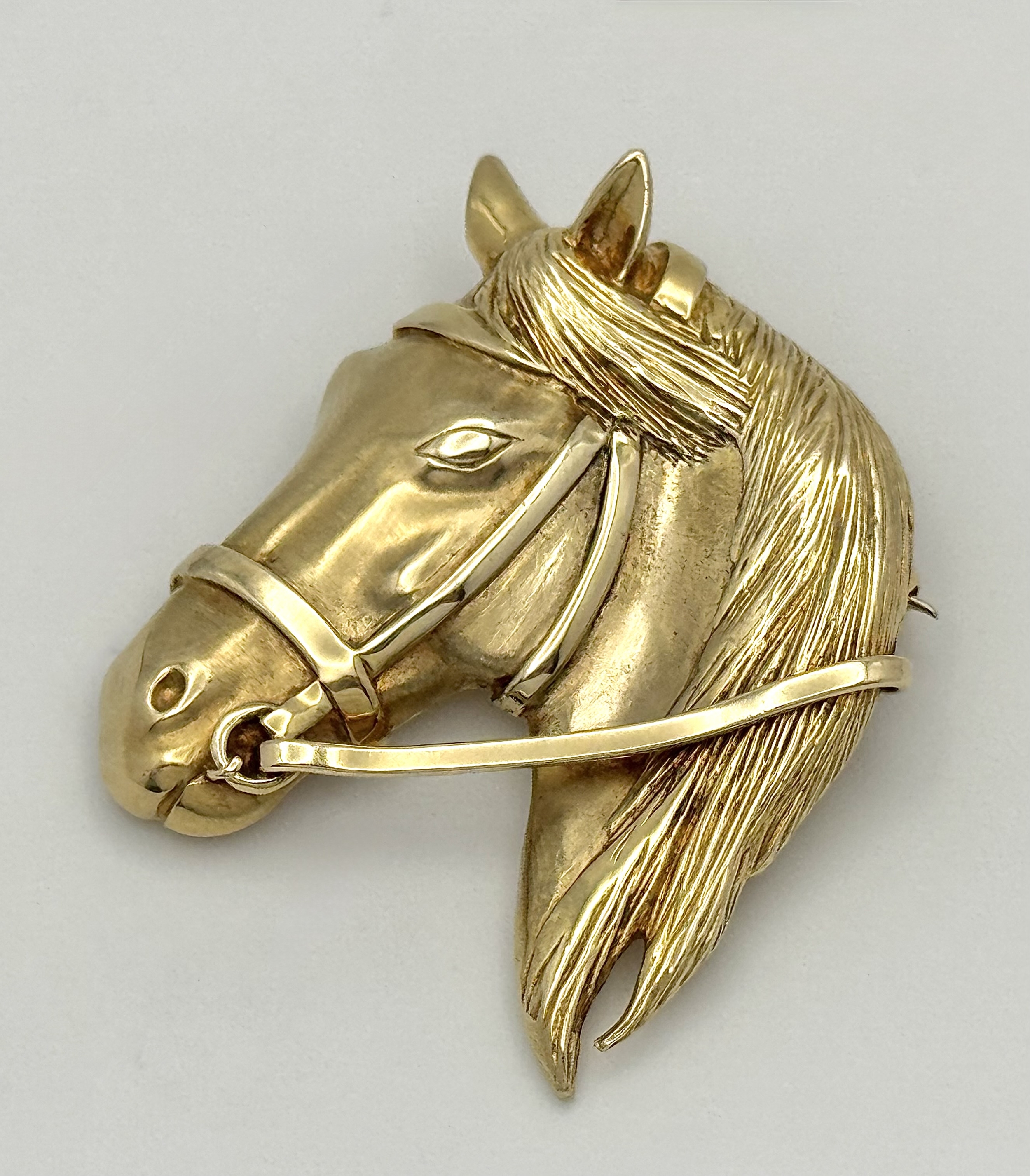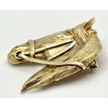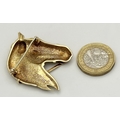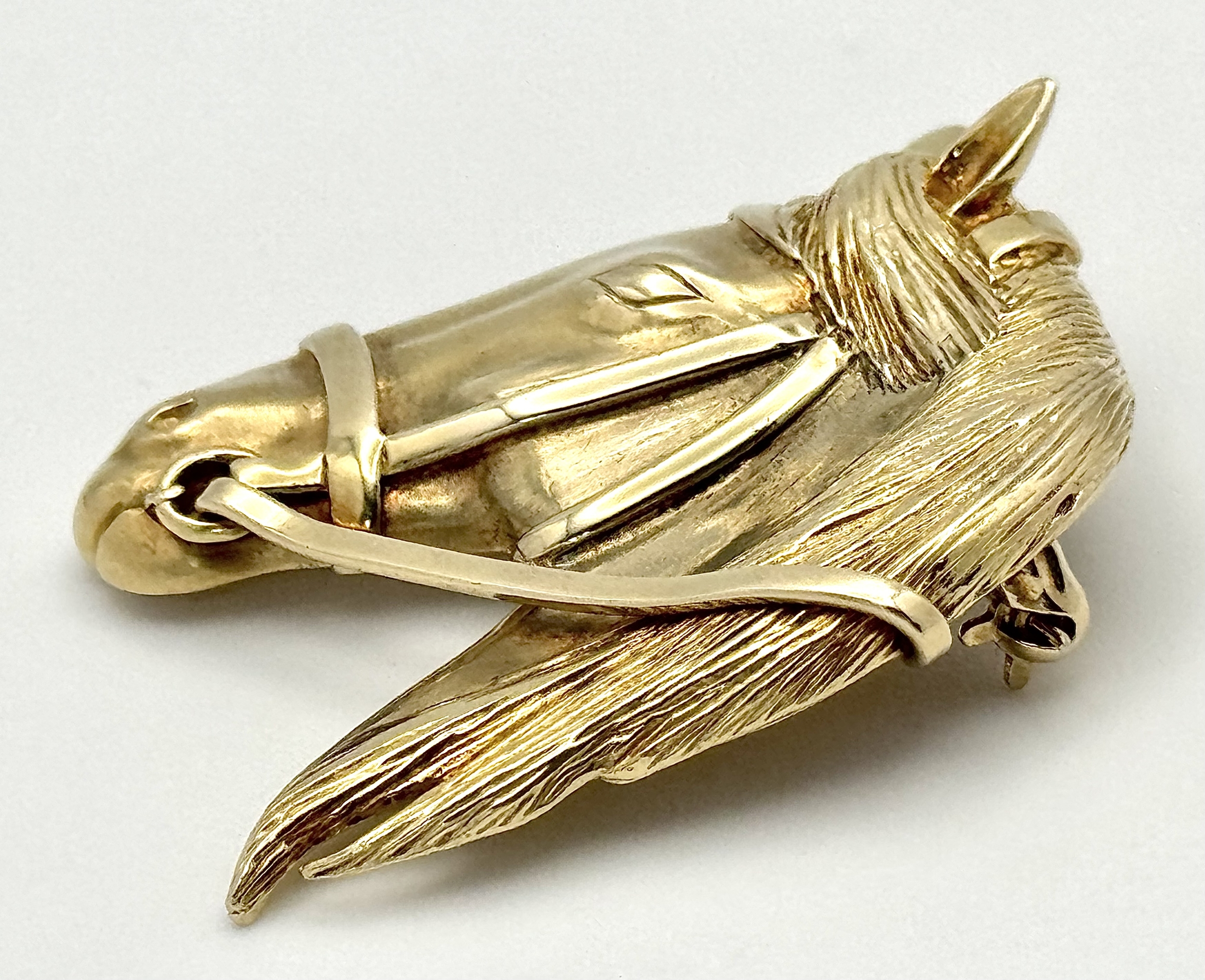 A 9K Yellow Gold Thoroughbred Horse Head Brooch. 4 x 5cm. 13g.