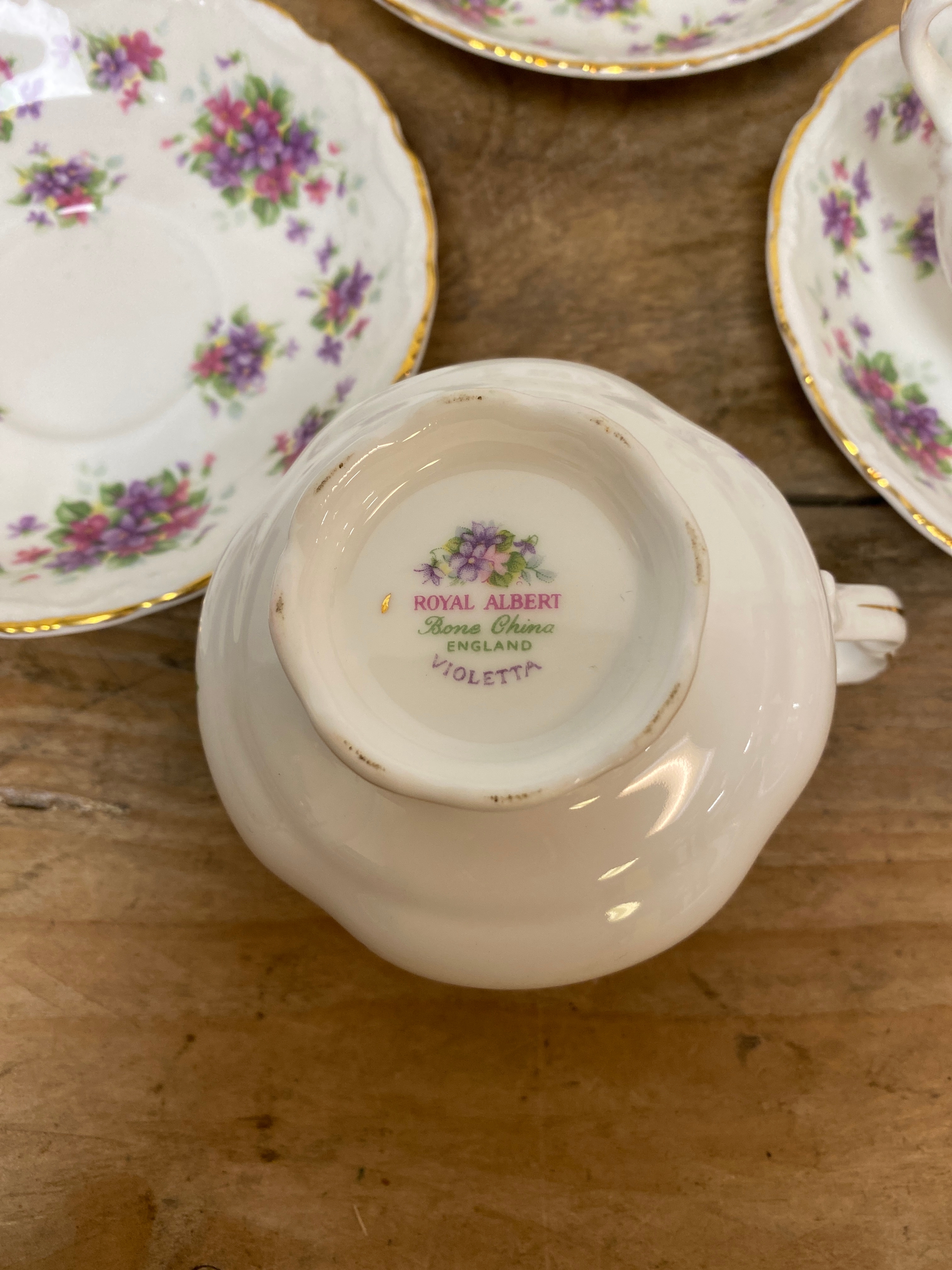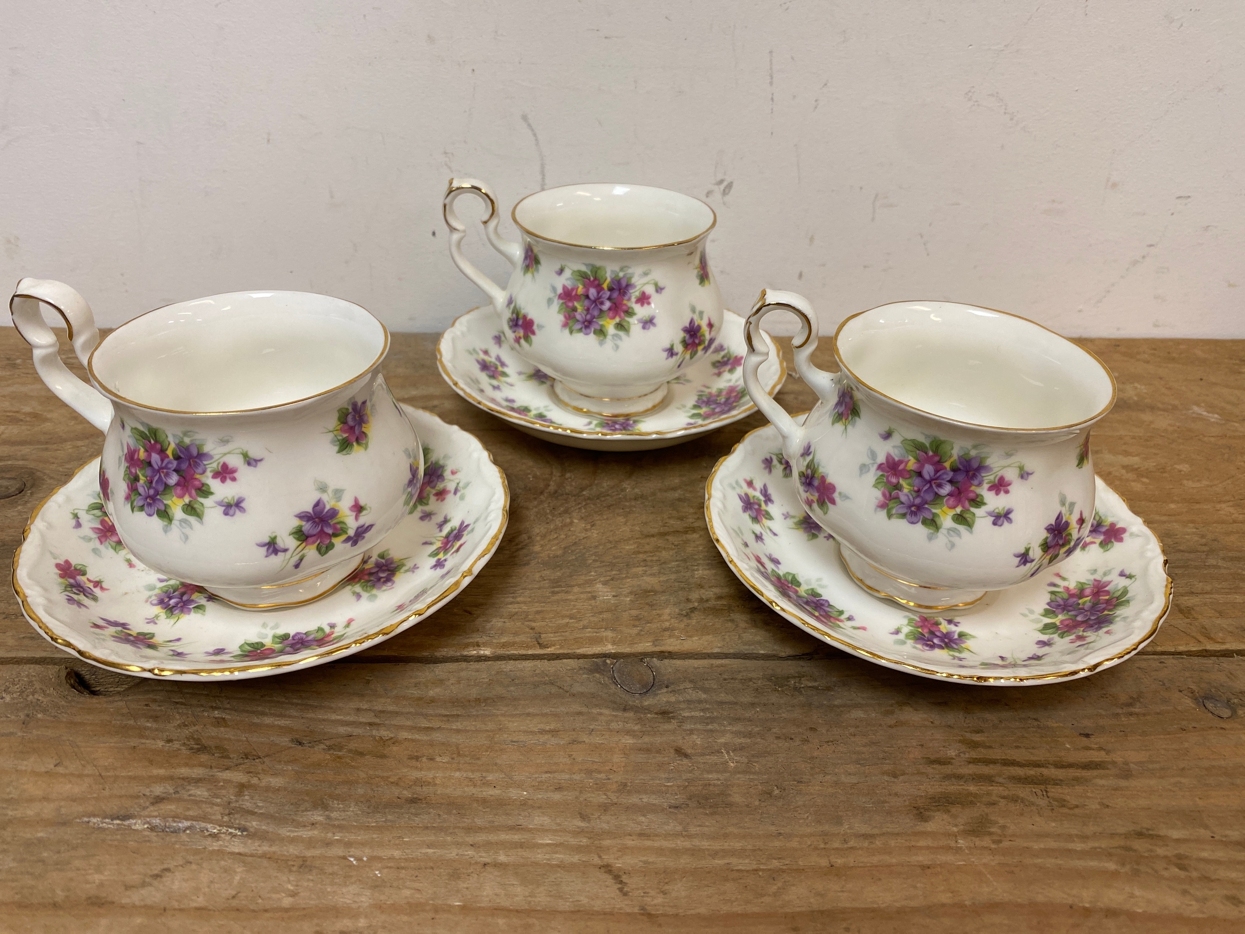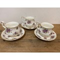 Royal Albert Violetta Bone China Tea Cups Saucers x 3