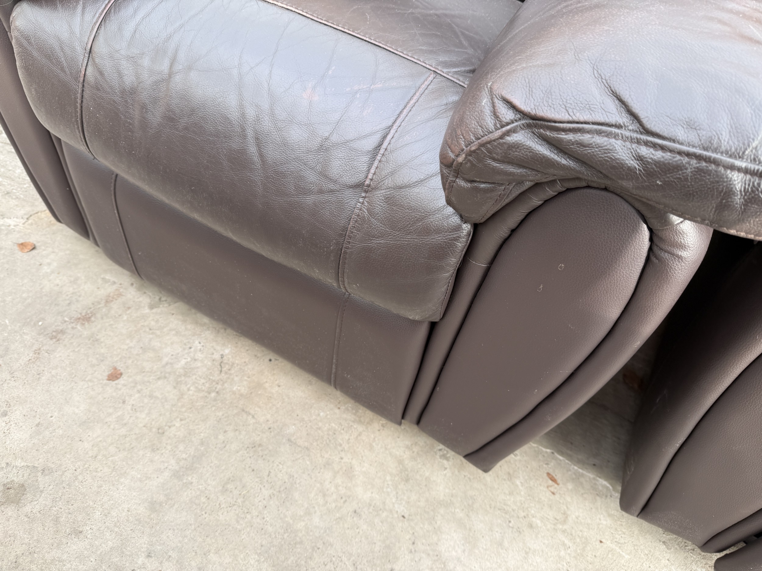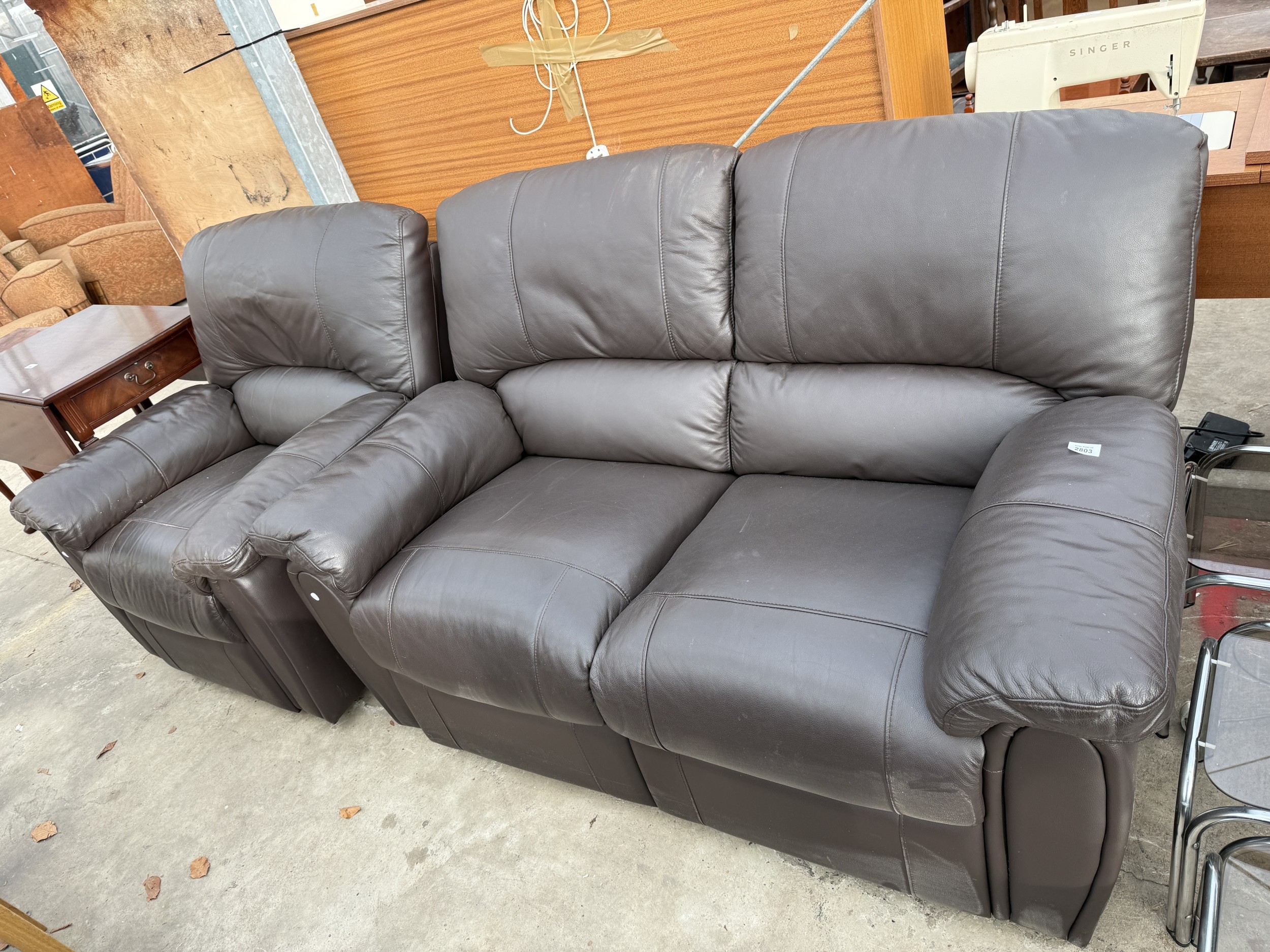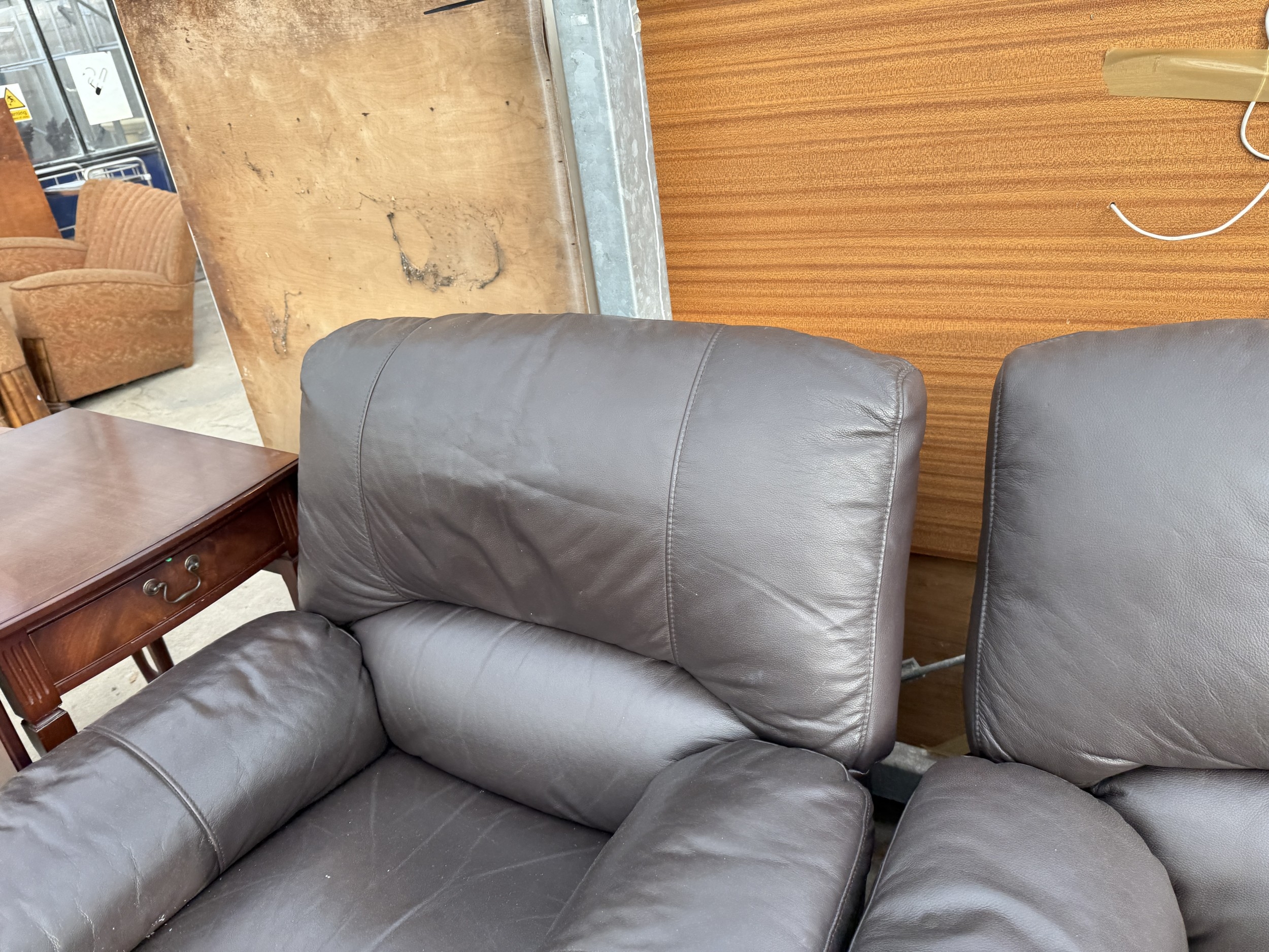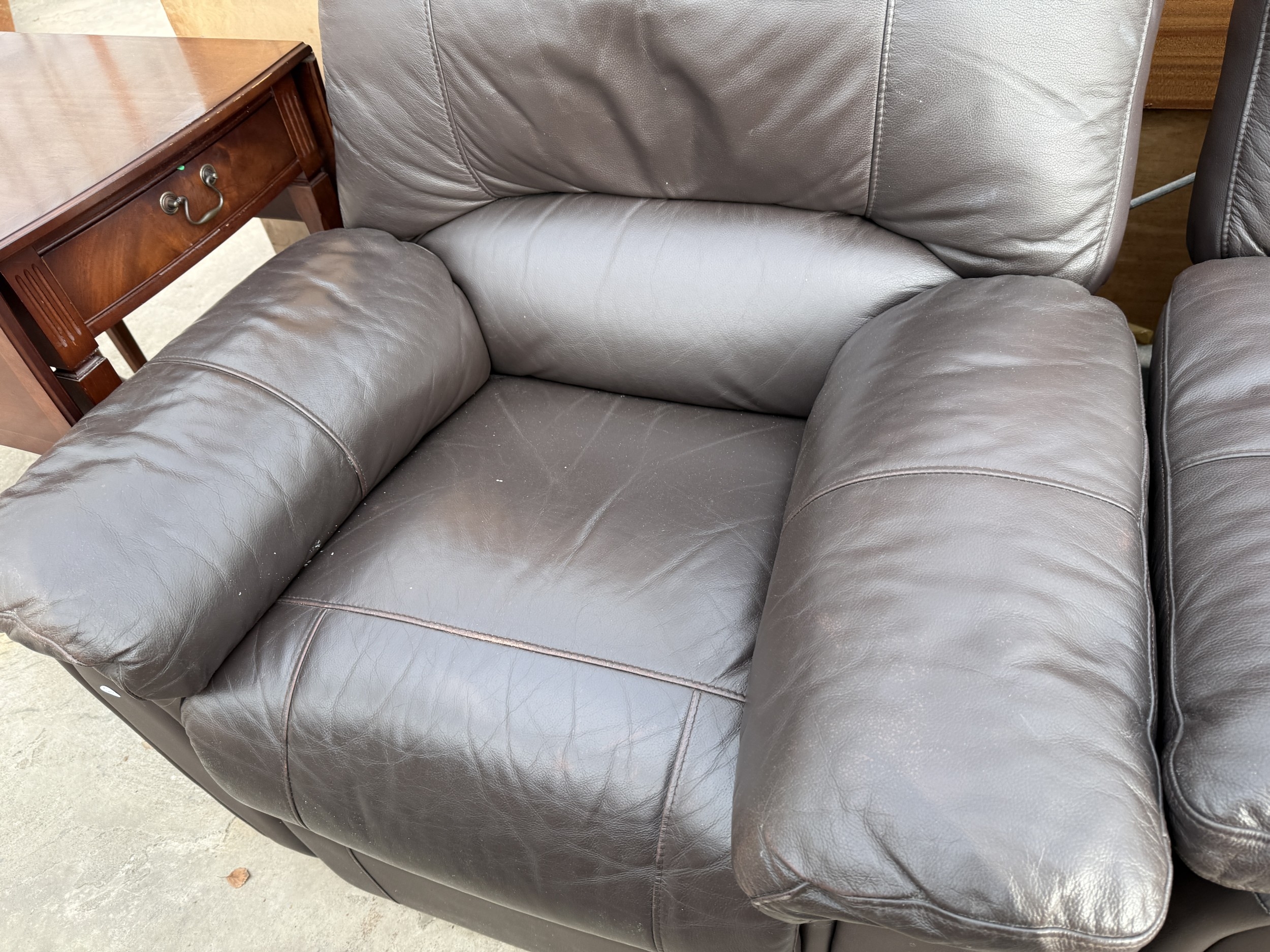 A FAUX LEATHER RECLINER TWO SEATER SETTEE AND MATCHING CHAIR