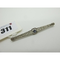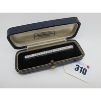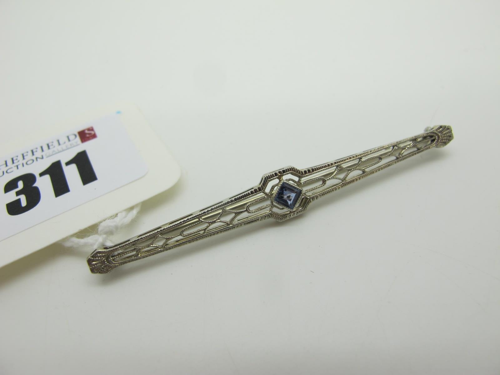 A Decorative Dainty Belais Single Stone Bar Brooch, of geometric pierced design, stamped "Belais 18k", 5.7cm long.
