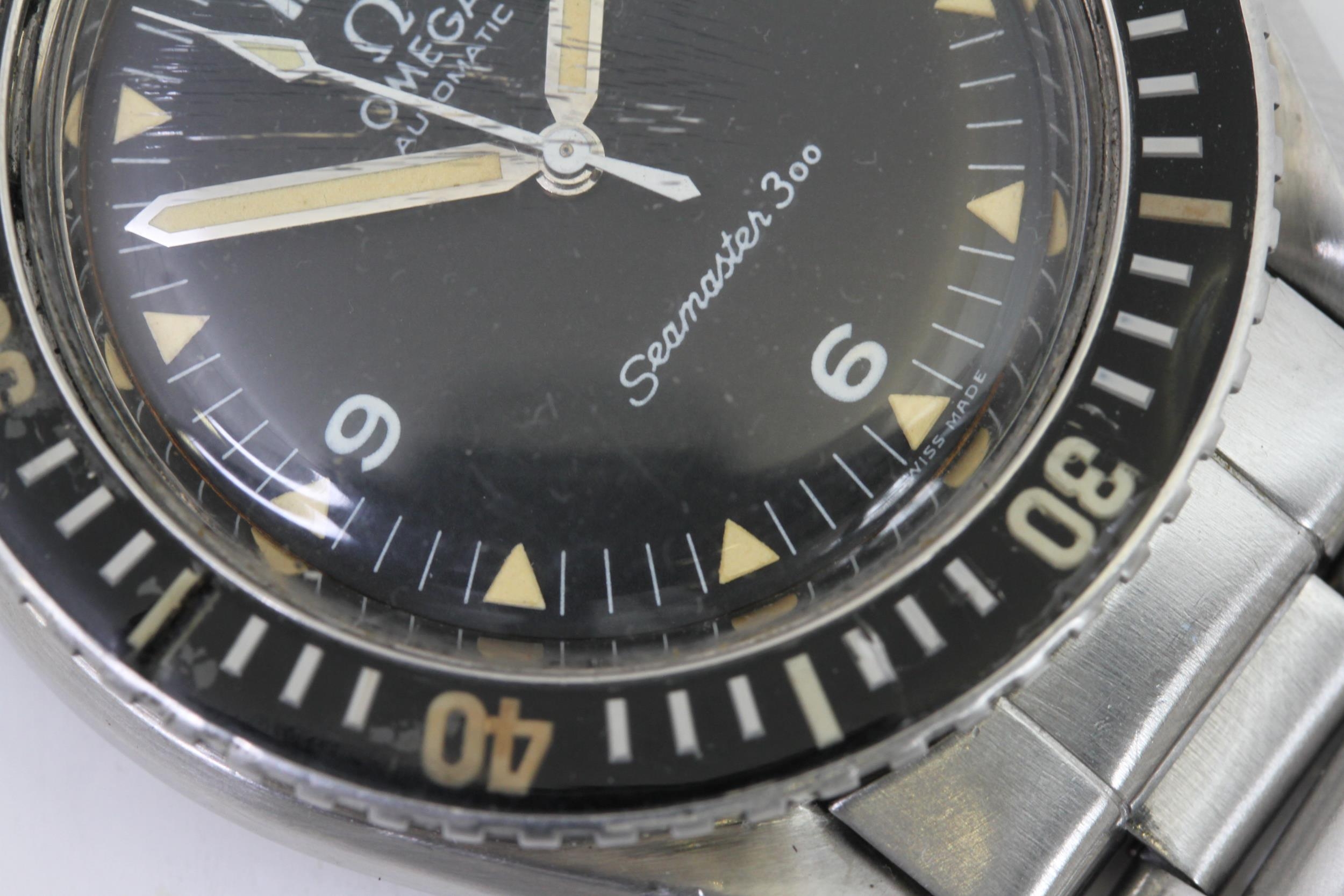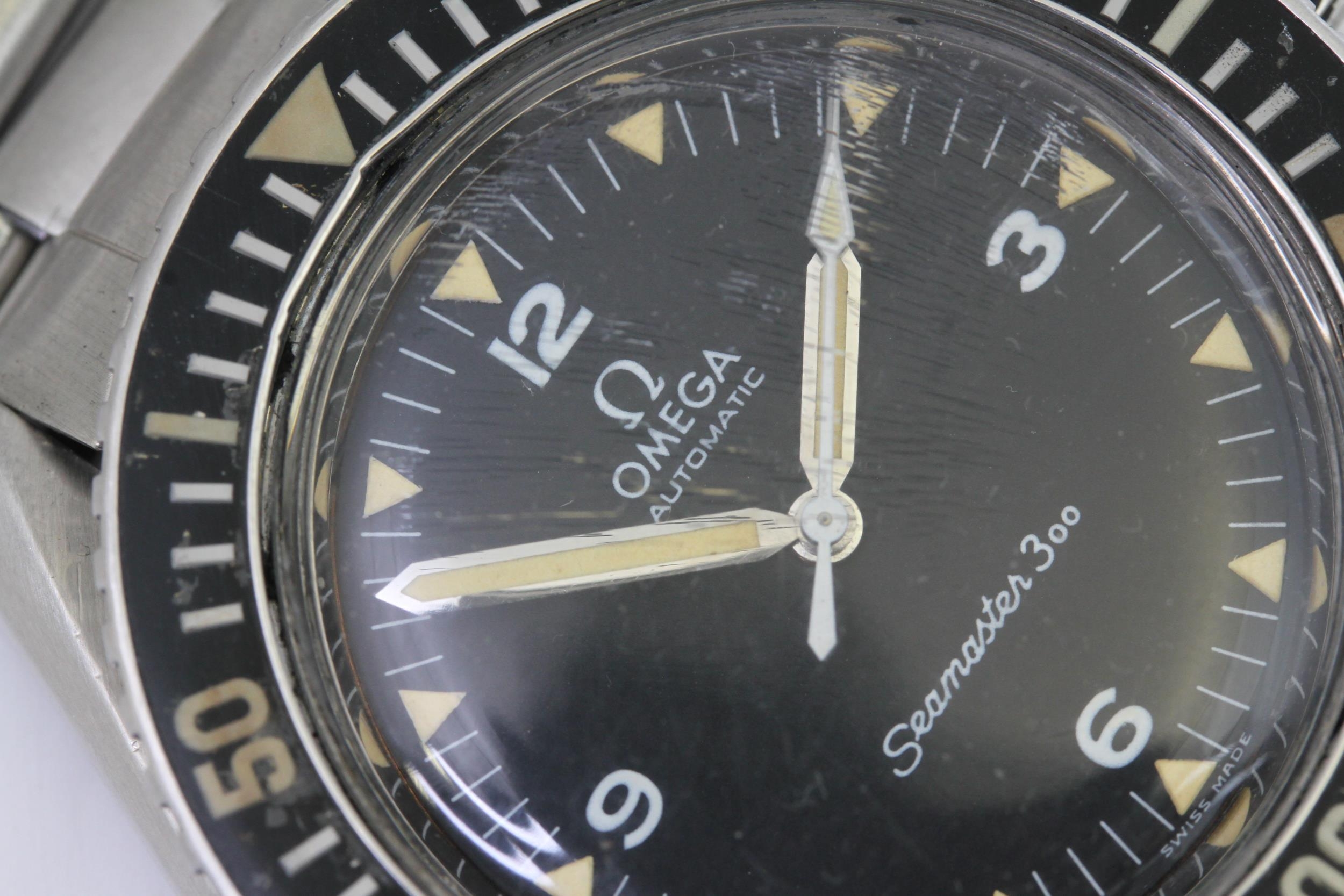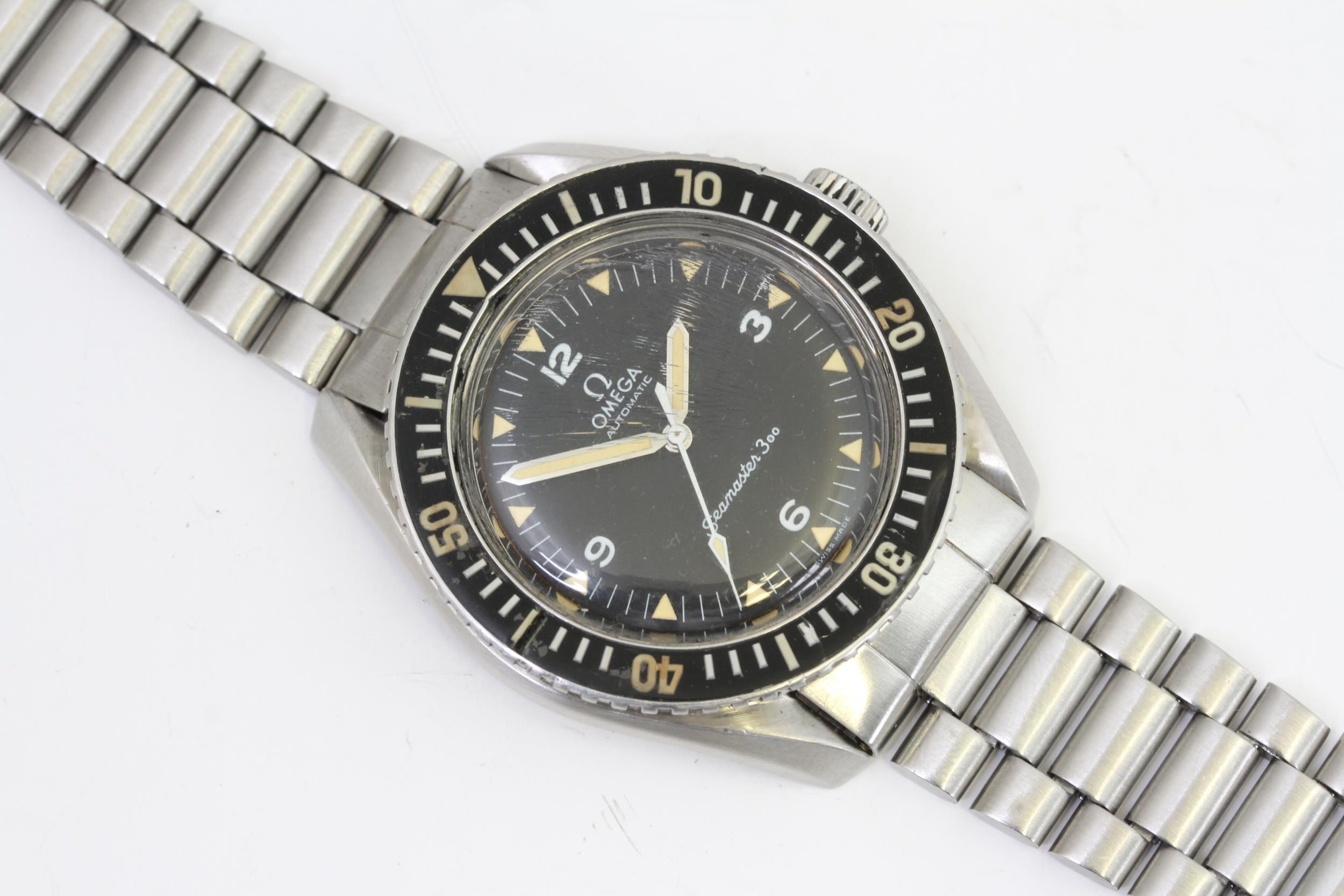 VINTAGE OMEGA SEAMASTER 300 ‘STAR DIAL’ REFERENCE 165.024, black dial with patina triangular hour markers, Arabic numerals at quarters, matching patina hands, 60min rotating bezel, stainless steel case 42mm, screw down case back with Emblem, inner case back signed and numbered, Omega 552 automatic movement, movement number 2030****, Omega bracelet, 1171 marked clasp, 676 end links, overall good condition, currently running, dial very good, age related wear to plexi glass and bezel