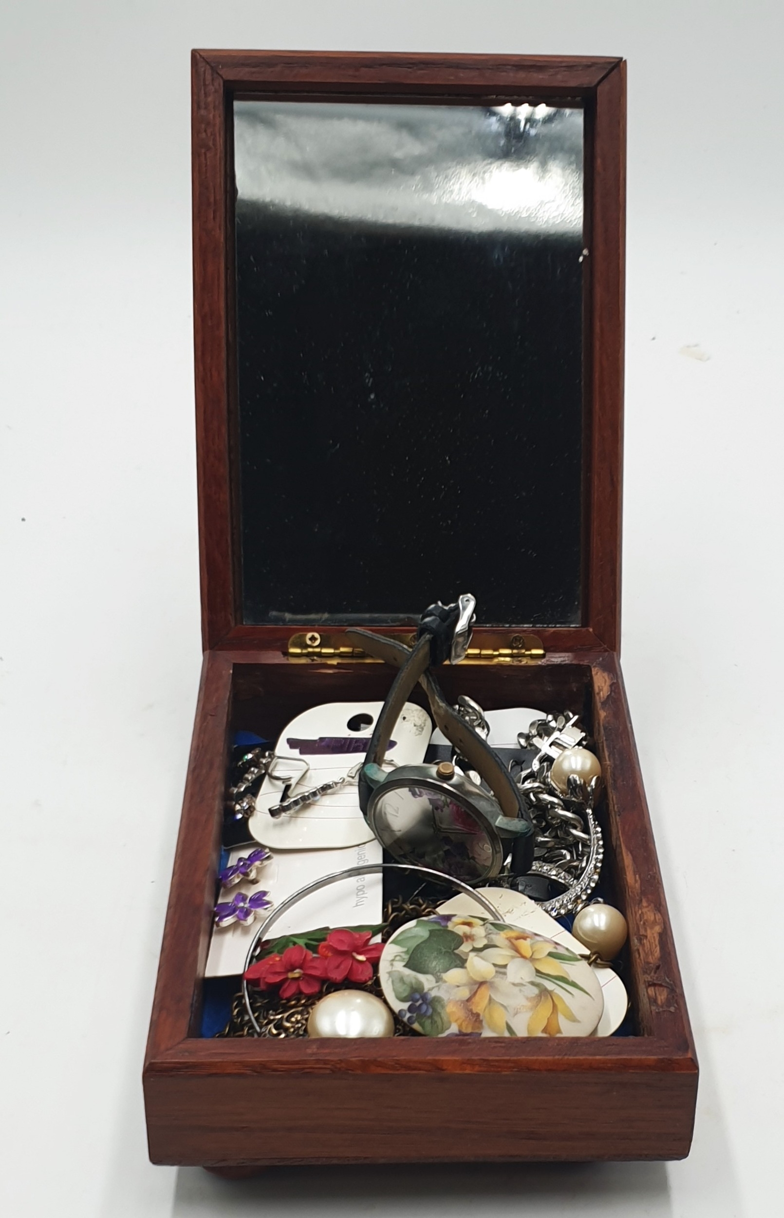 WOODEN JEWELLERY BOX And CONTENTS