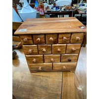 A Small carved pine storage chest, detailed with birds, grapes and floral design front panel. Interior has small lift up storage area.