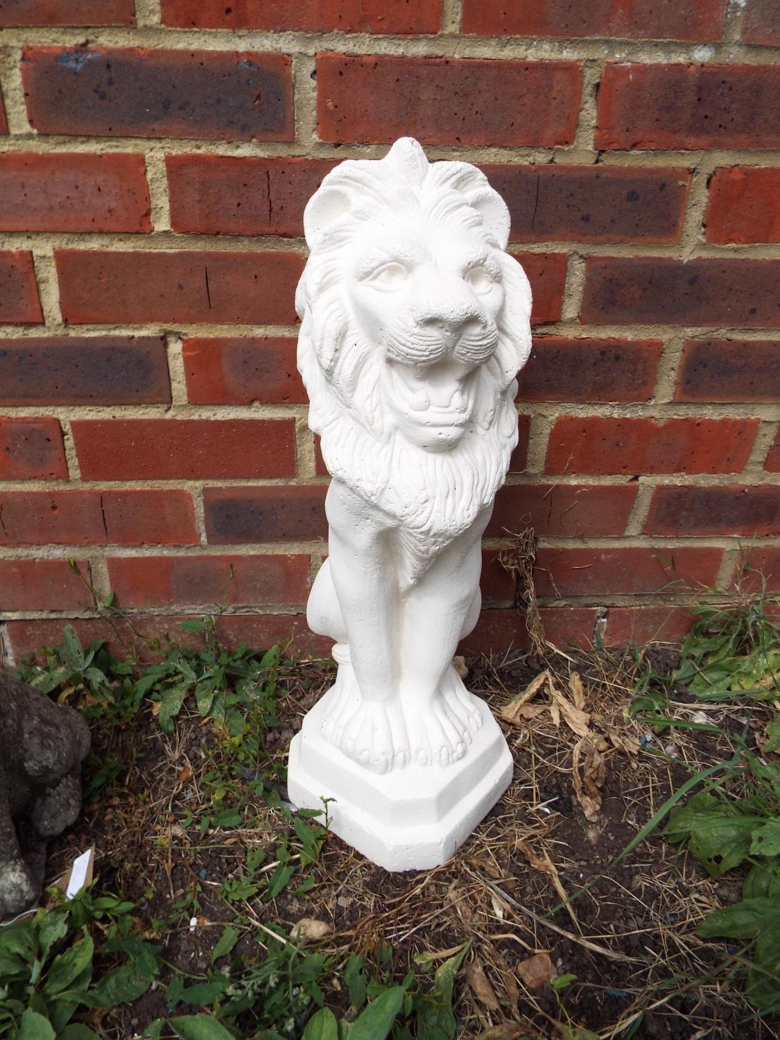 A stoneware white painted garden lion
