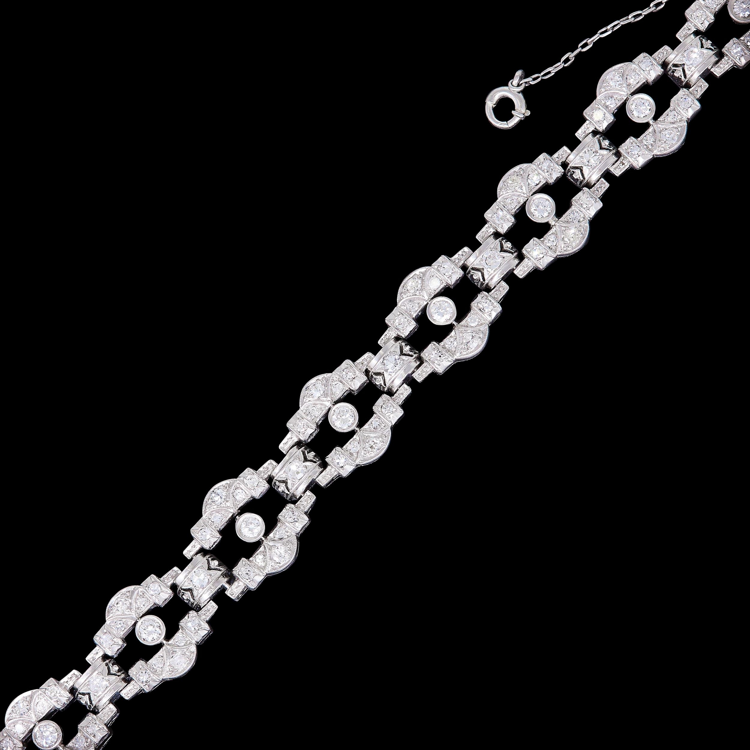 ART-DECO DIAMOND OPENWORK LINK BRACELET, set with diamonds totalling approx 1.90 ct. L. 16.5 cm. 25.7 grams.