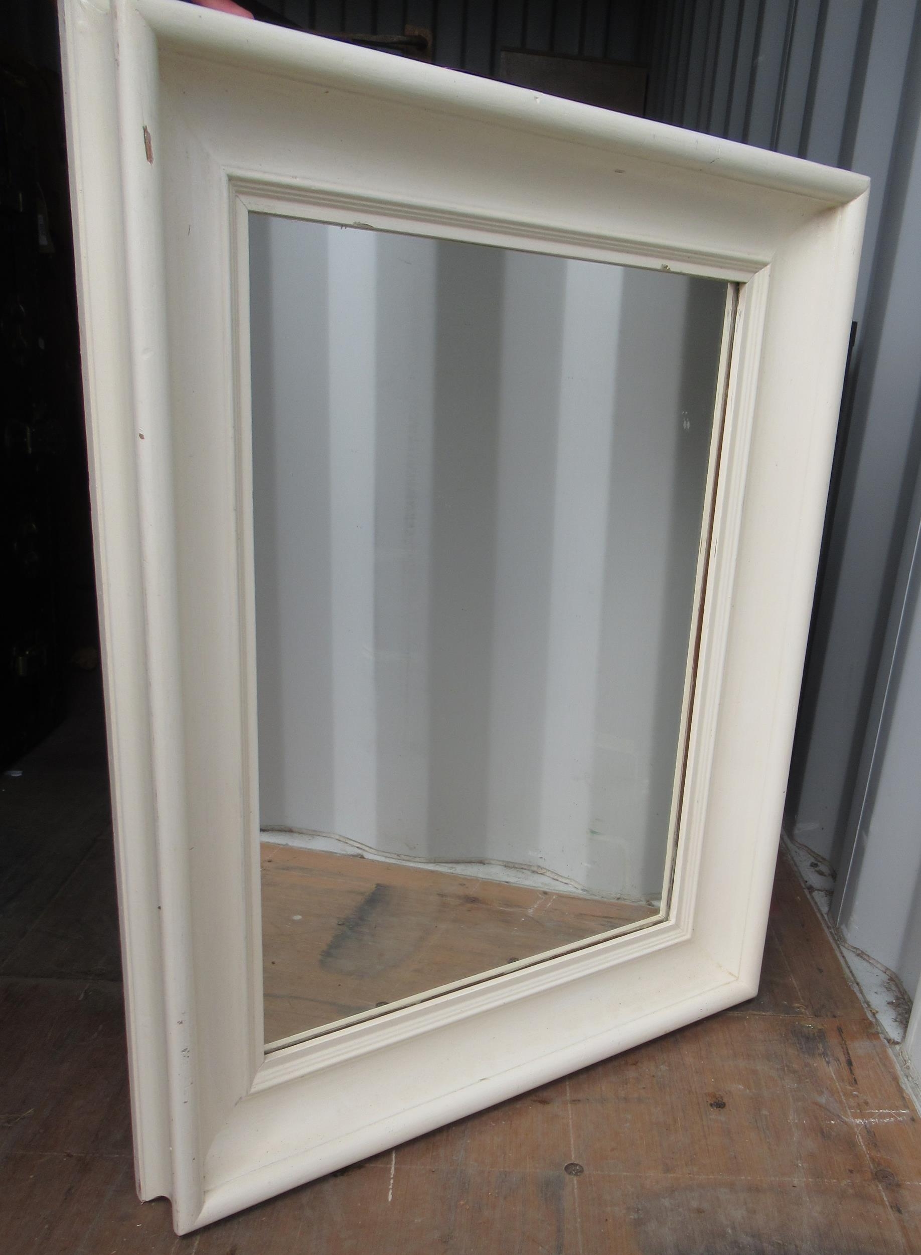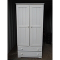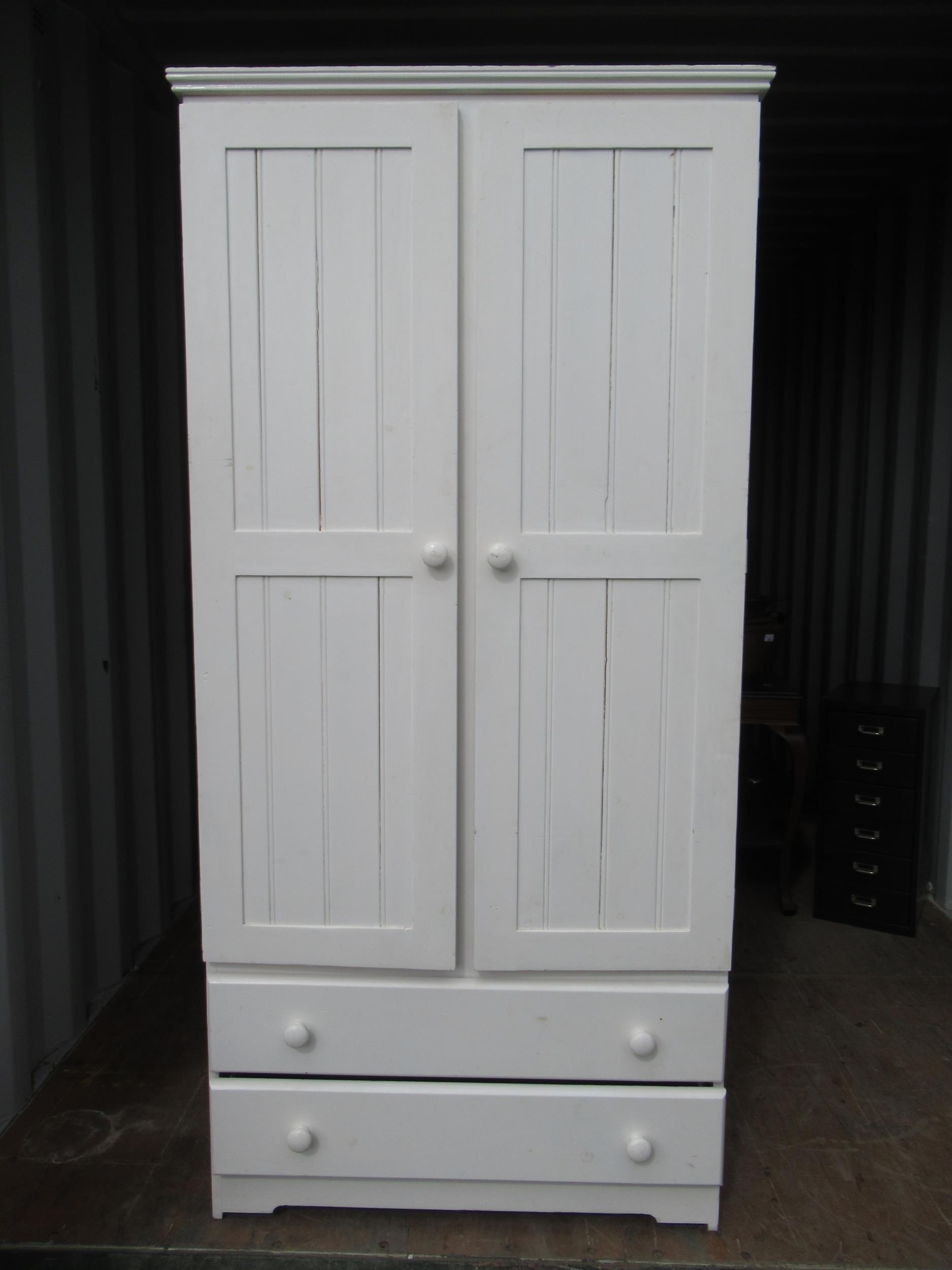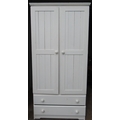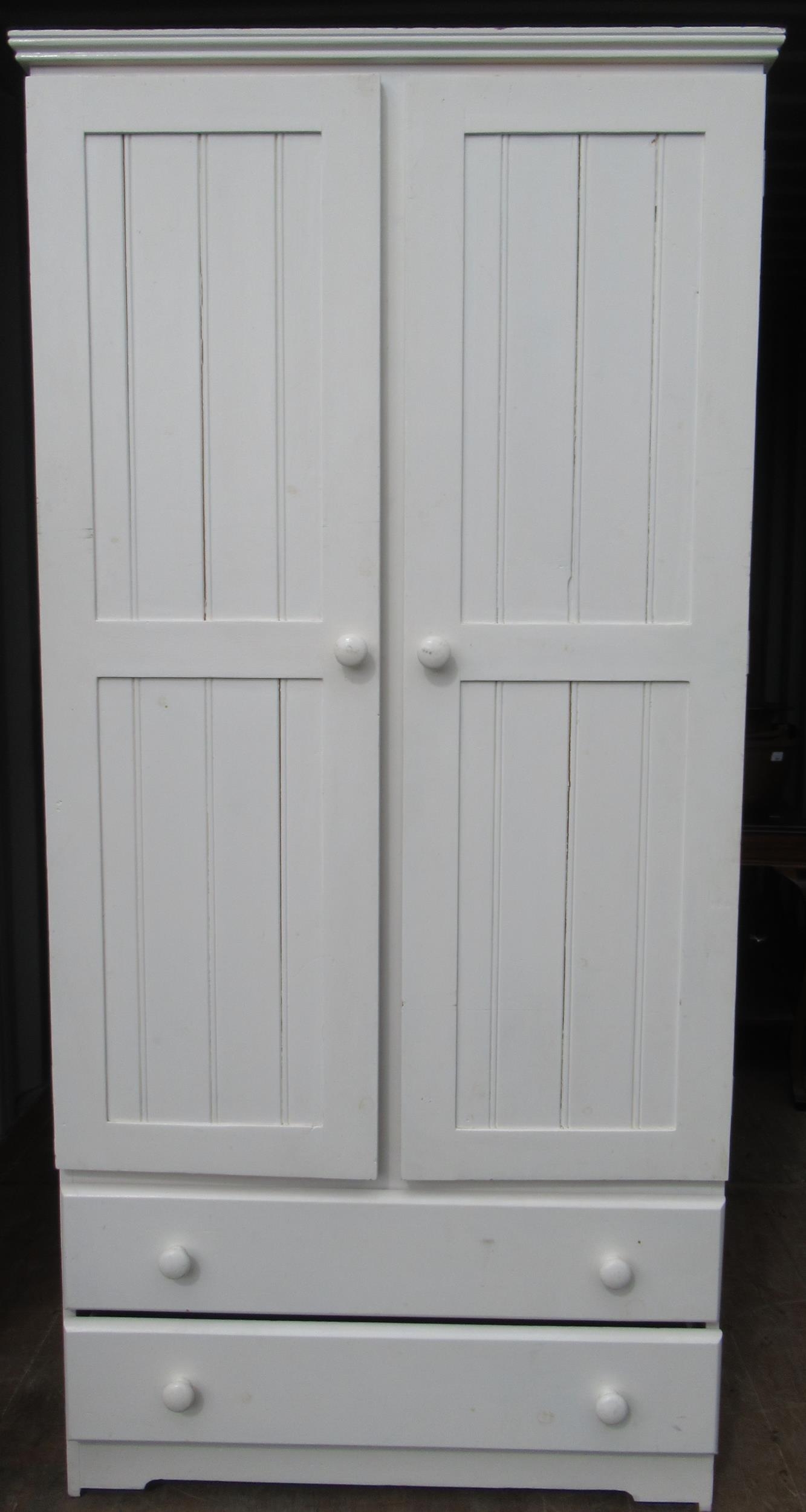 White painted pine wardrobe with two doors above two drawers W80cm D55cm H185cm, and a rectangular mirror in white painted frame (2)