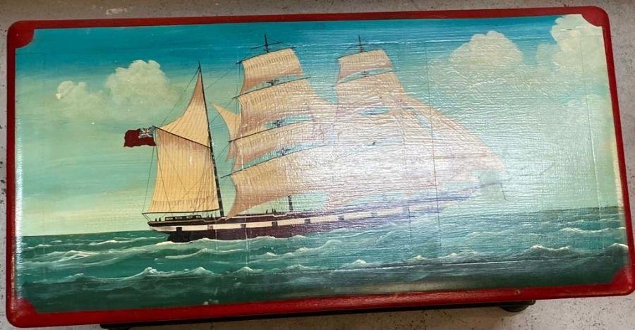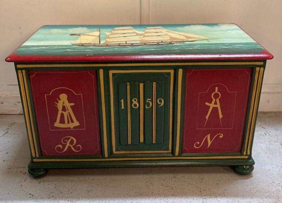 A naval themed hand painted blanket box (96cm x 49cm x55cm)