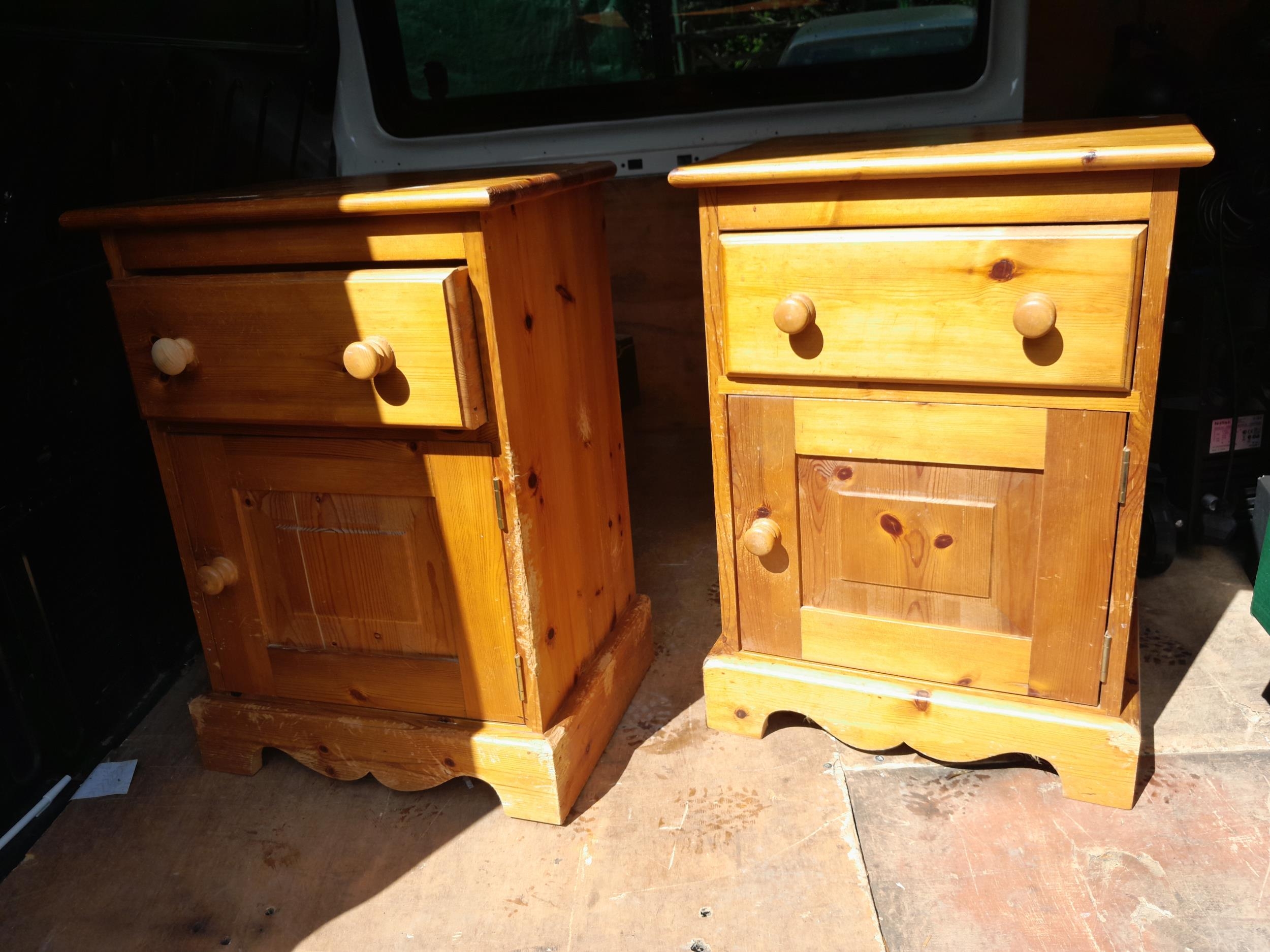 2 x pine bedside cupboards & enamel bread bin