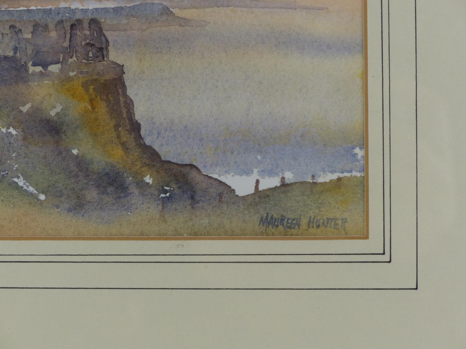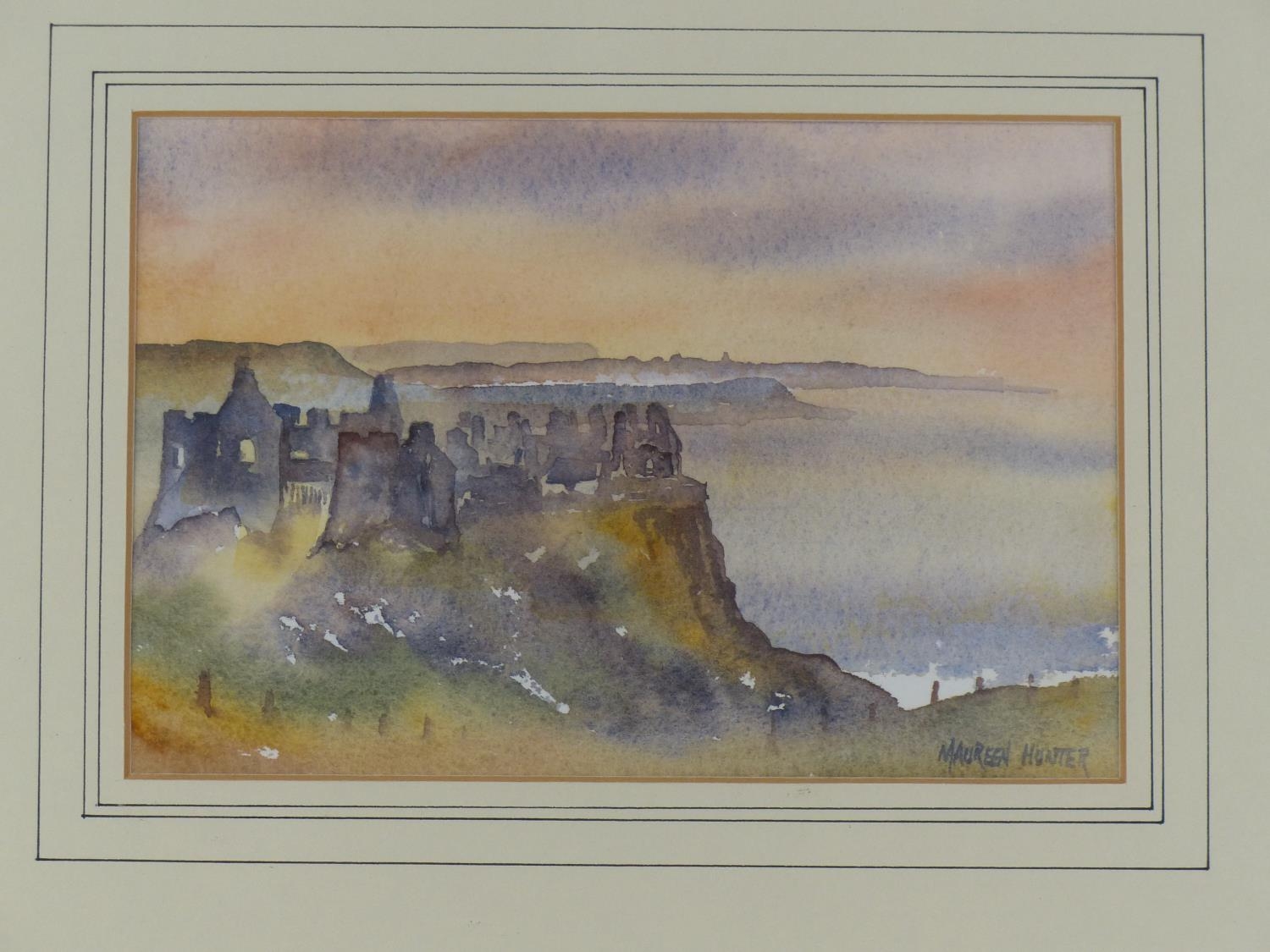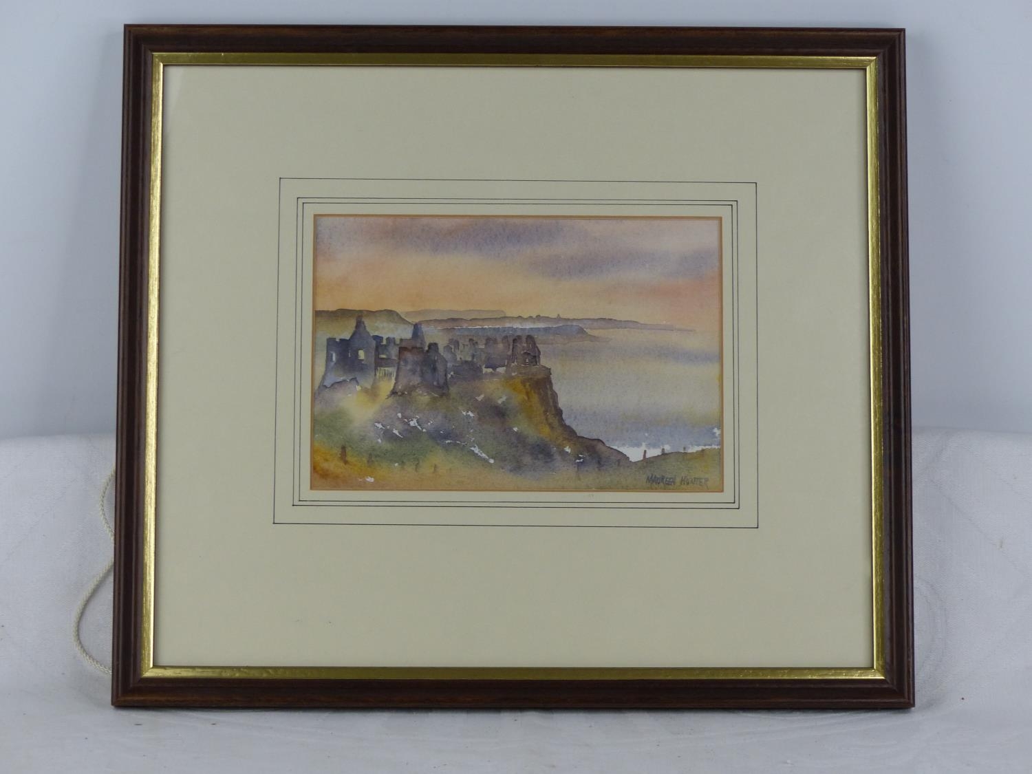 A small framed watercolour 'Dunluce Castle' signed Maureen Hunter.