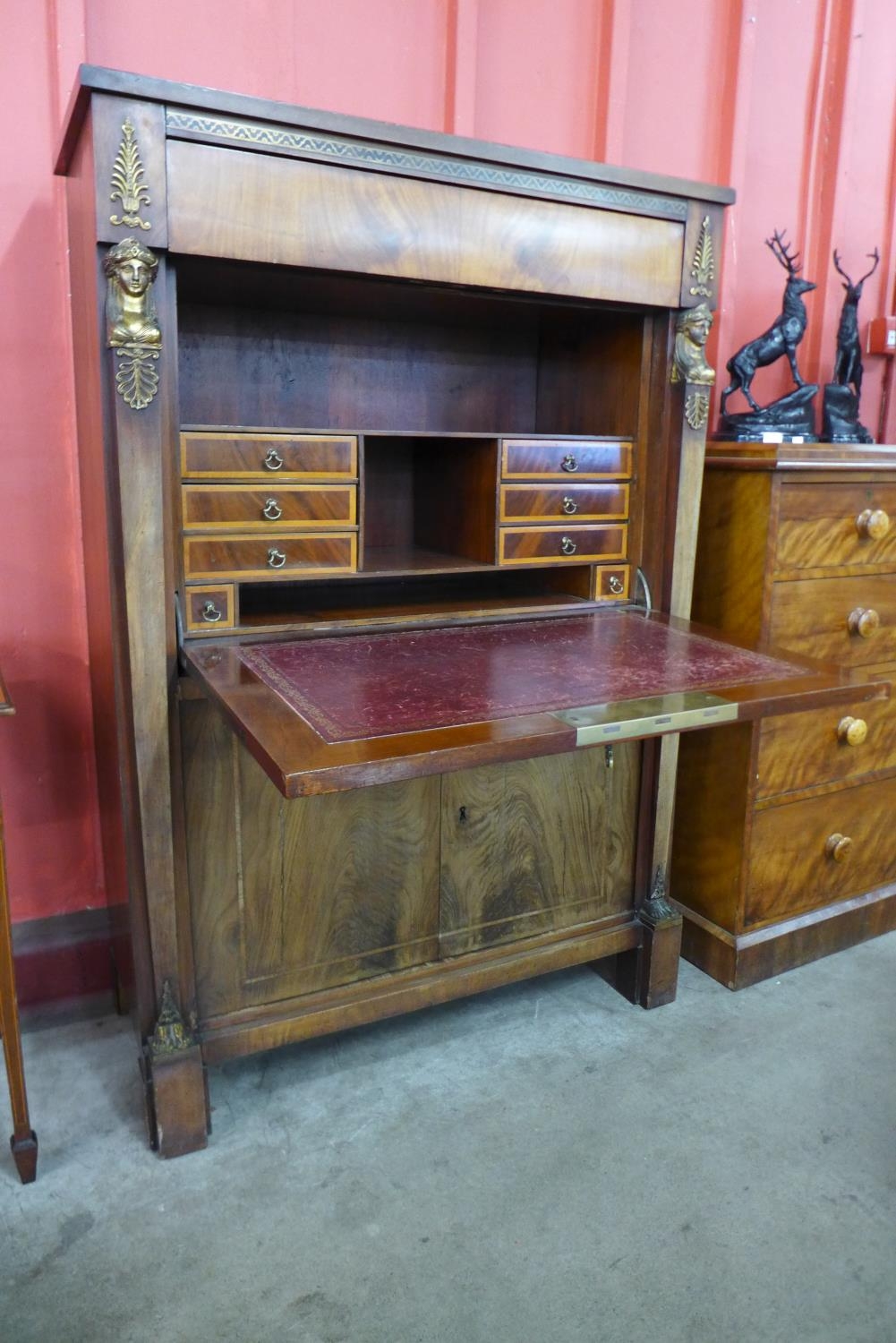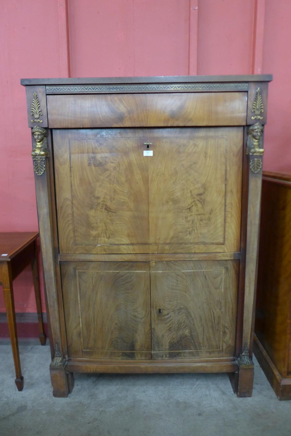 A French Empire Revival mahogany and gilt metal mounted secretaire a abattant