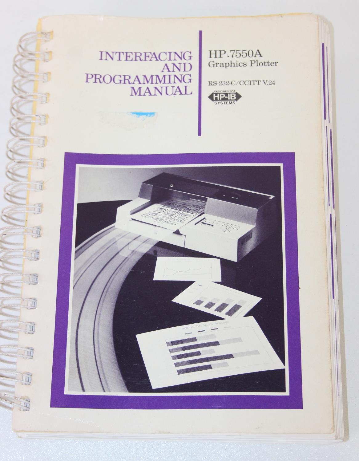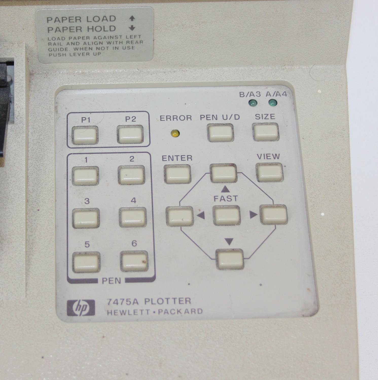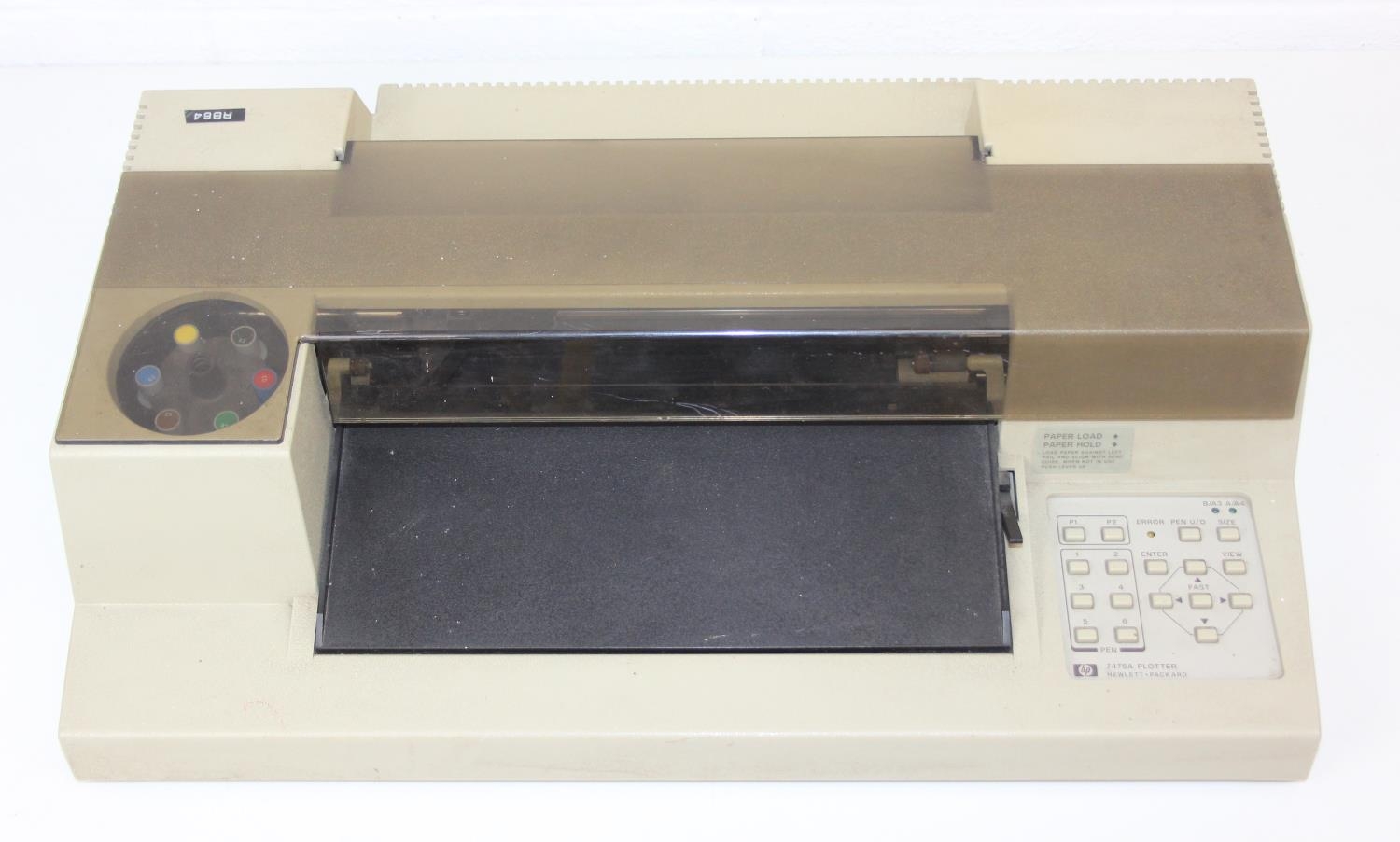 A vintage HP 7475a Desktop Pen Plotter or printer with a number of consumables to inc paper, and a manual