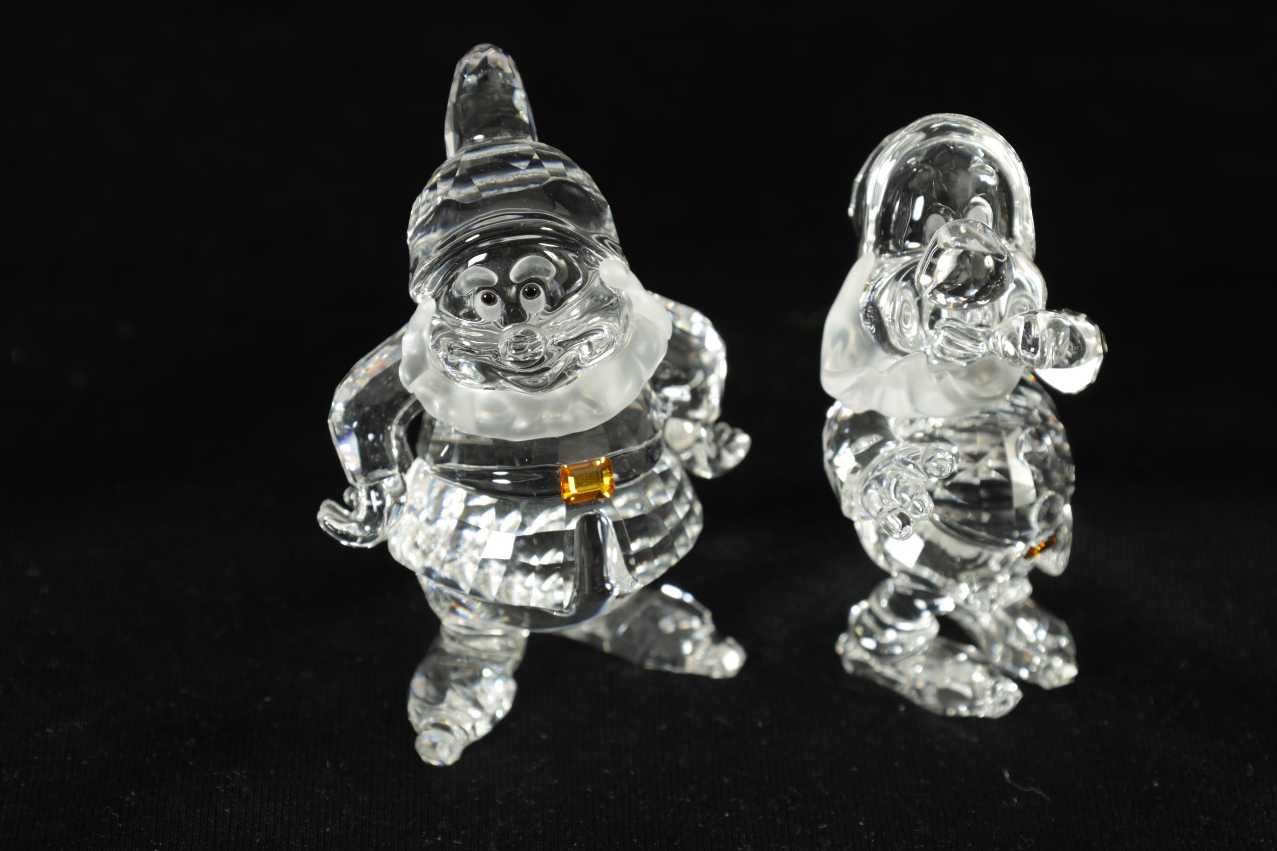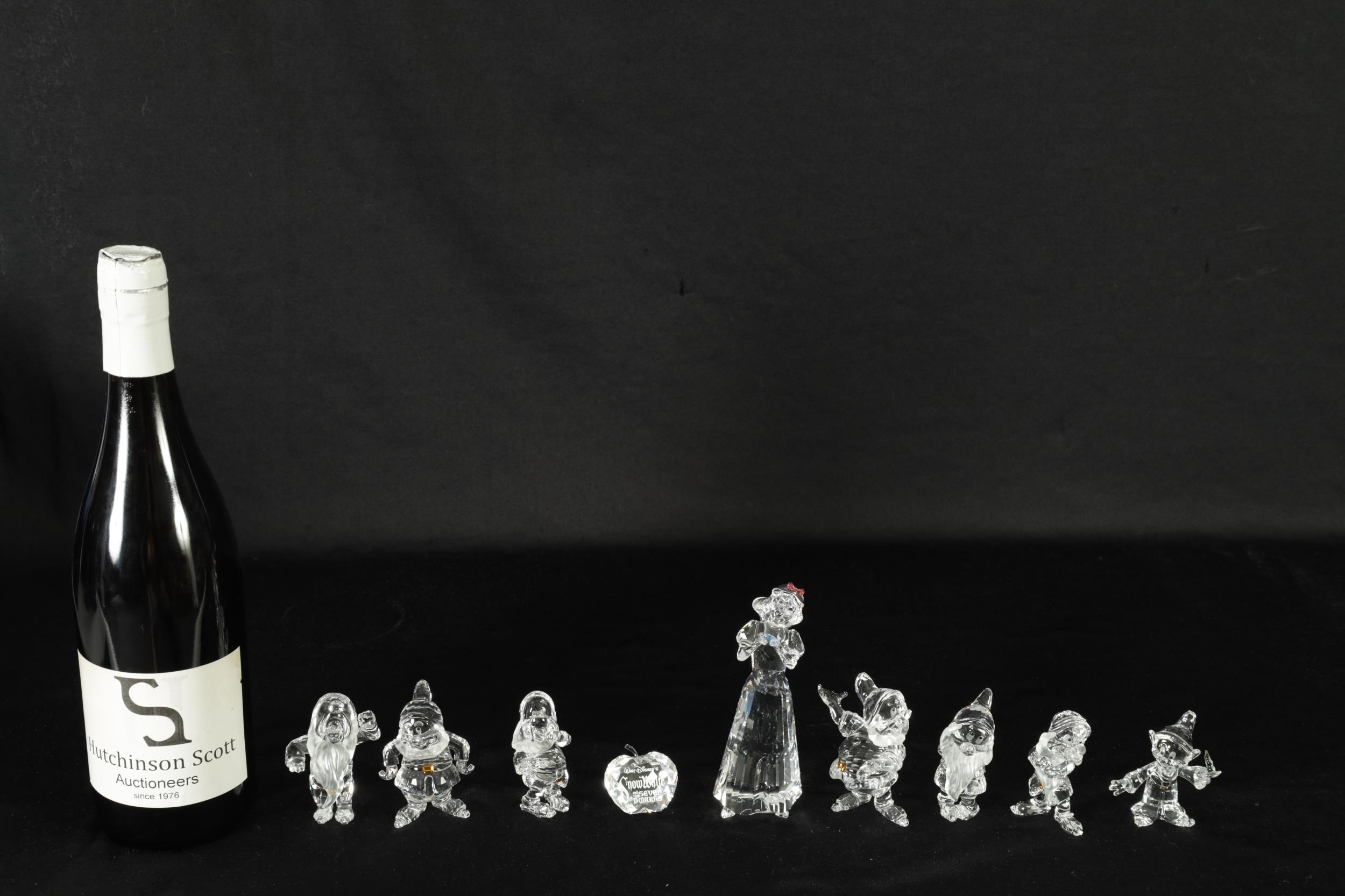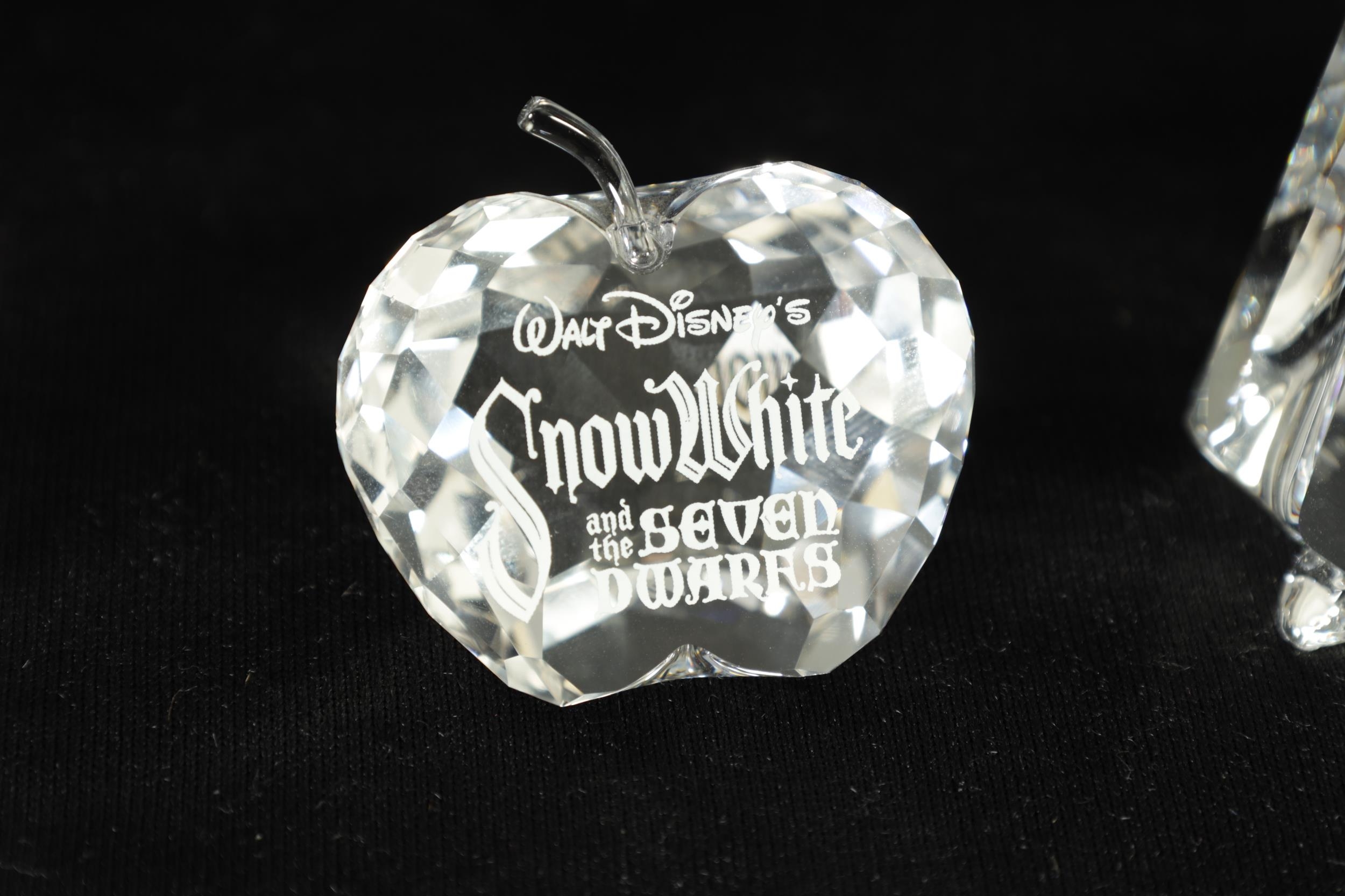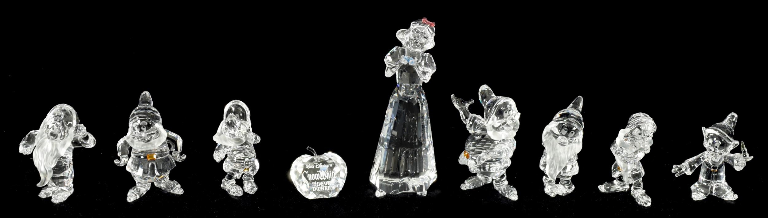 A 20TH CENTURY DISNEY SNOW-WHITE COLLECTION OF SWAROVSKI CRYSTAL comprising the 7 dwarves, snow white and an apple-shaped title crystal. (12.5cm and smaller)