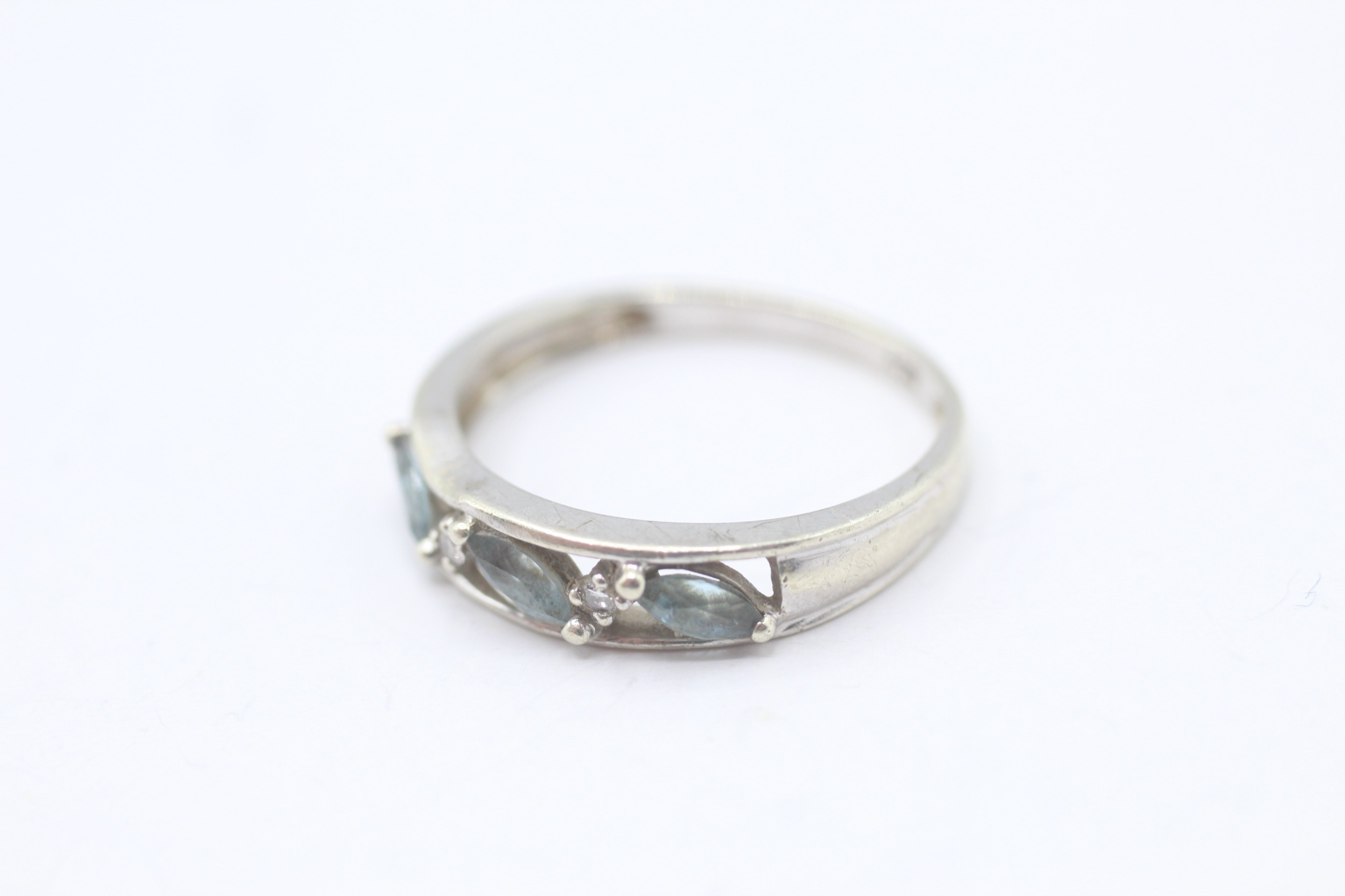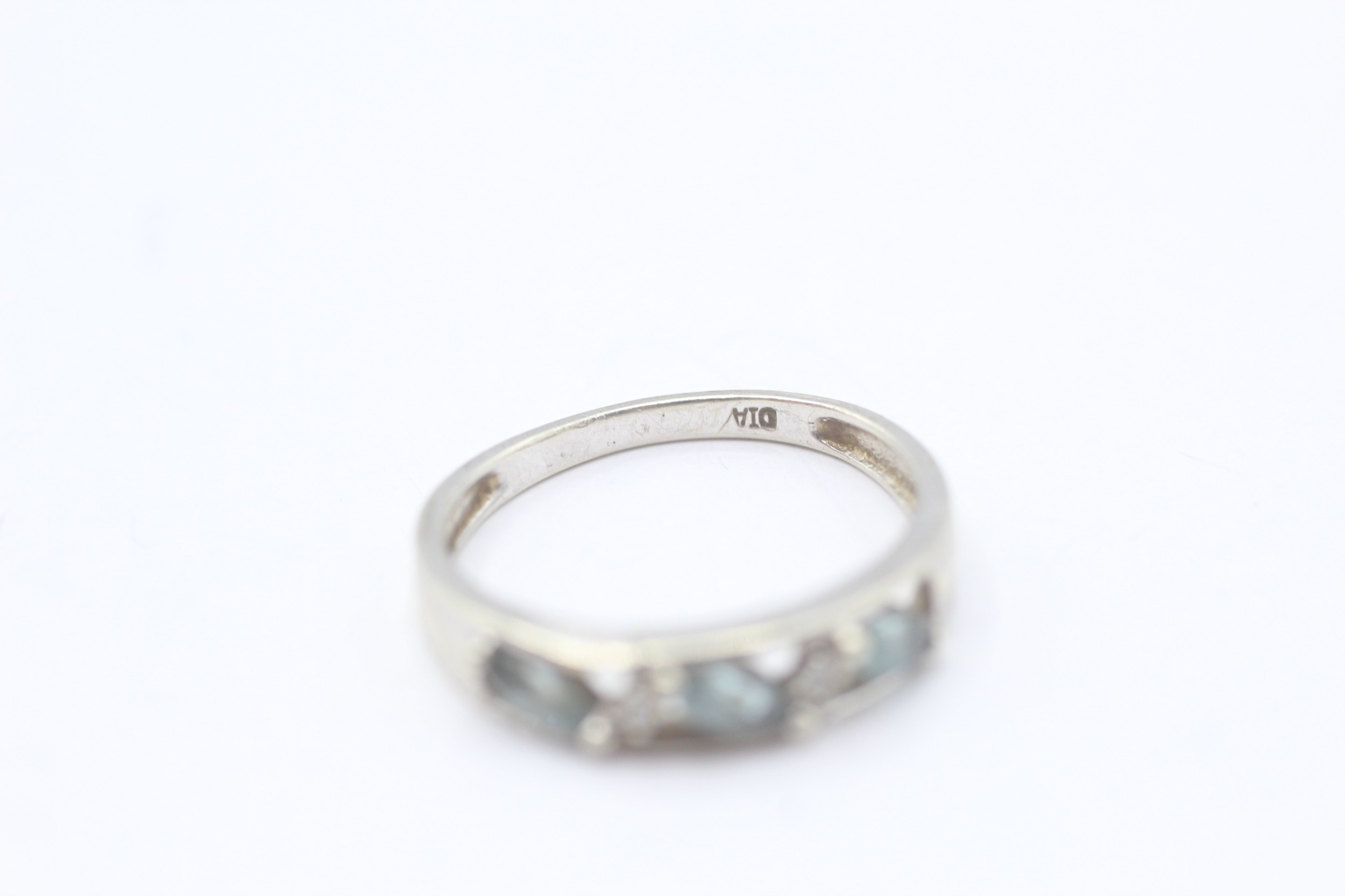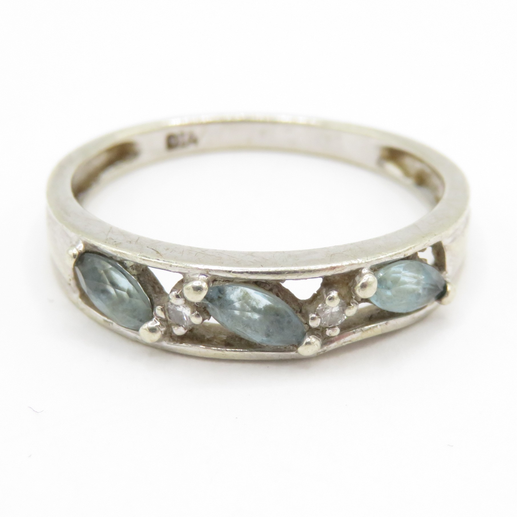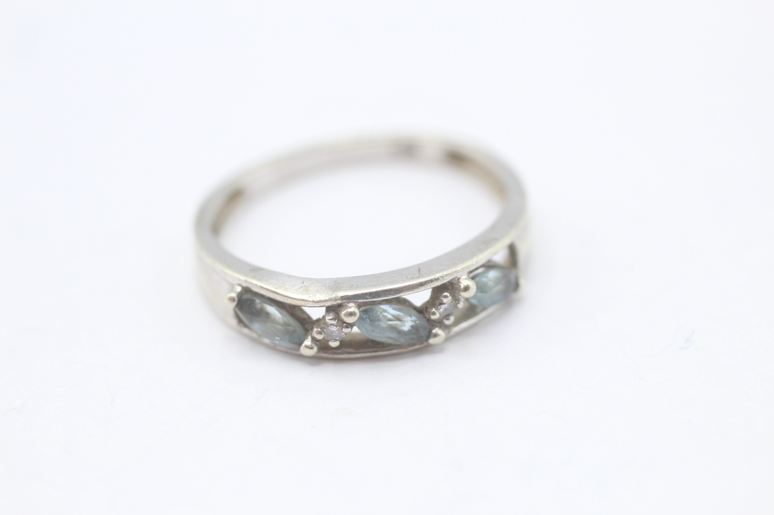 9ct gold blue topaz & diamond half eternity ring (2.4g) - misshapen Size N