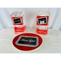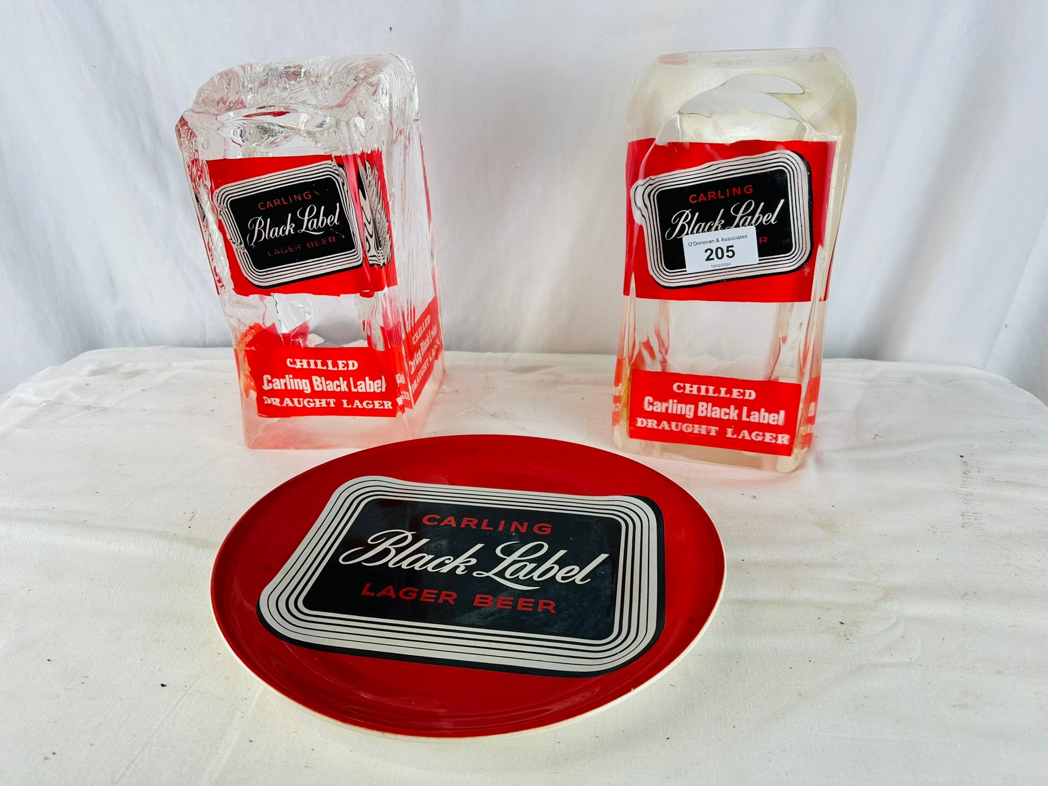OLD CARLING BLACK LABELS BAR FONT COVERERS , TWO DIFFERENTSTYLES PLUS PLATE