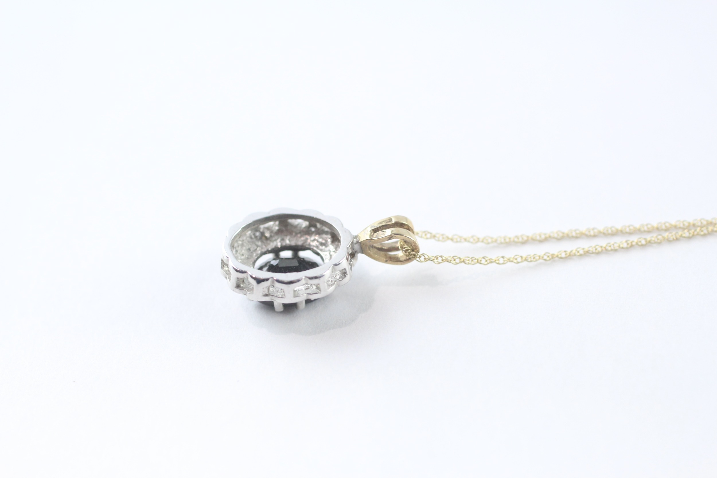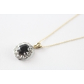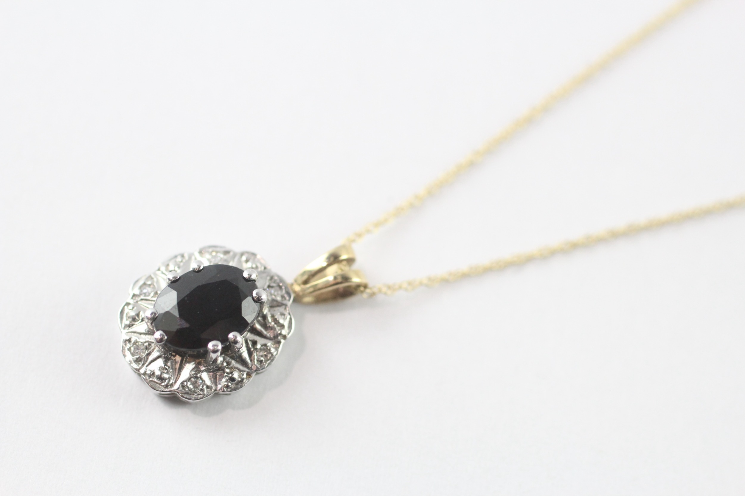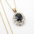 9ct gold sapphire diamond cluster pendant necklace (2.2g)