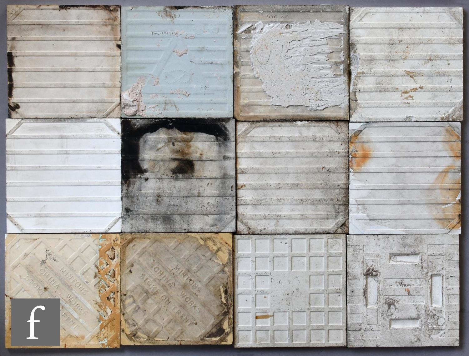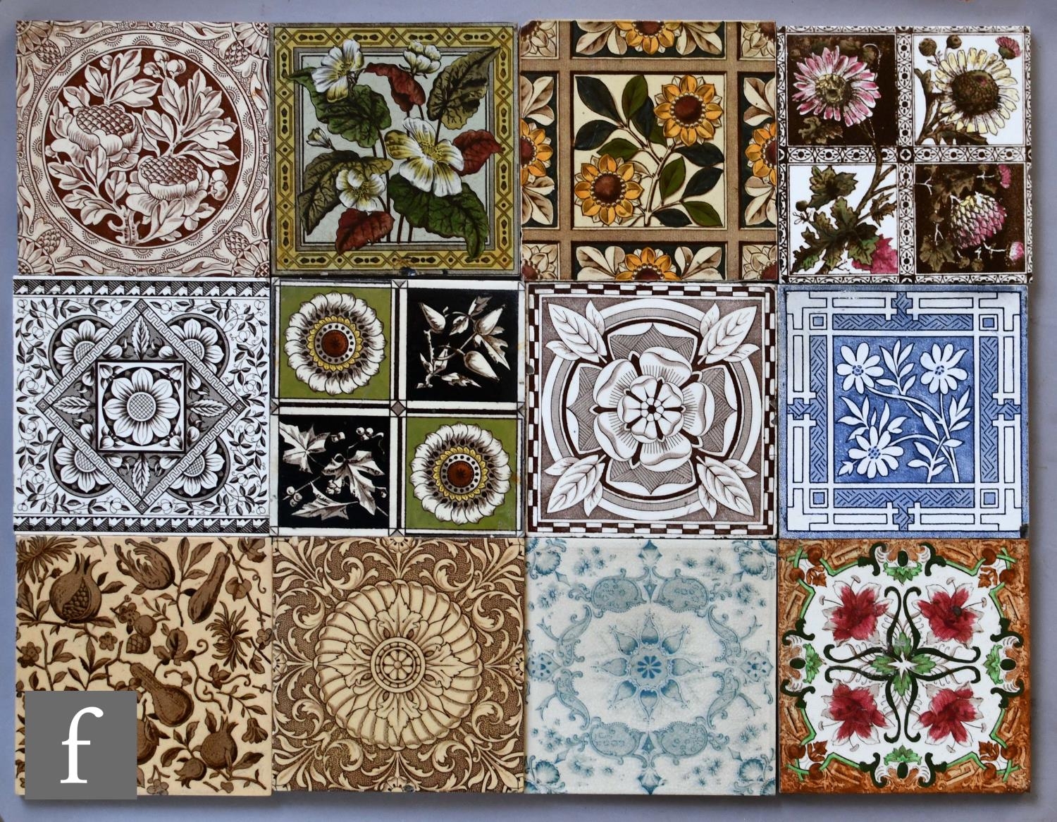 Various - Twelve assorted late 19th to early 20th Century 6in dust pressed tiles, to include Sherwin and Cotton, Minton and Steele and Wood examples, all with floral decoration, damages