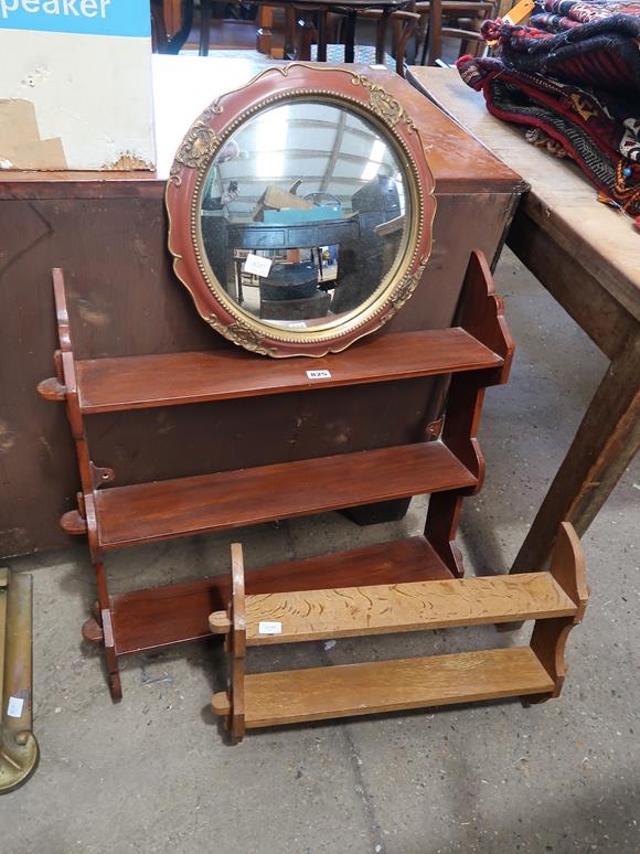 TWO HANGING SHELVES AND A MIRROR