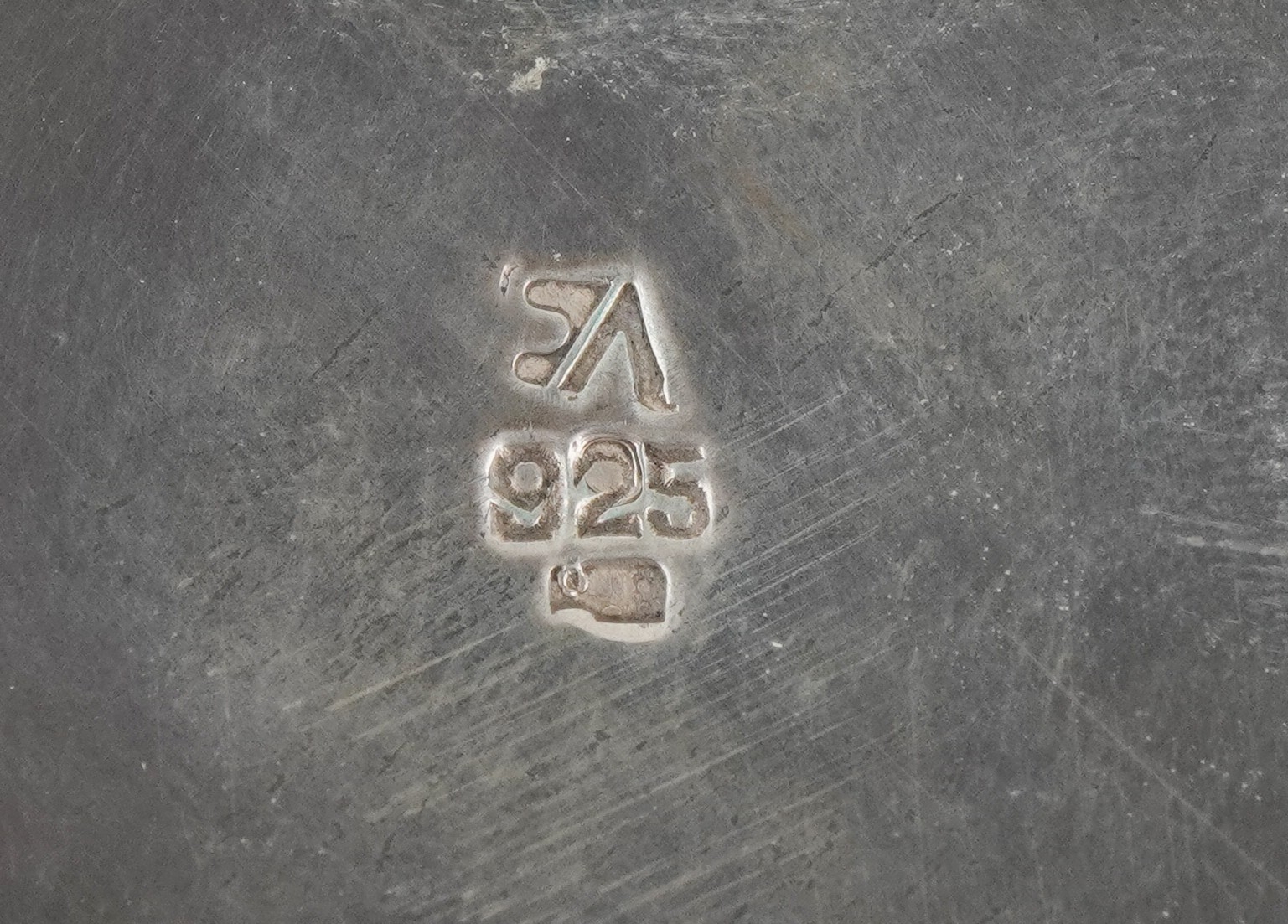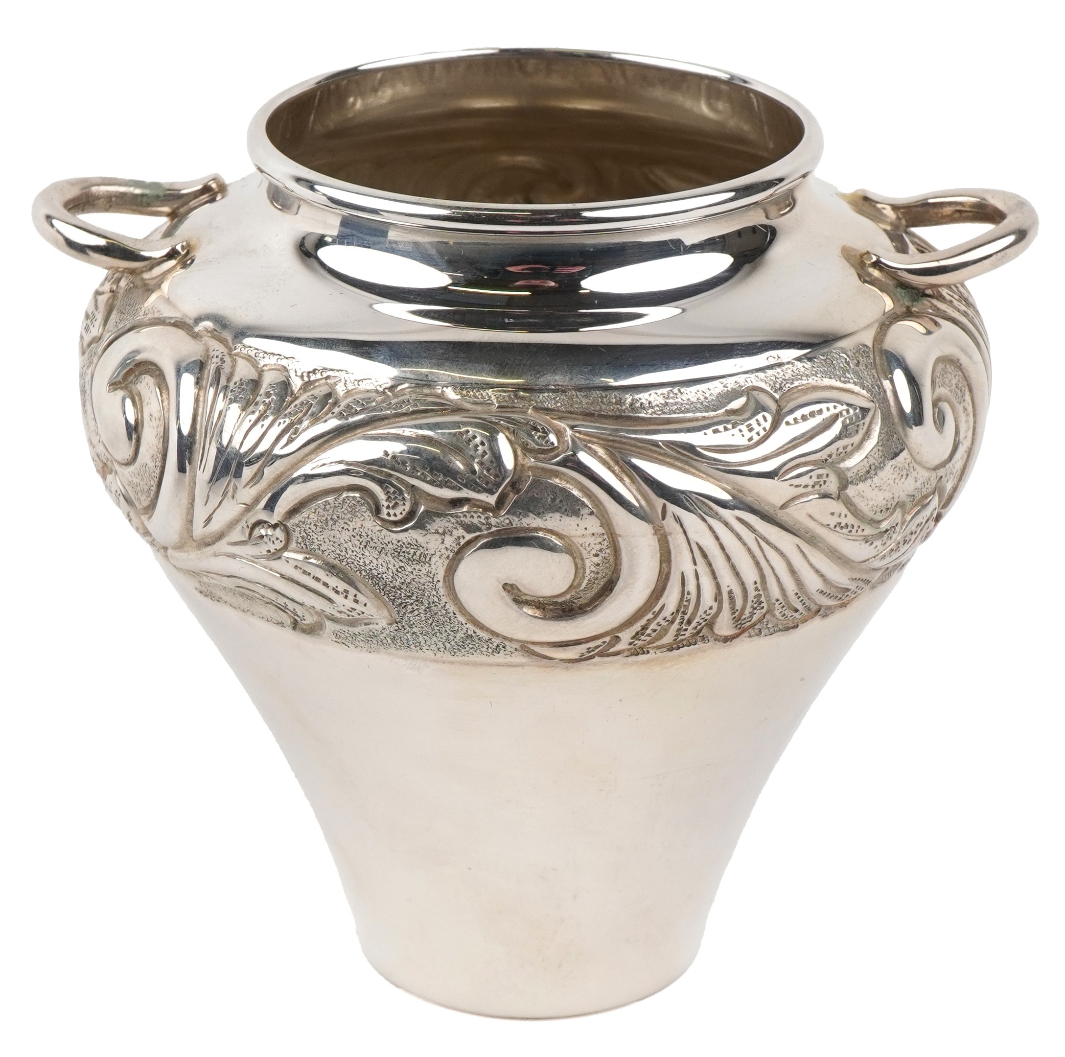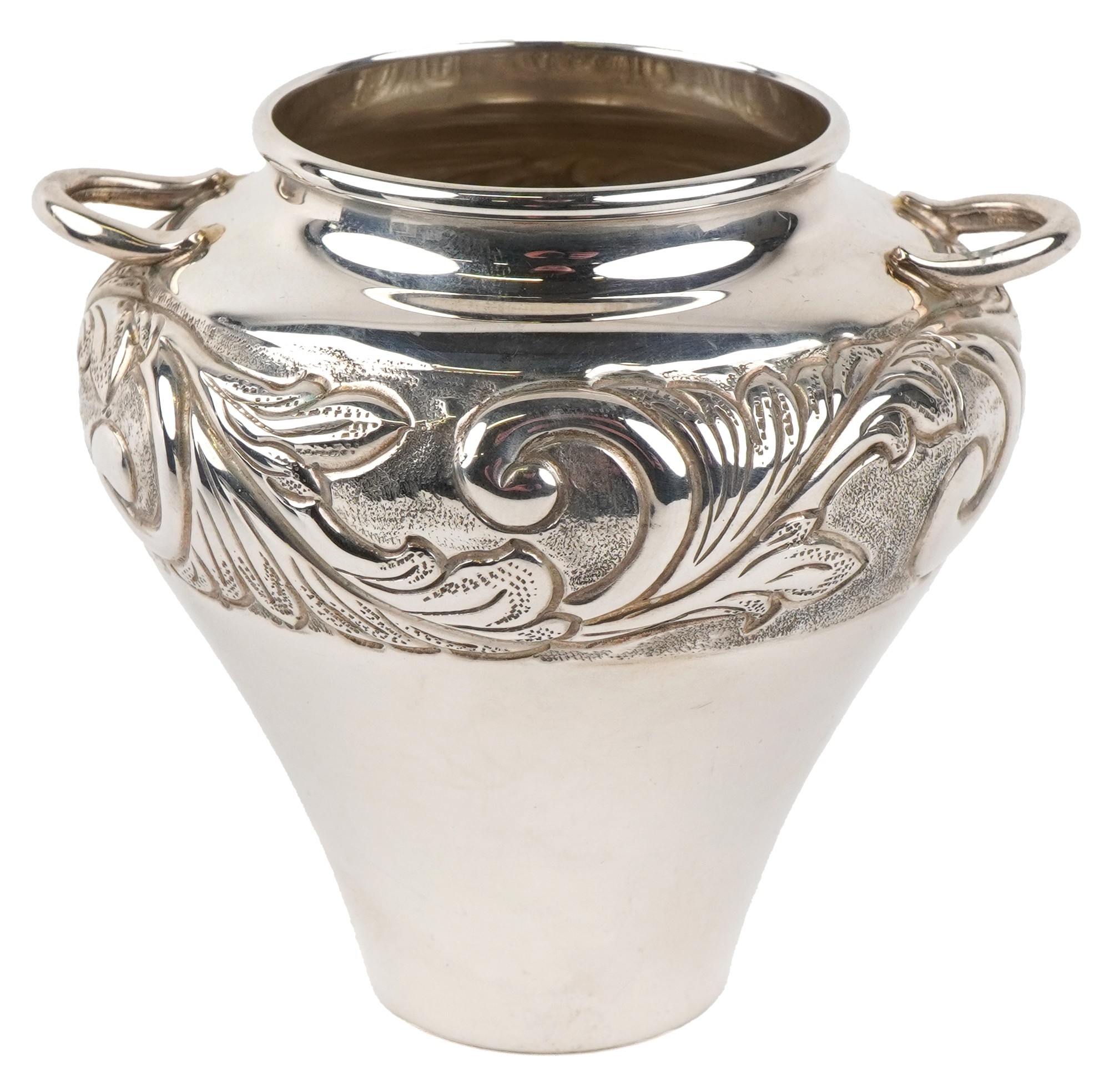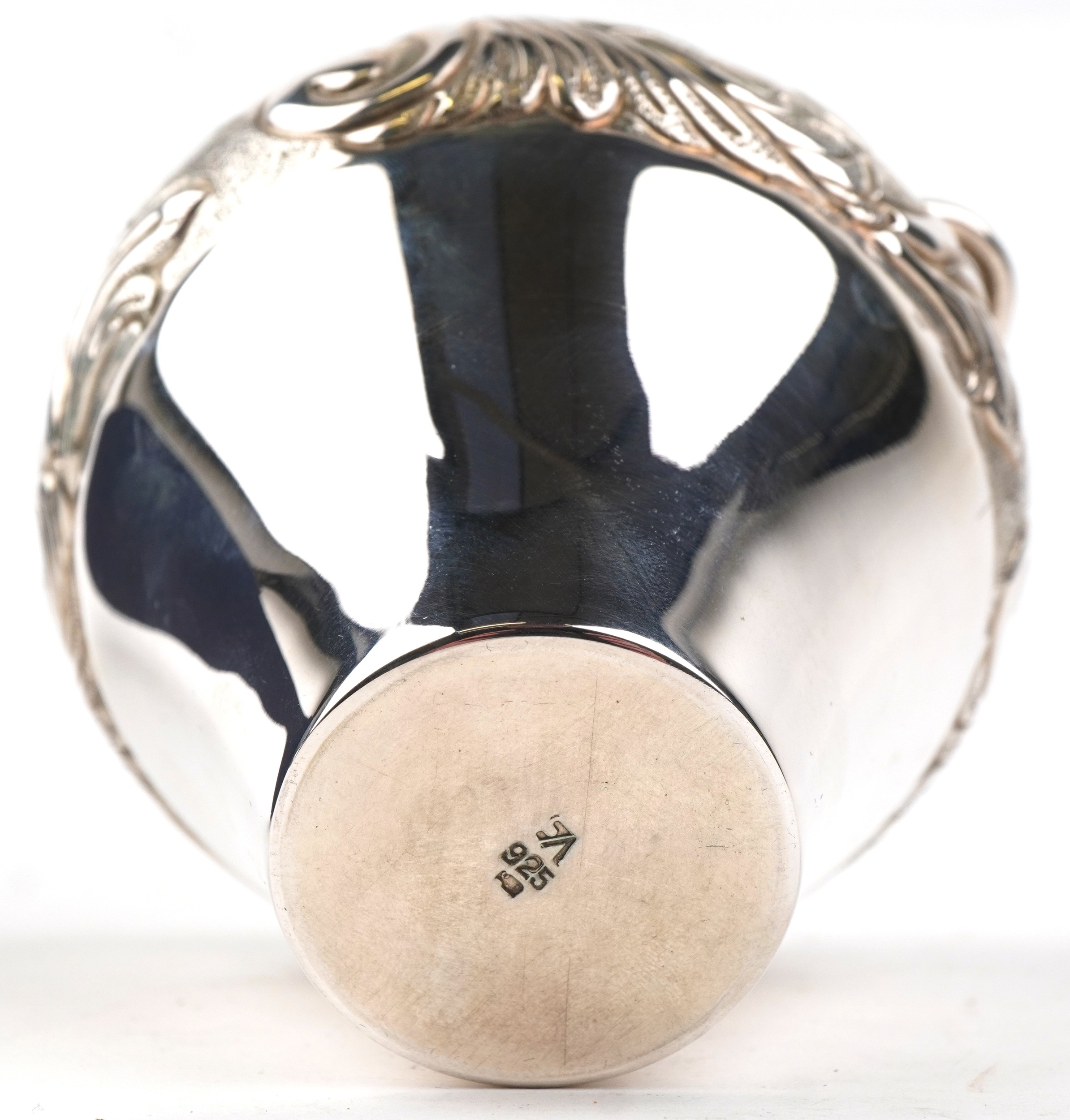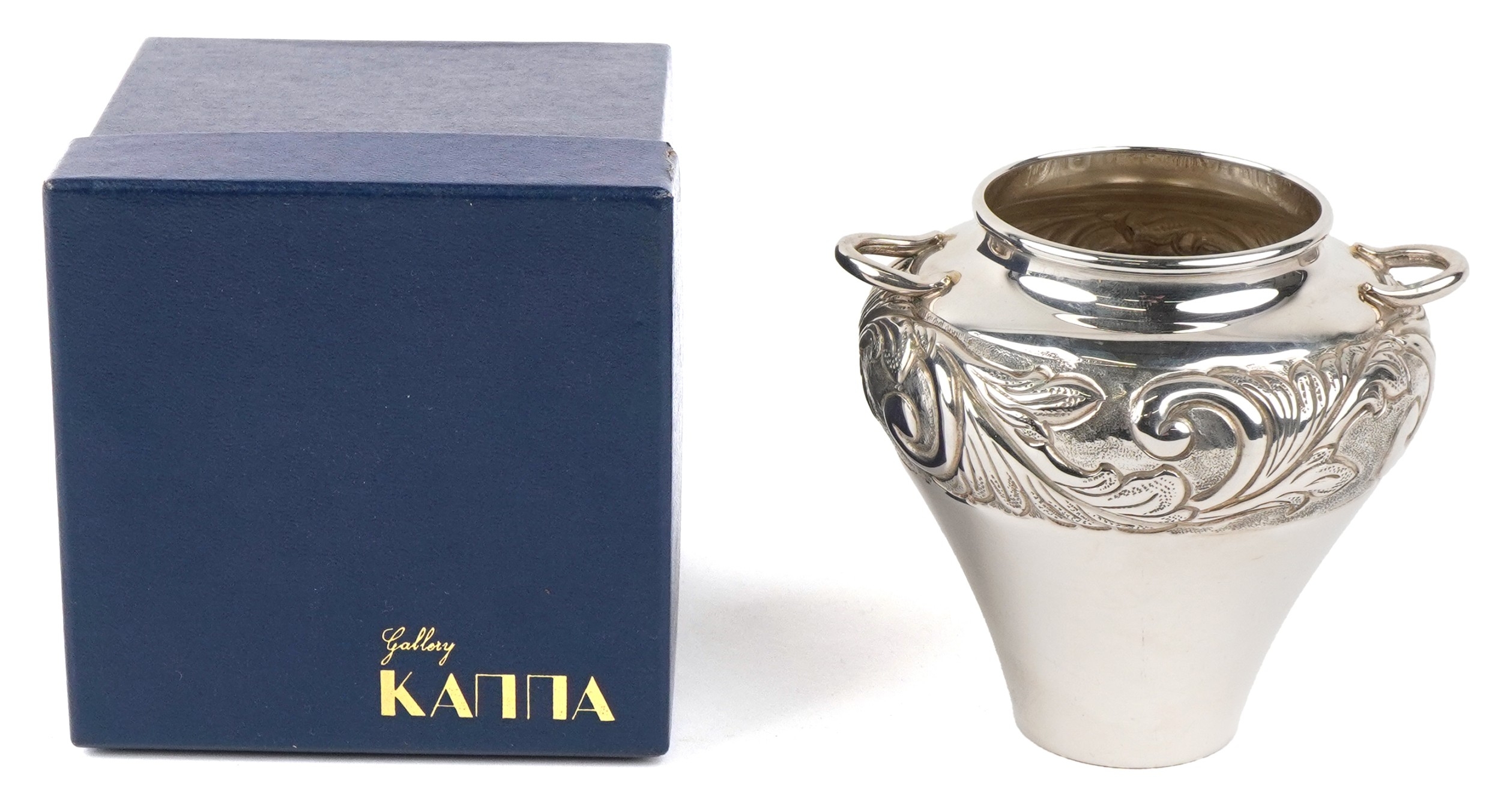 A Kappa Gallery Greek silver vase with embossed decoration, 10cm high, 159.0g.