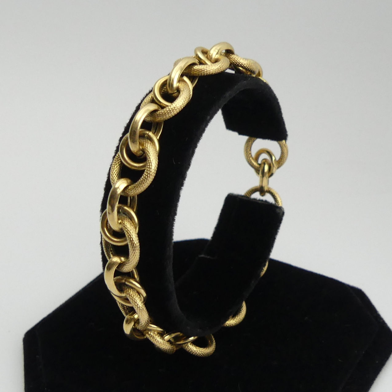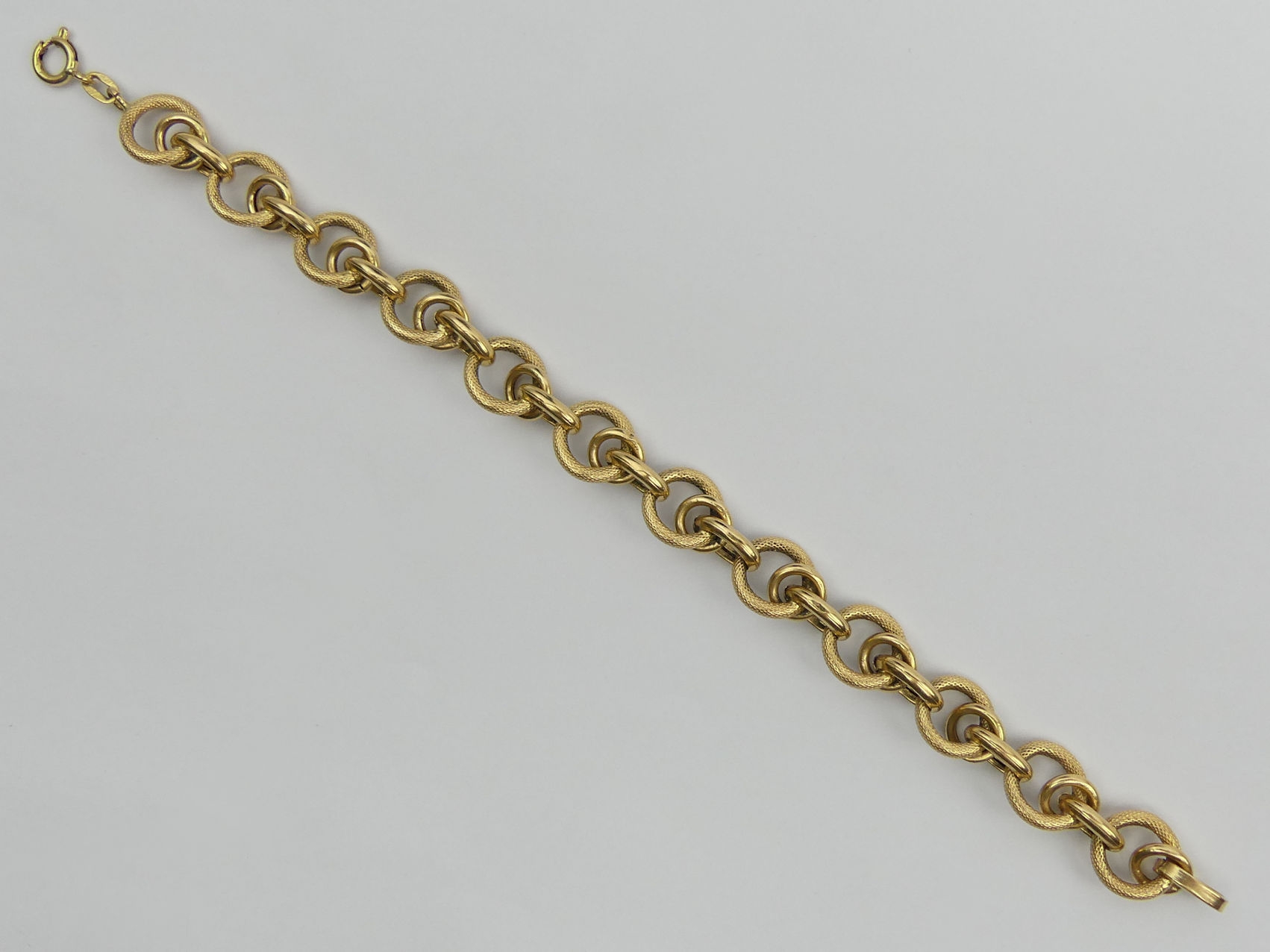 9ct gold textured and plain ring design bracelet, 14.2 grams. 20 cm x 11 mm. UK Postage £12.