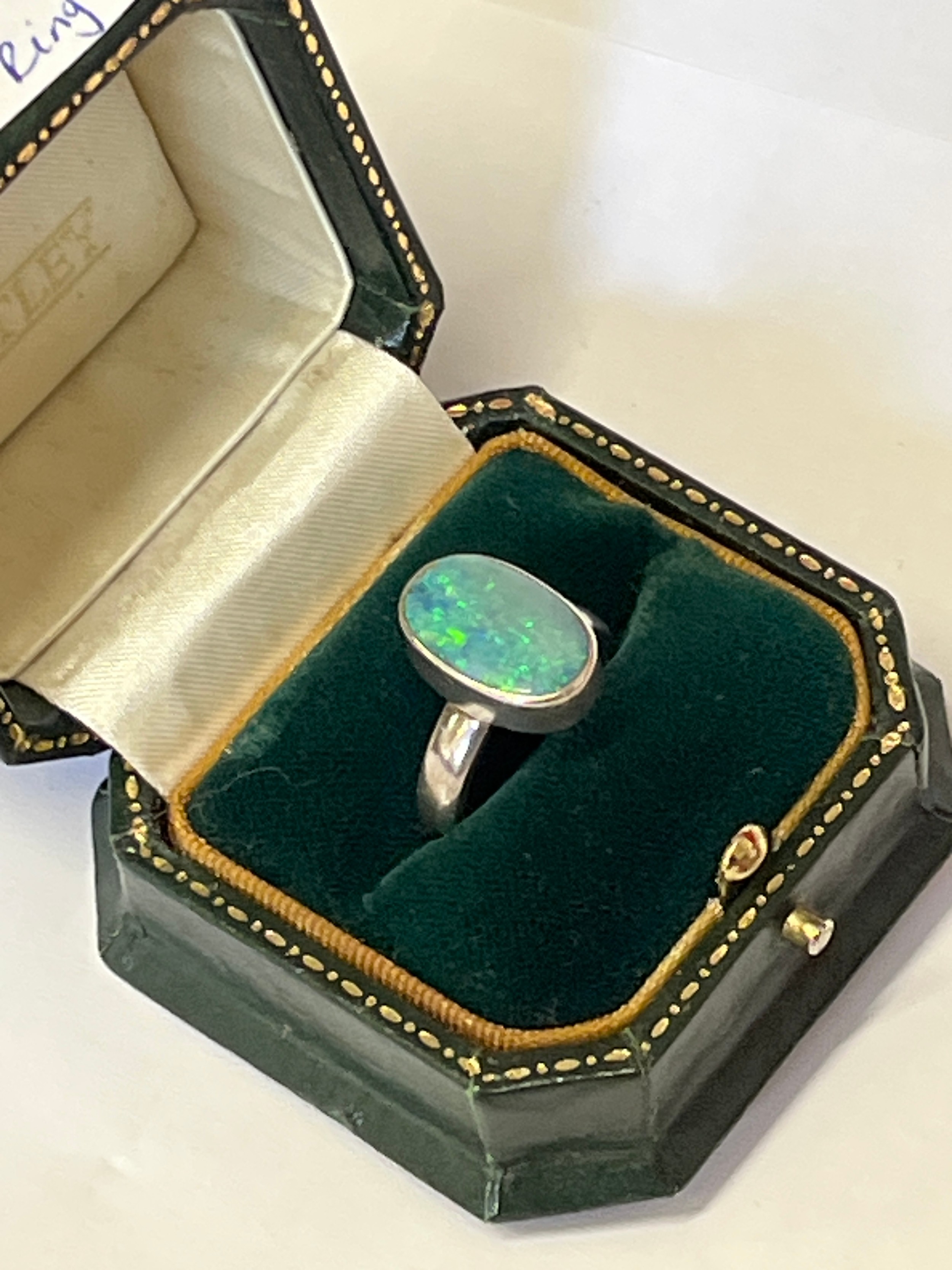 Silver and Opal ring marked 925 size N