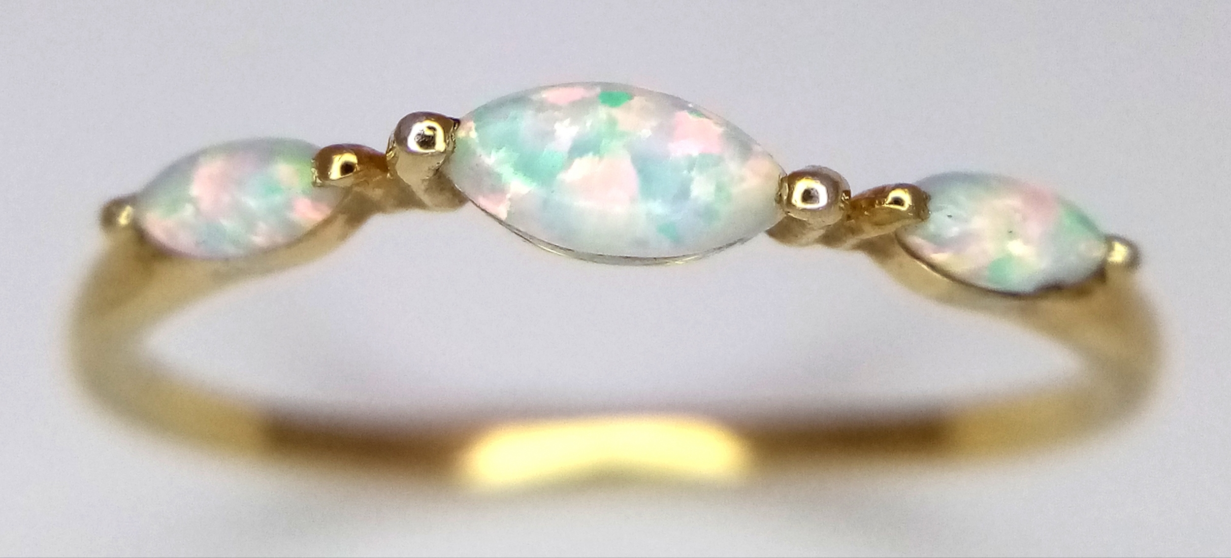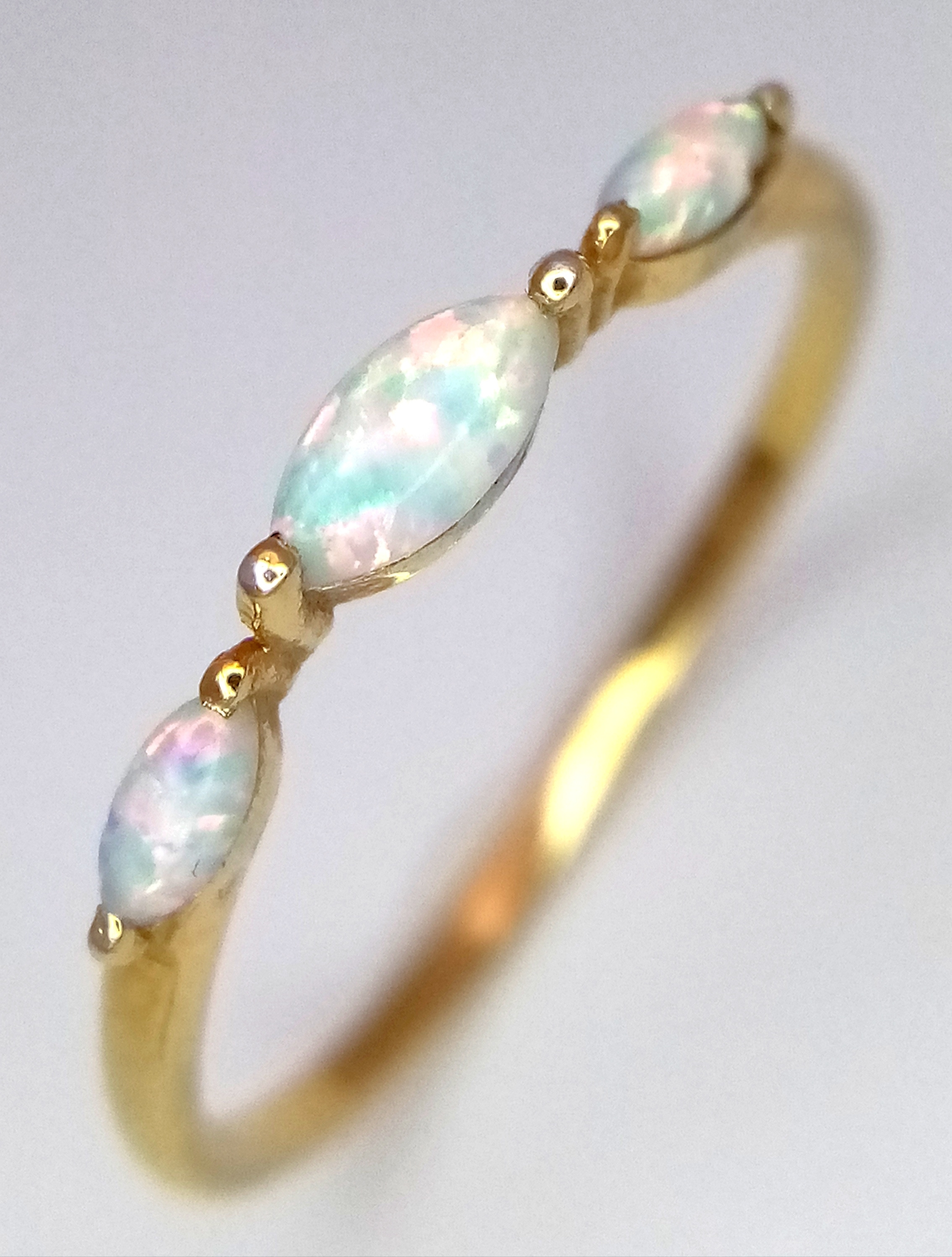 A pretty 925 gilded silver Opal ring. Total weight 1.1G. Size Q/R.