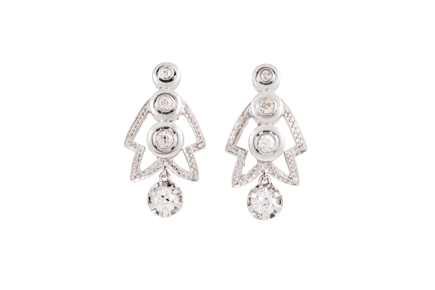 A PAIR OF DIAMOND CLUSTER EARRINGS, mounted in white gold, post and clip fittings. Estimated; weight of diamonds; 0.70 ct, colour and clarity; I/J, SI