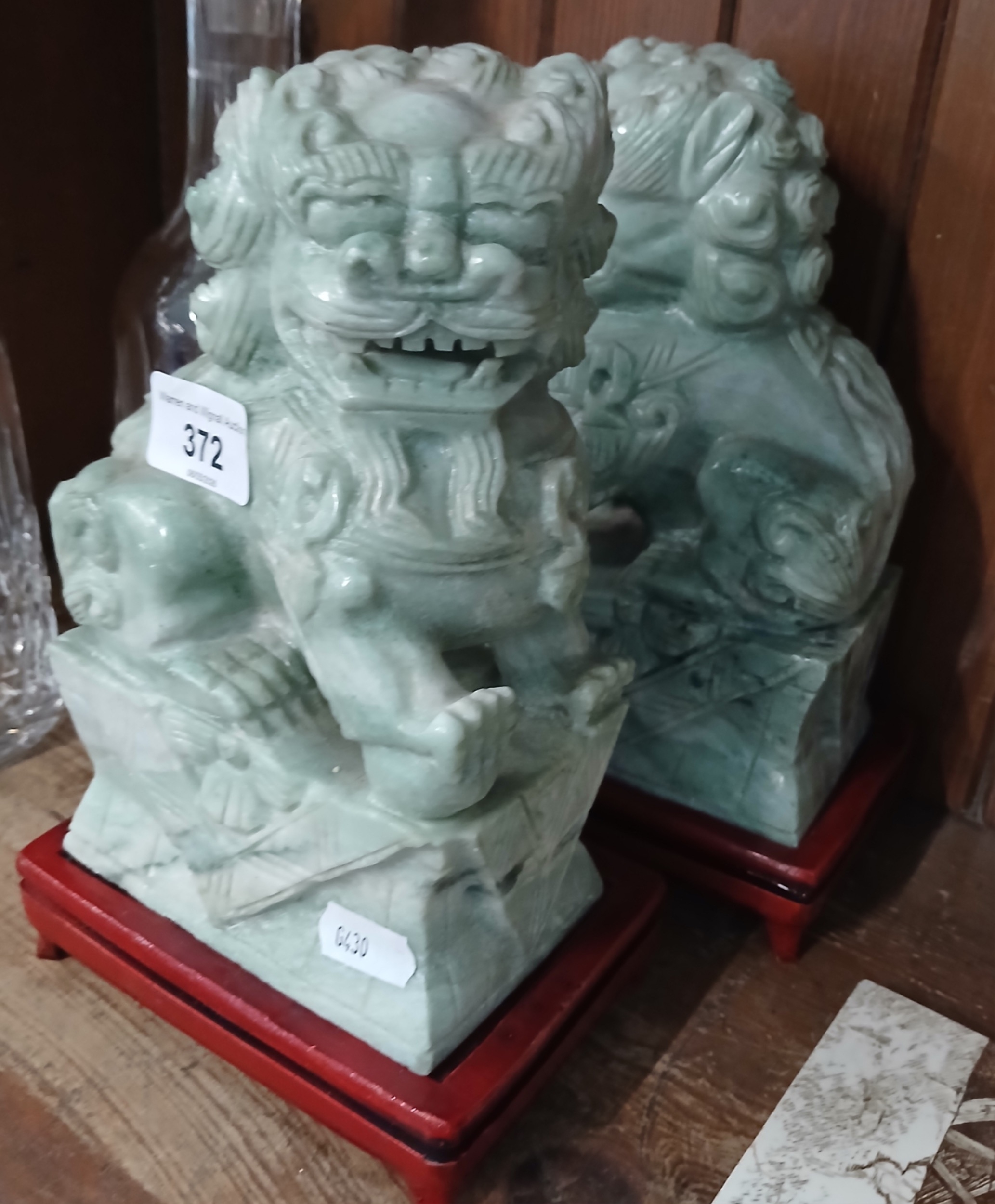 Pair of modern jade Chinese Dogs of Foh