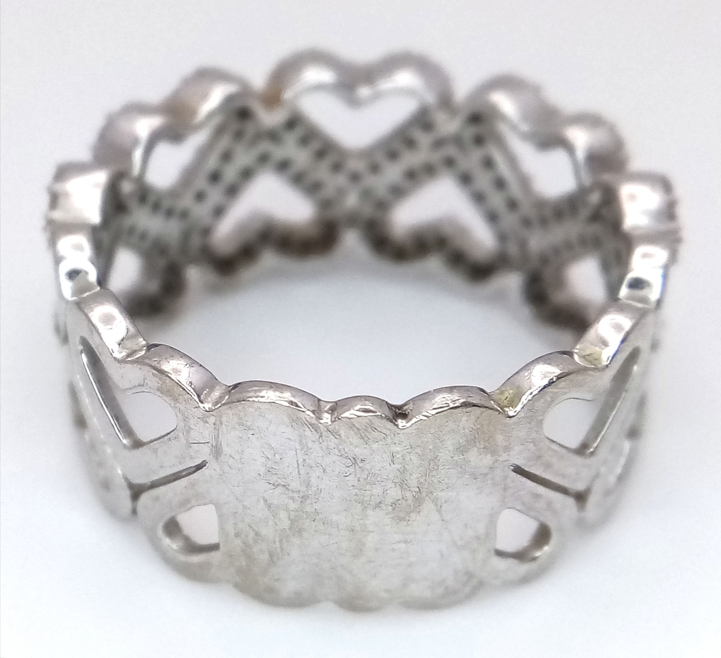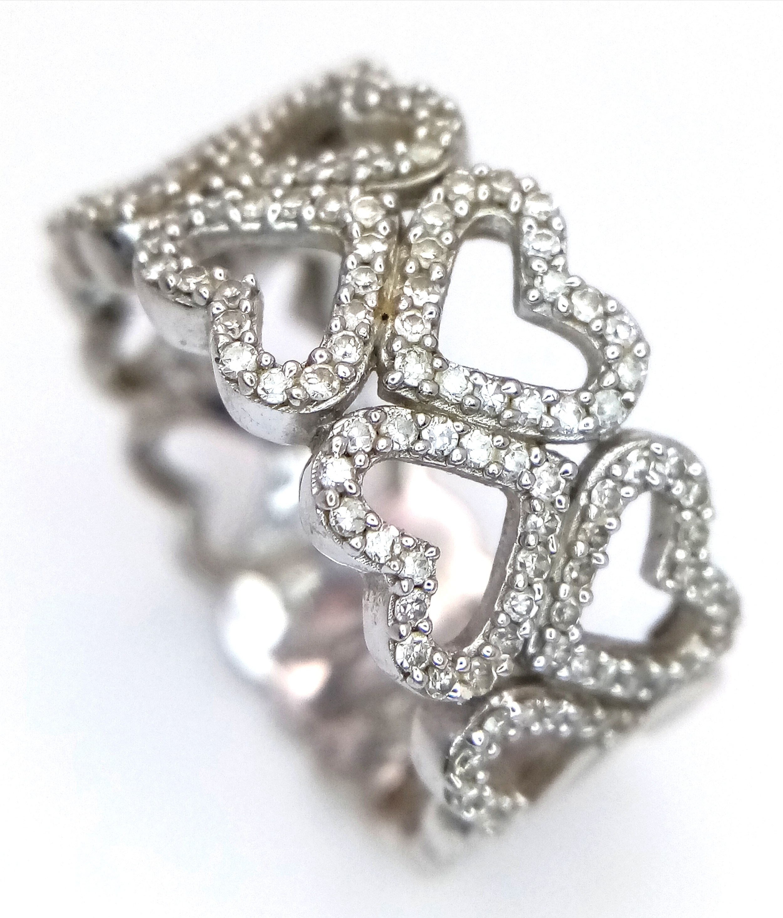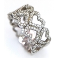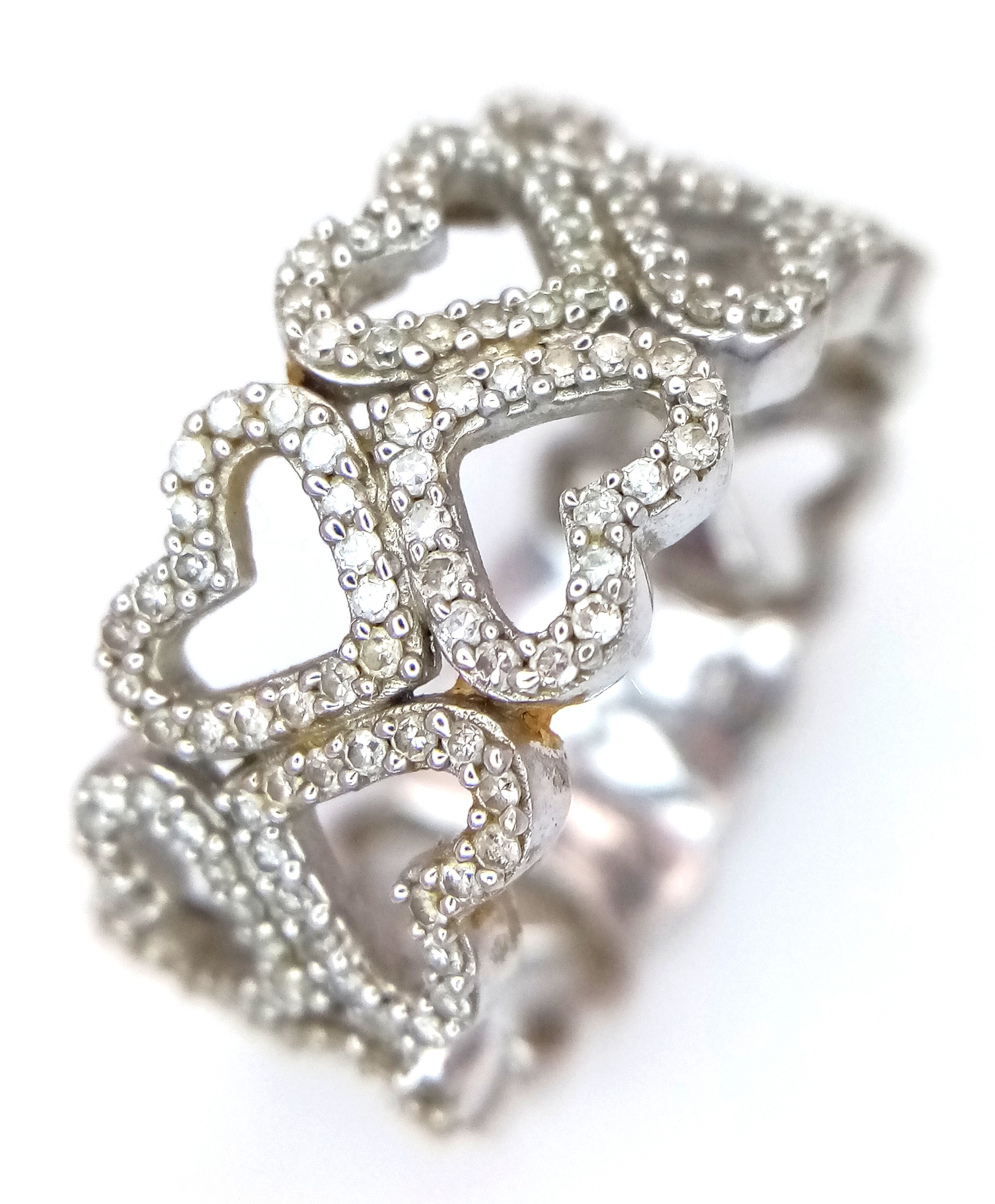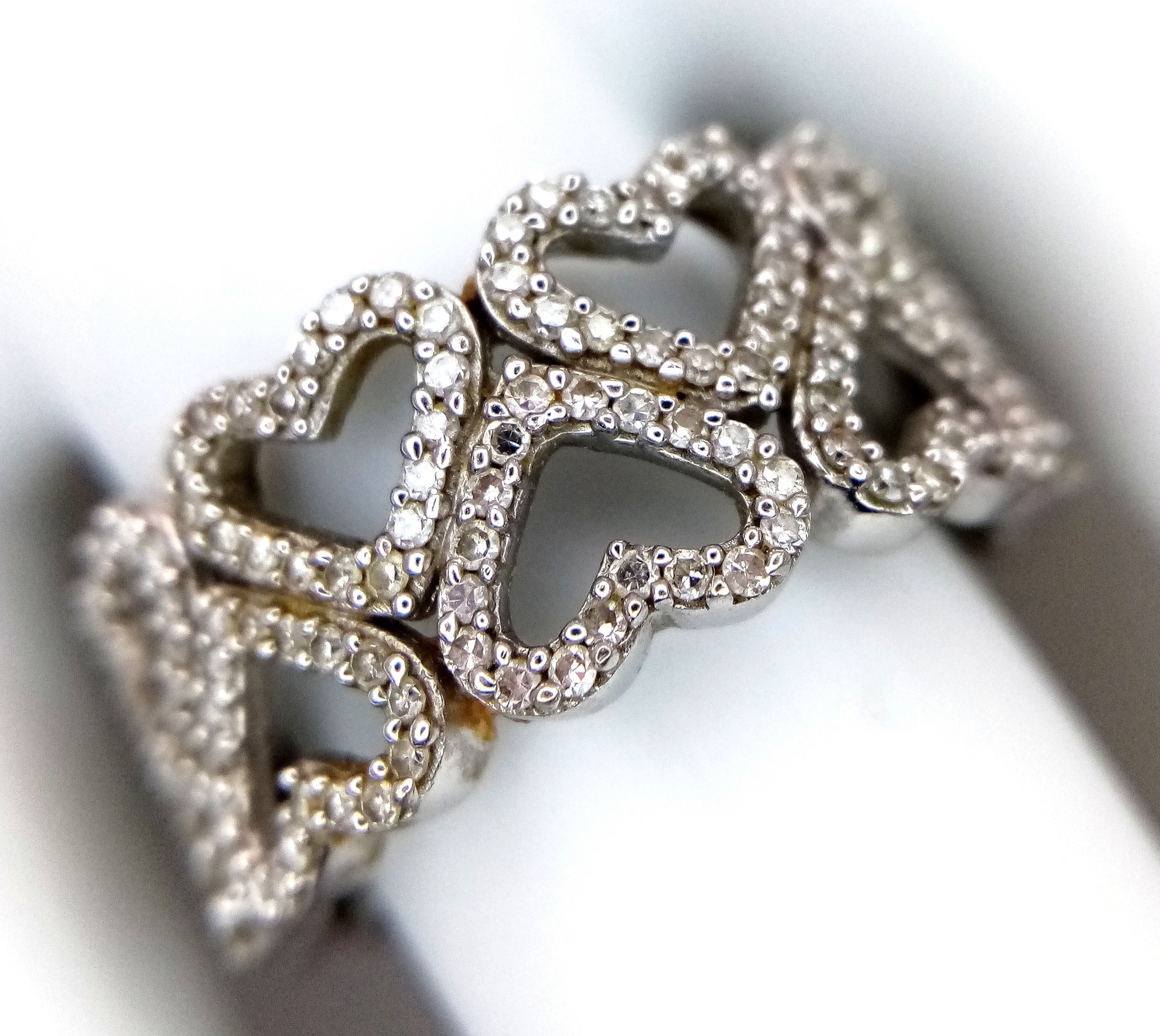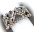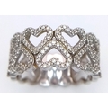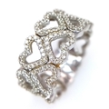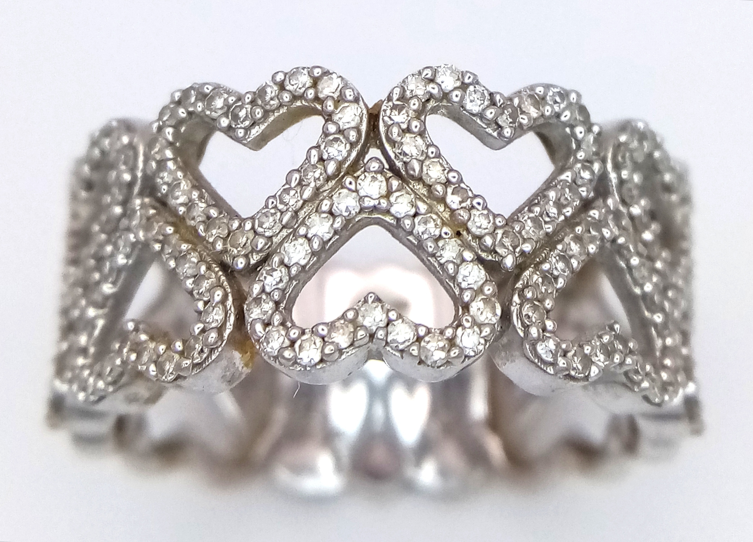 A 9K WHITE GOLD TWO ROW DIAMOND SET HEARTS RING 4.8G SIZE P. Ref: TAN 7011