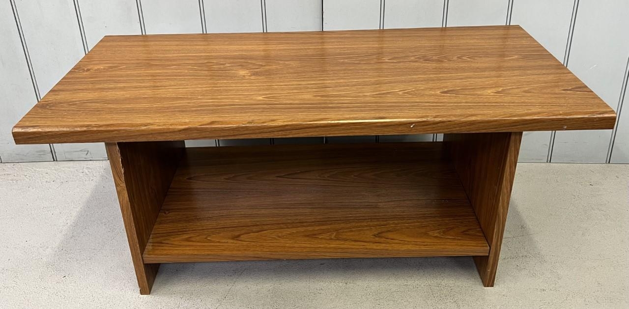 A teak veneered coffee table. Dimensions(cm) H40, W96, D45.