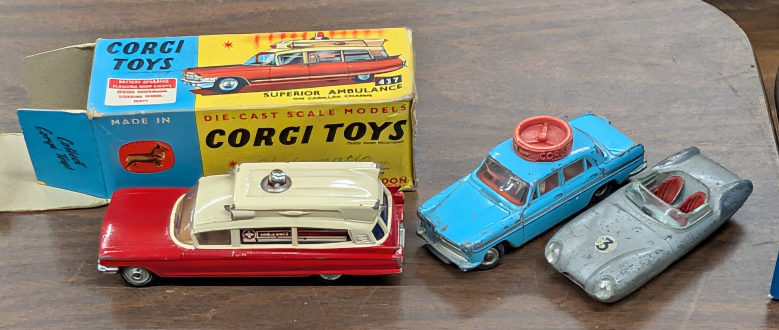 Three Corgi Toys Model Vehicles including No. 437 Superior Ambulance with Box