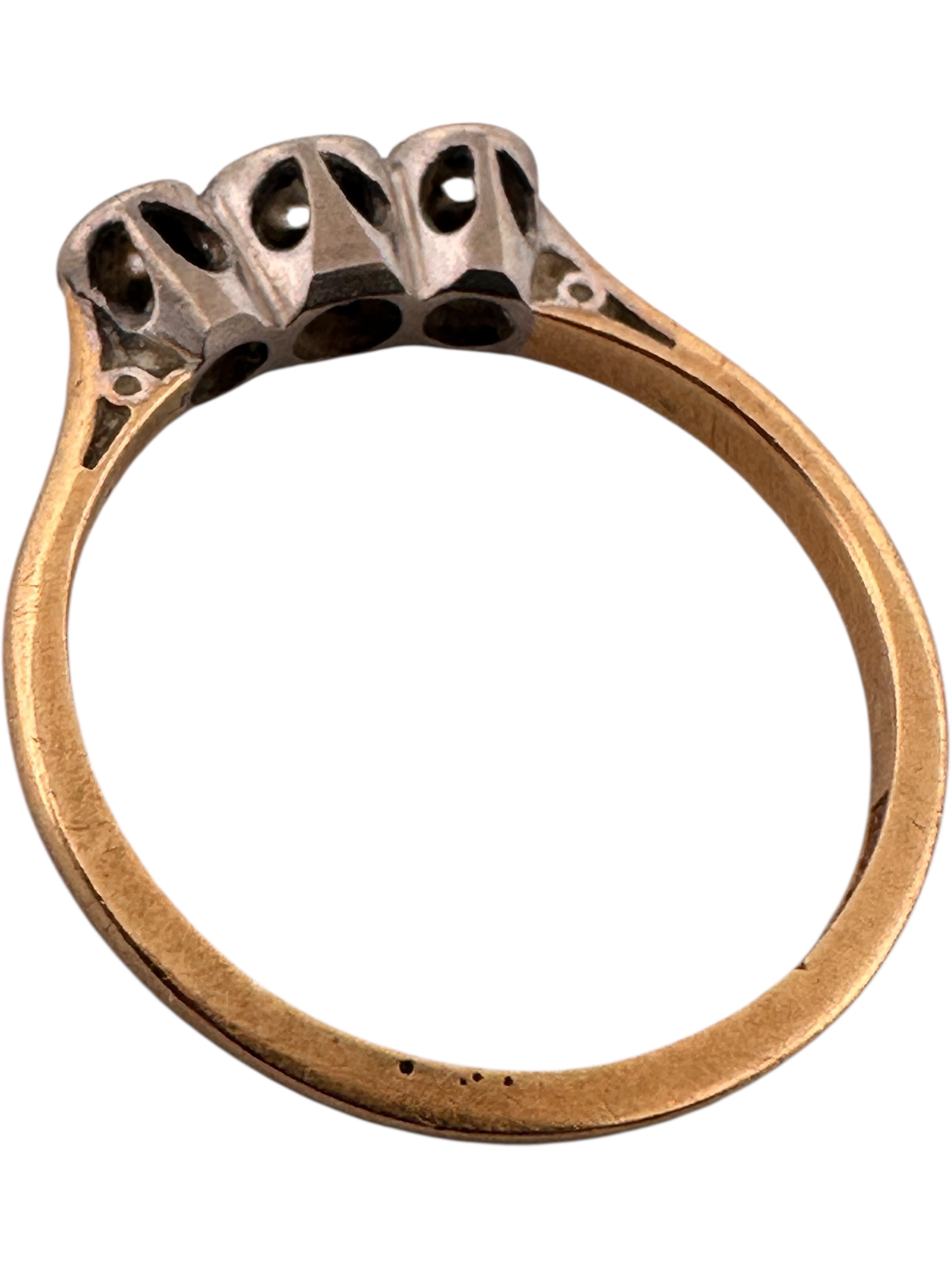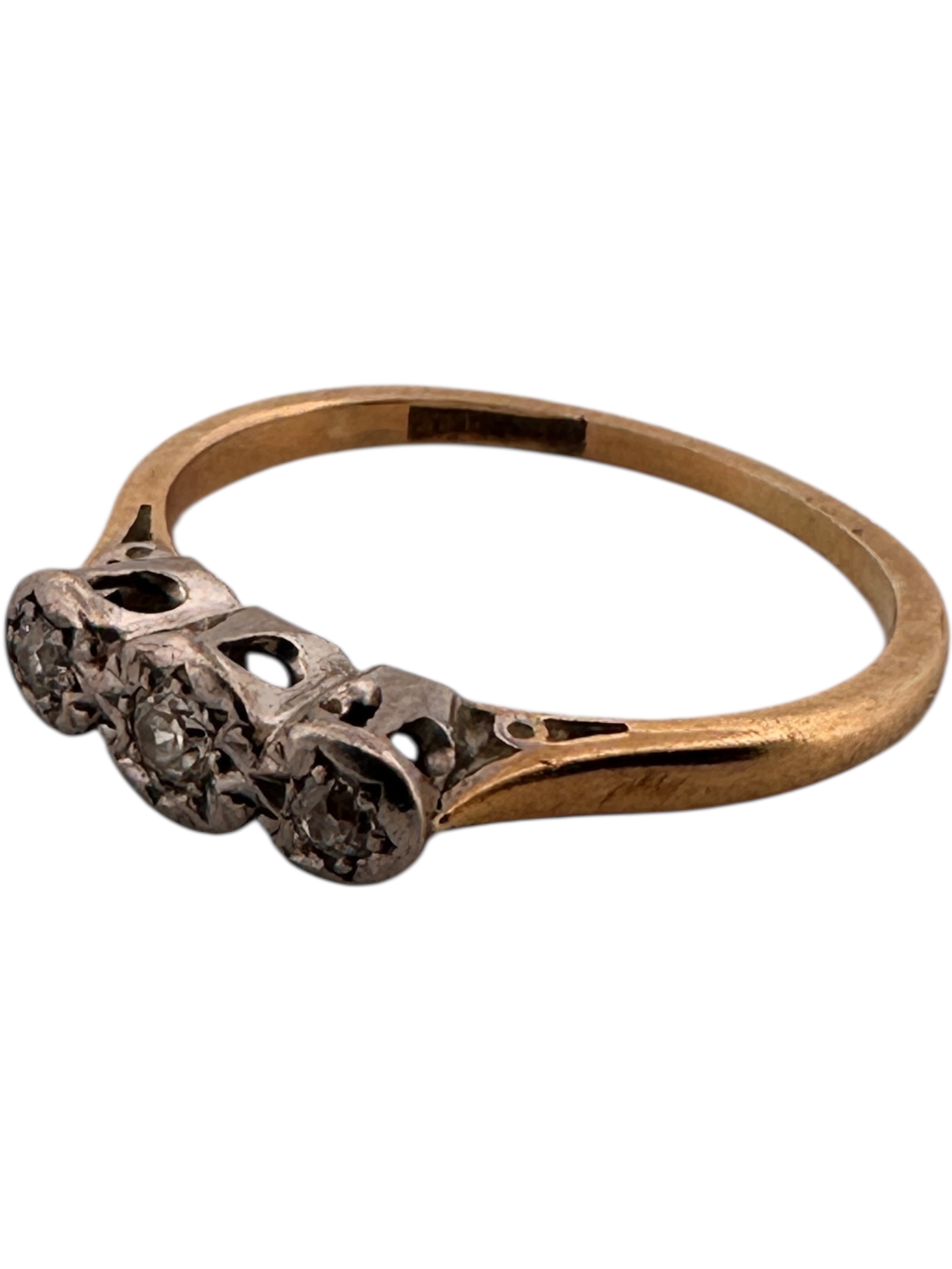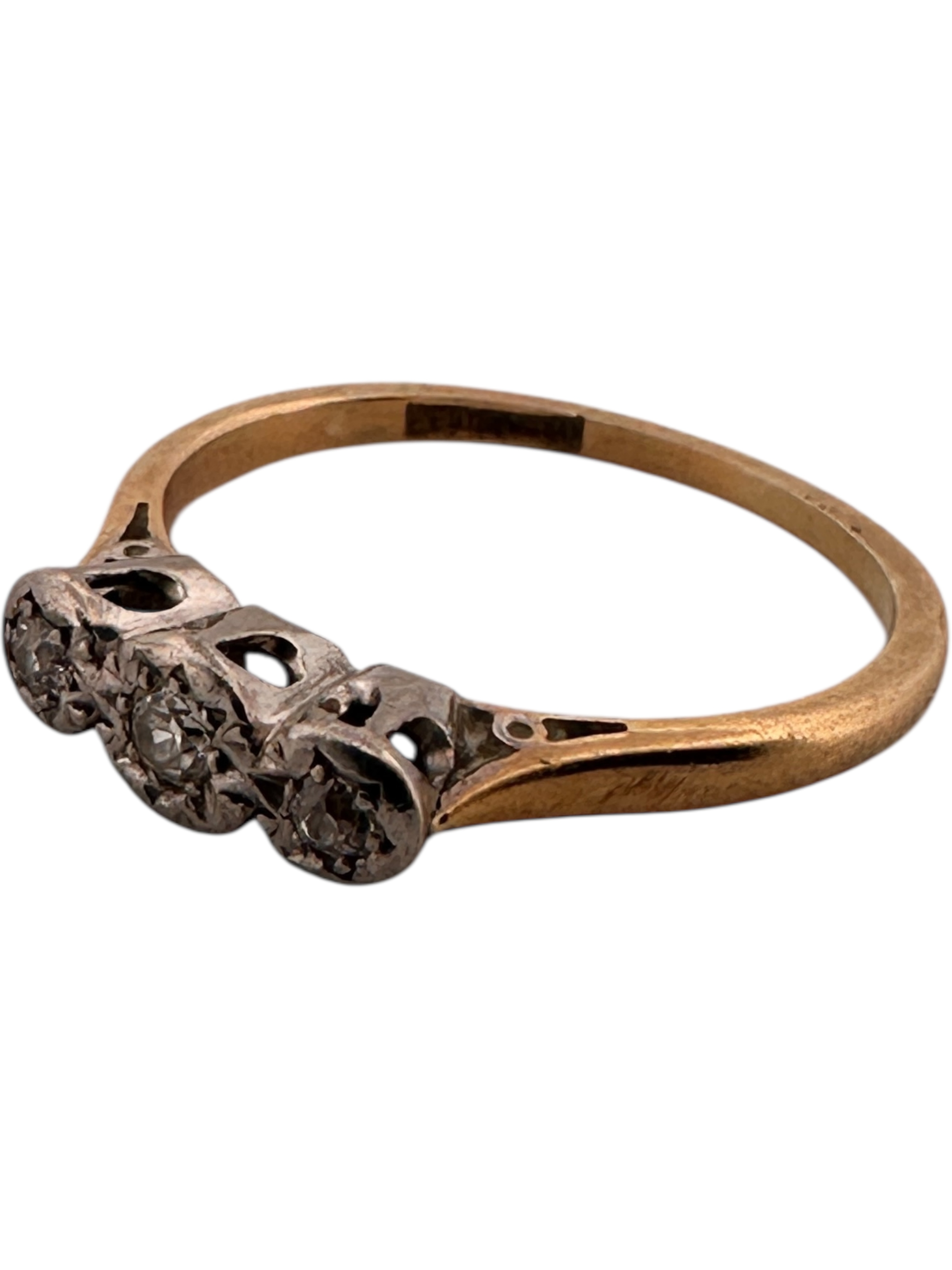 Eighteen Carat Gold and Platinum Ring set with Three Diamonds. SizeM. 2.05g