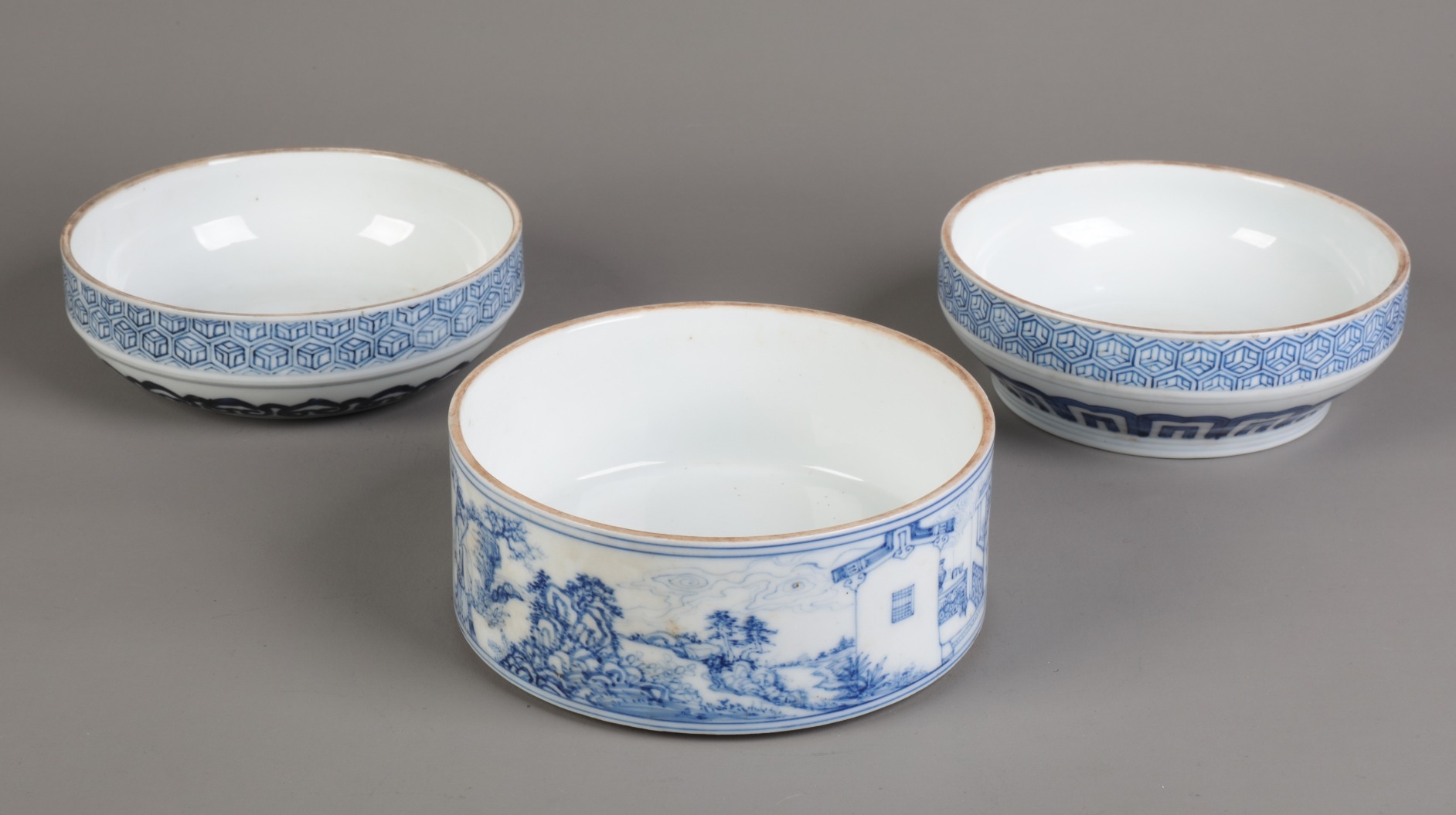A CHINESE PORCELAIN BLUE AND WHITE THREE PIECE STACKING BOX