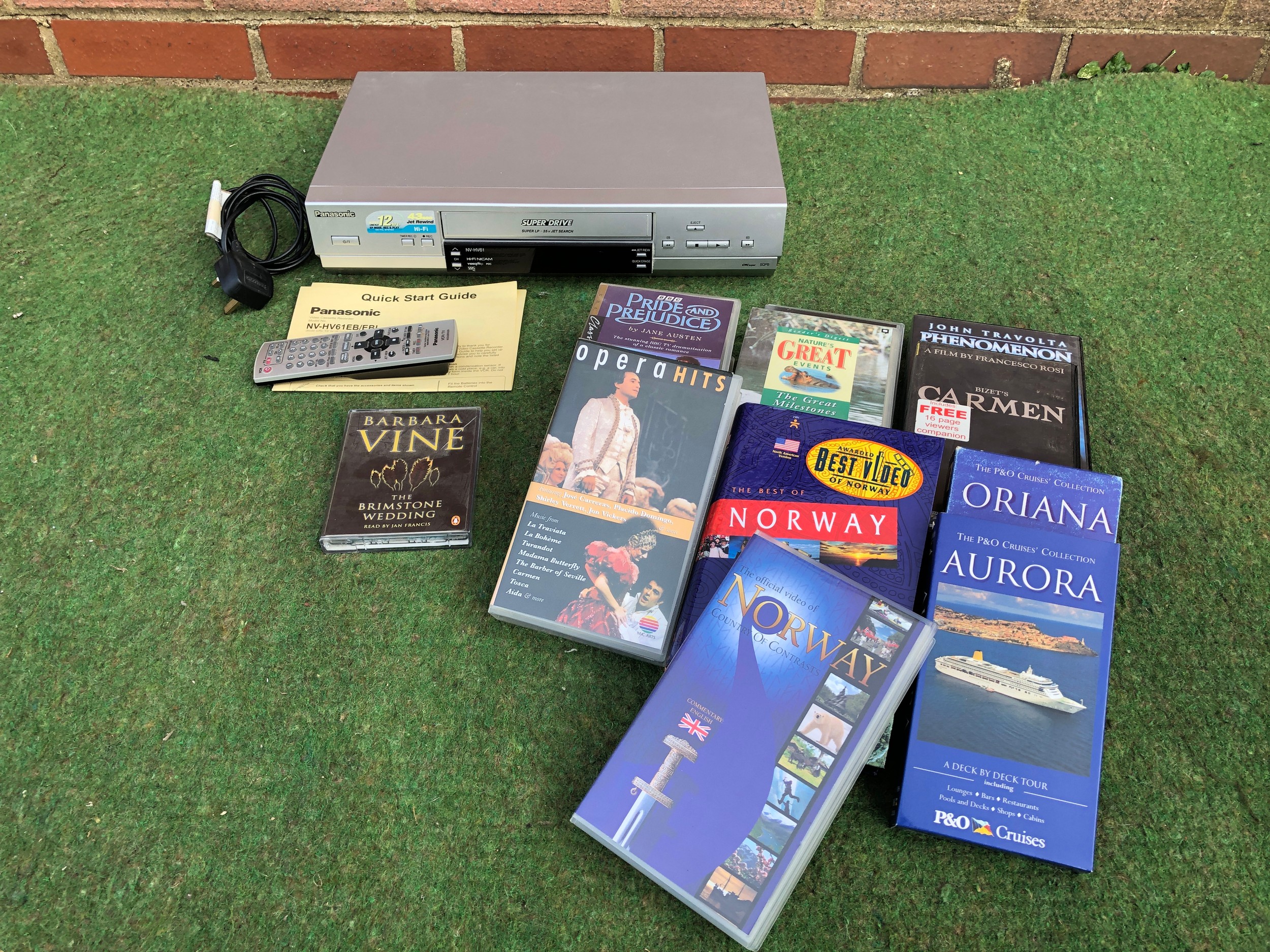Panasonic VHS player, remote and user instructions with a collection on VHS
