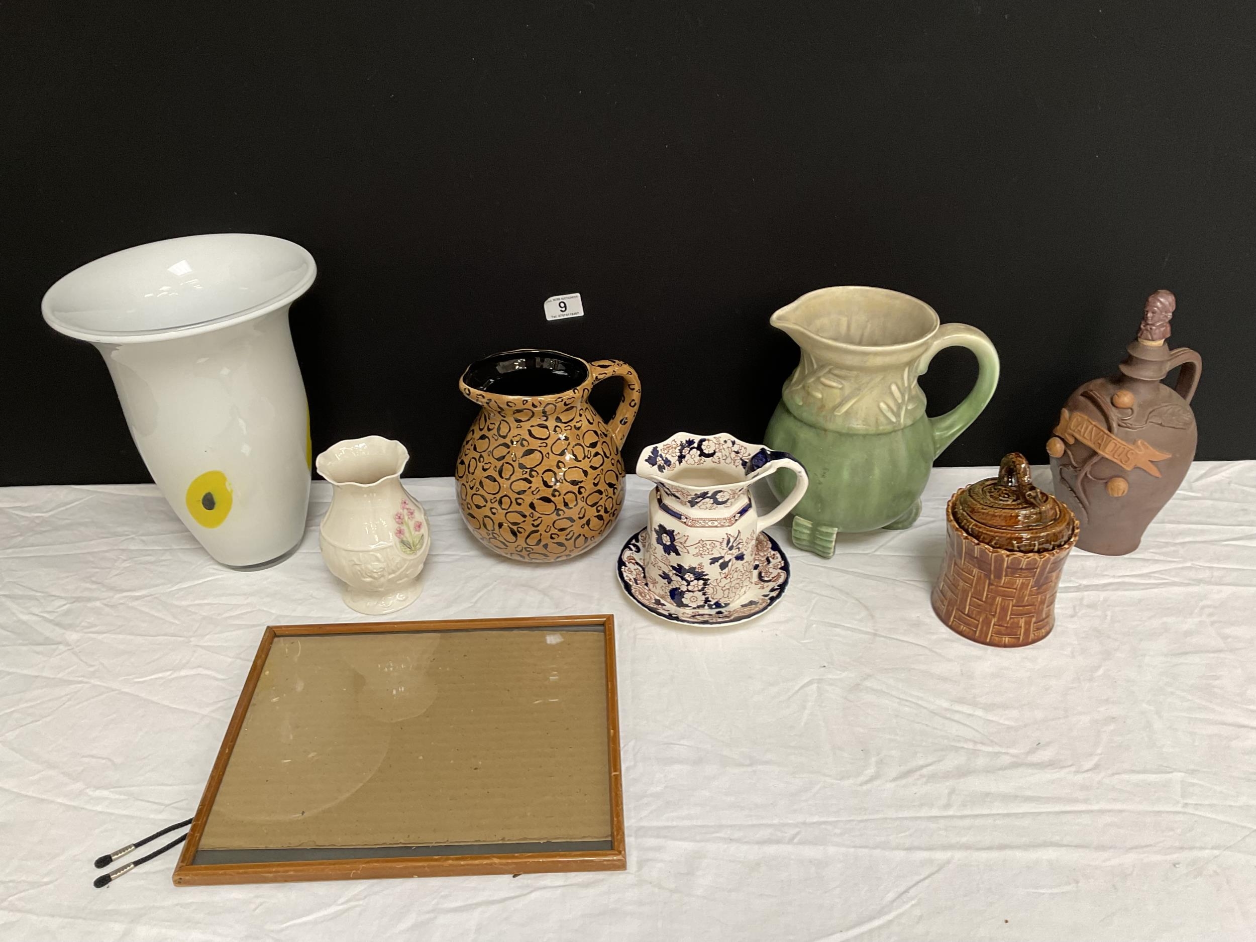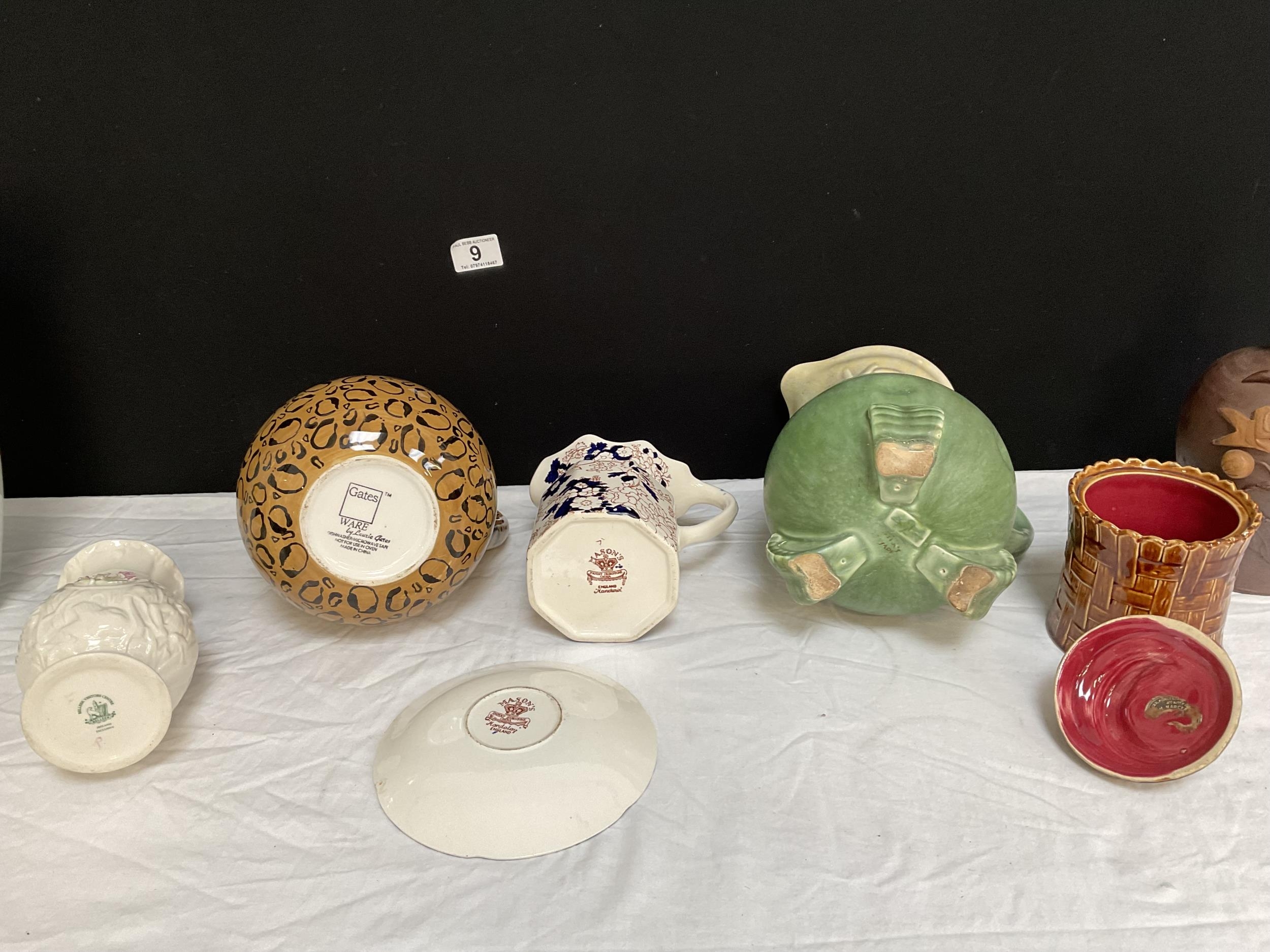 BOX OF ODDS TO INCLUDE JUGS, VASES AND MASONS JUG AND PLATE