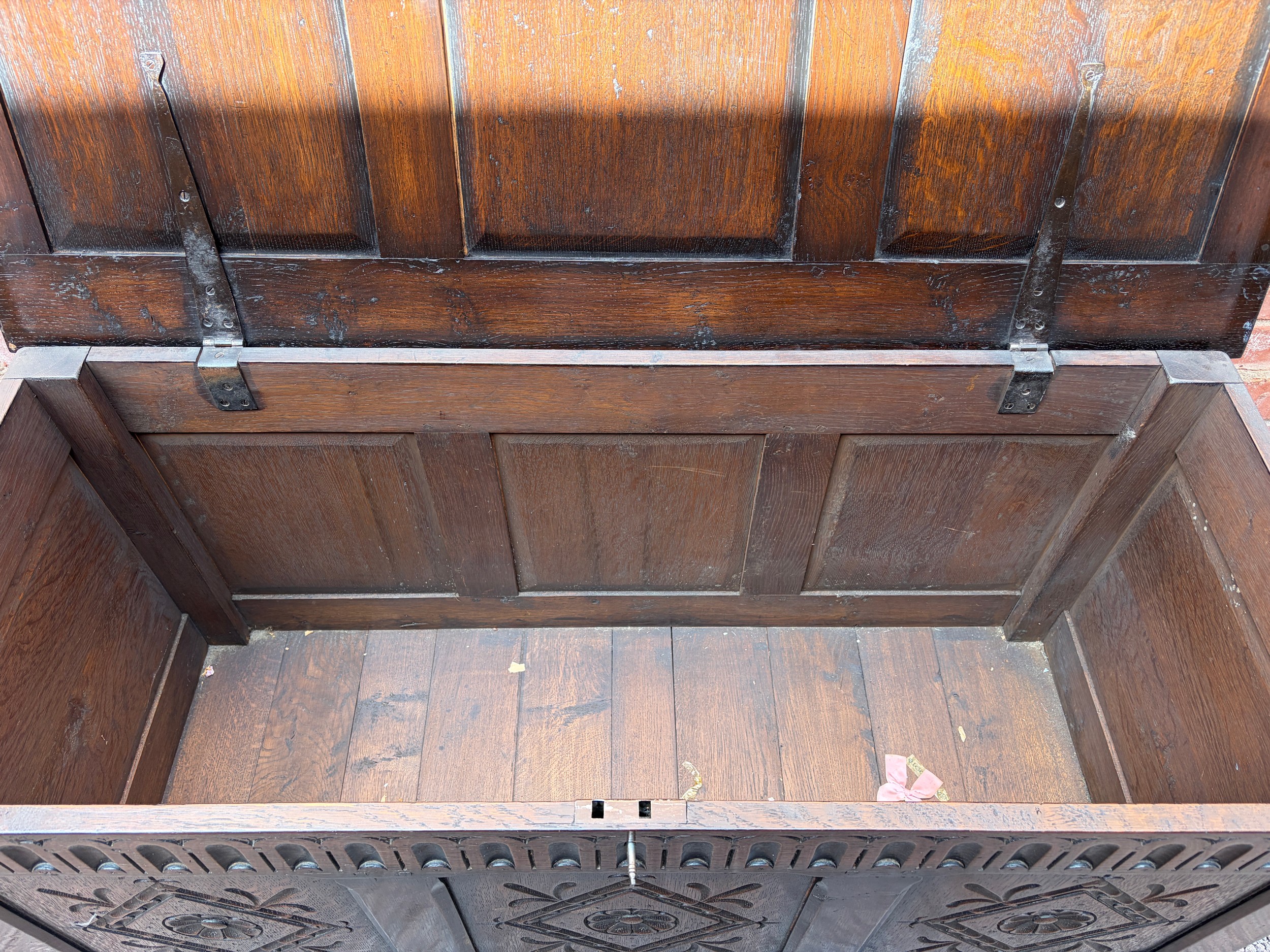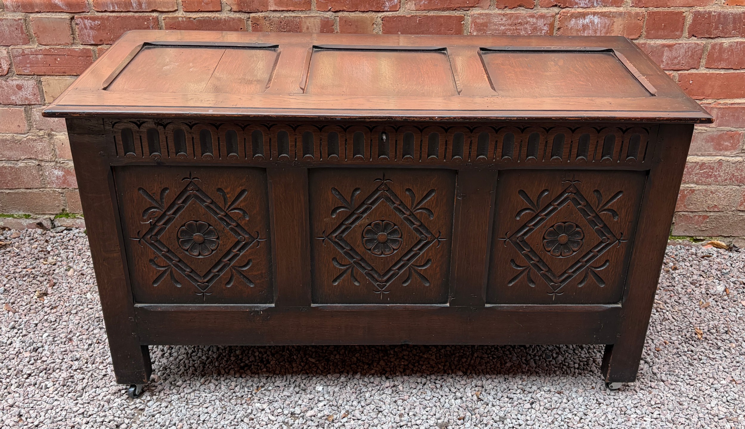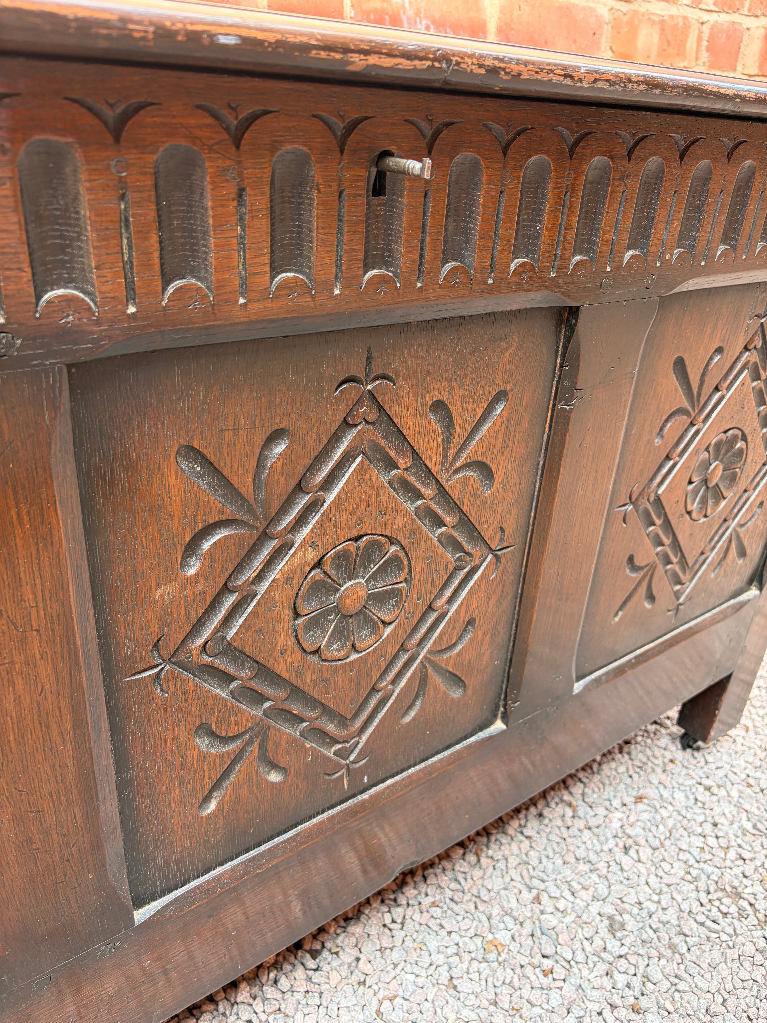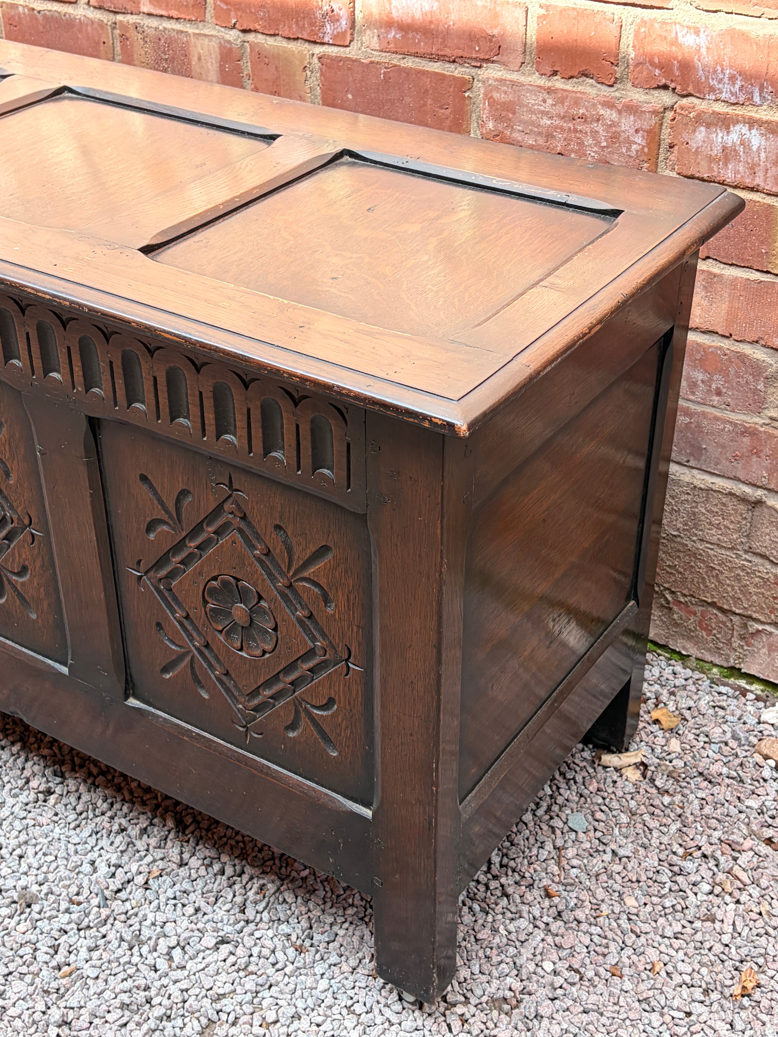OAK CARVED PANEL FRONT COFFER
