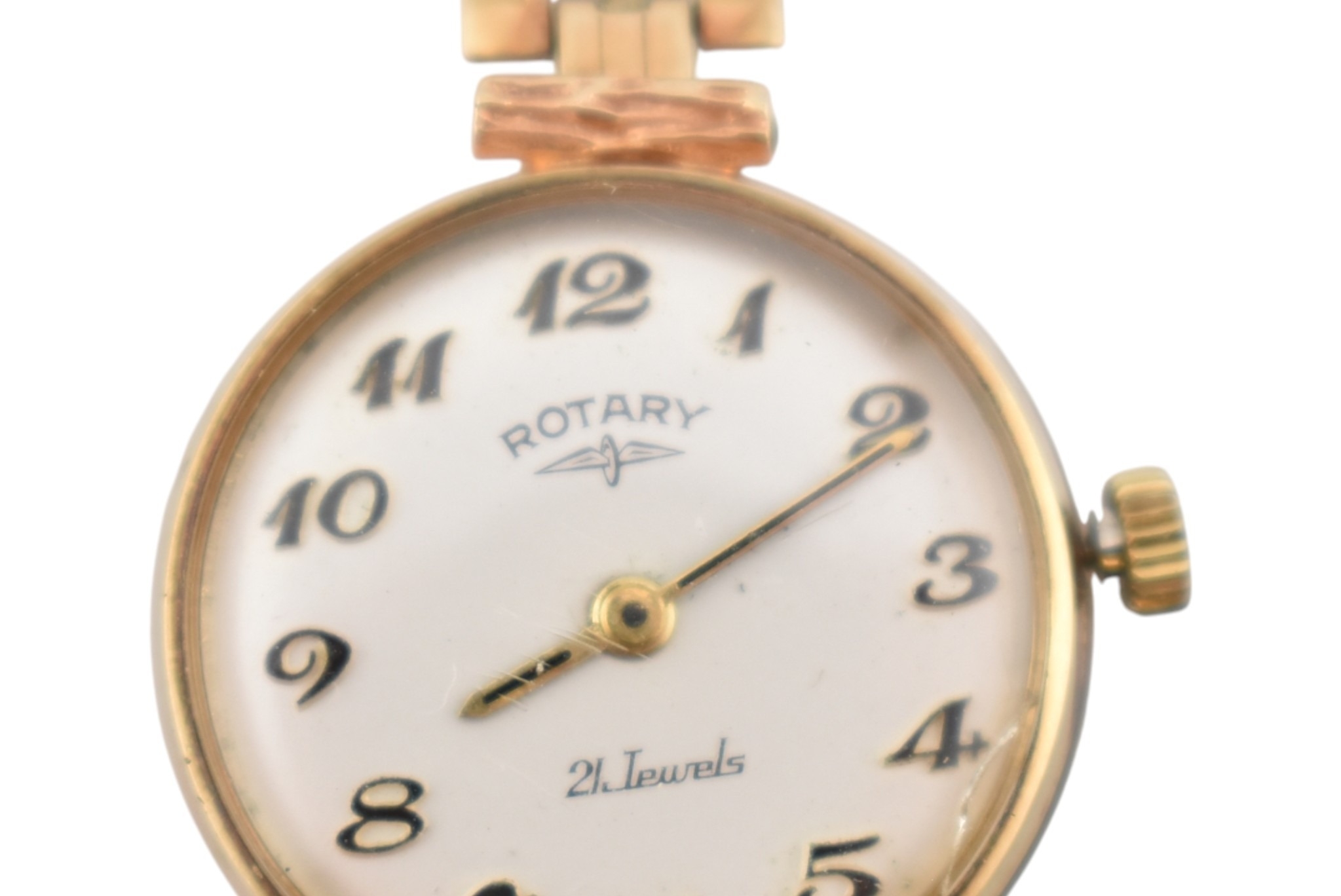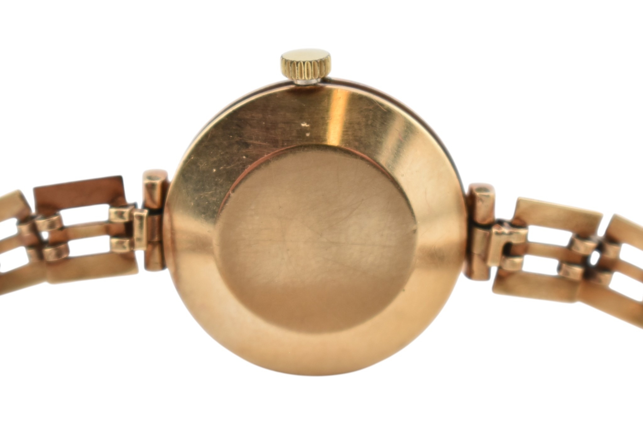 A hallmarked 9ct gold Rotary ladies wristwatch. Set to a hallmarked 9ct gold strap. 2cm dial.Hallmarked London 1968. Weight 14.8g. Measures 16cm. In original case.
