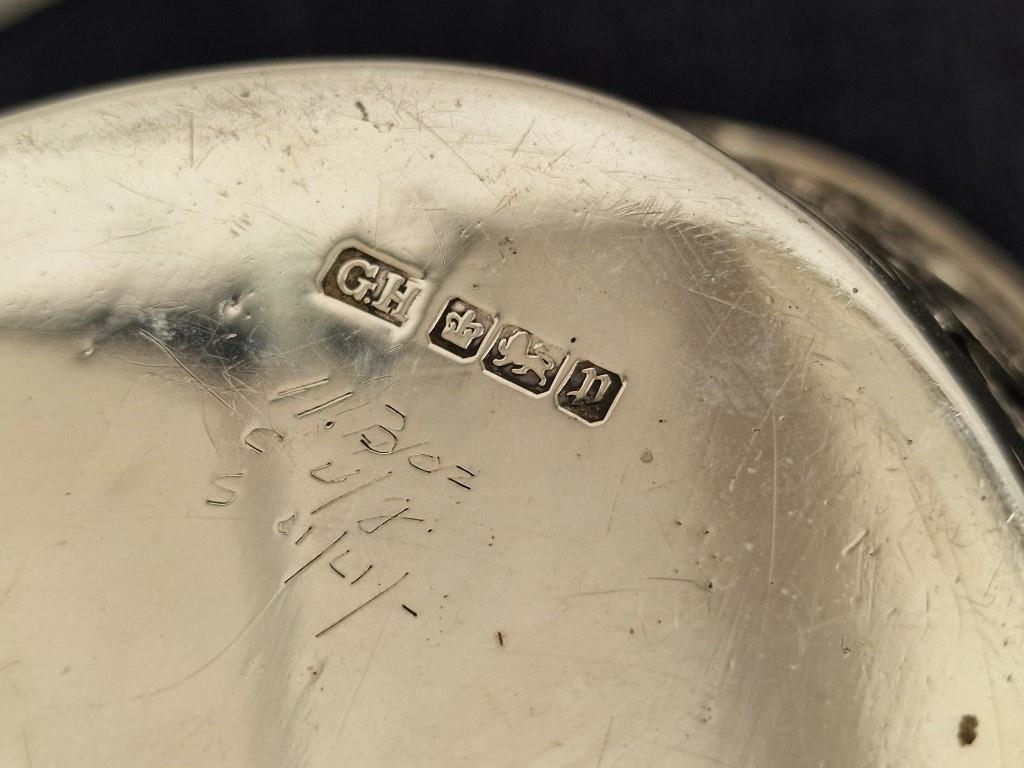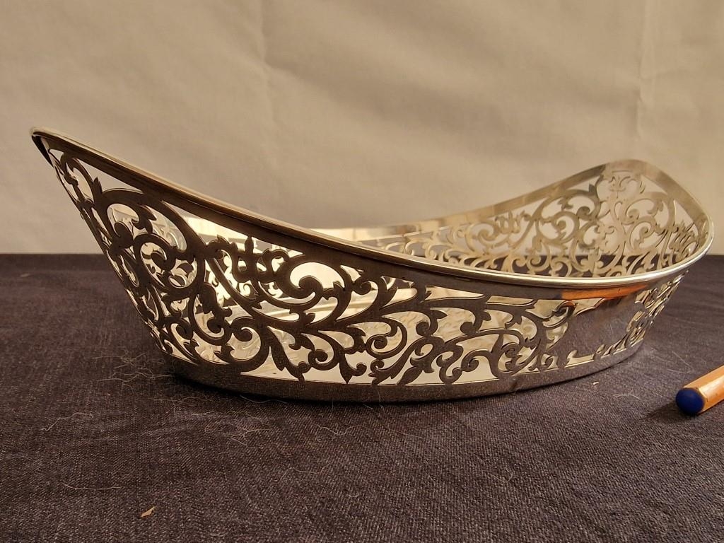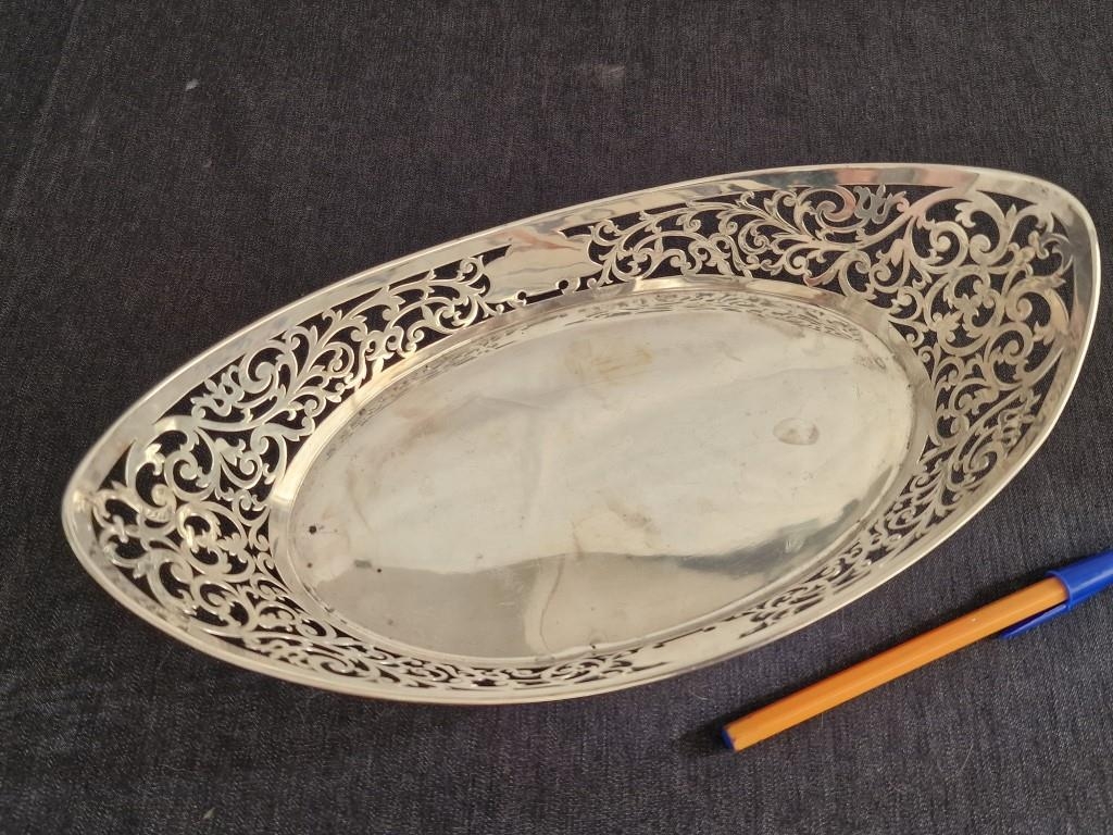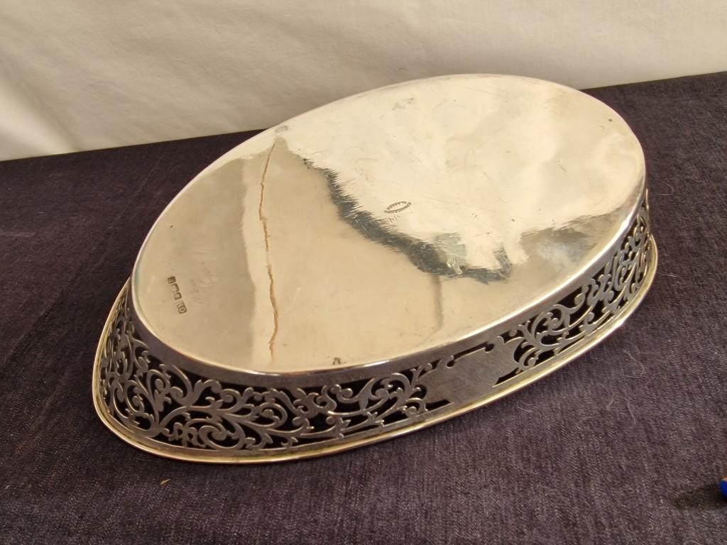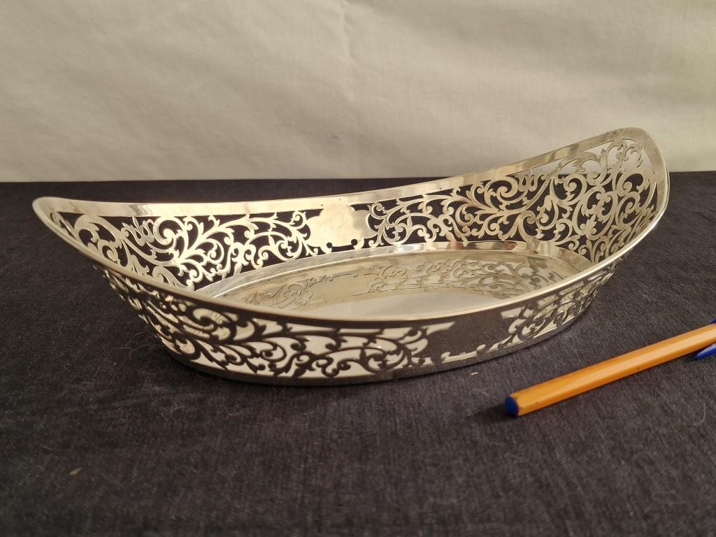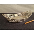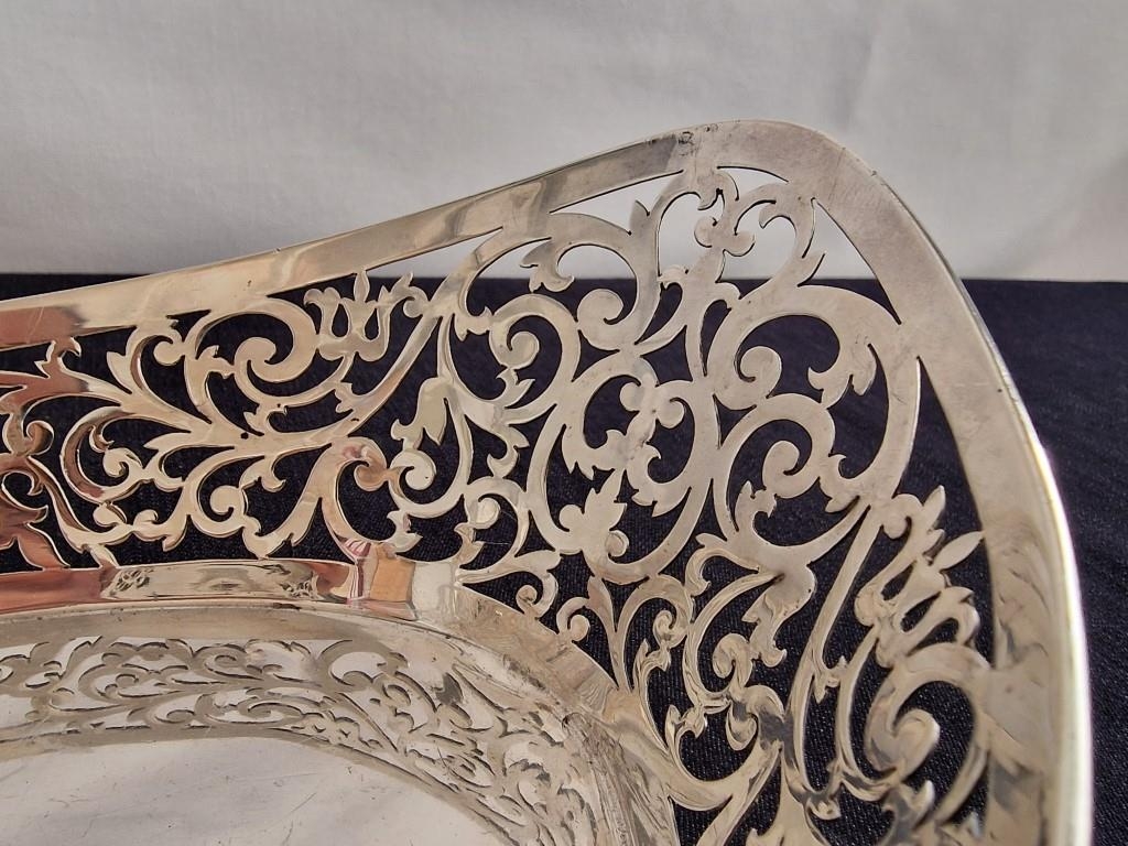Antique Sterling Silver Oval Shape Pierced Bowl with Decorative Floral Design, Sheffield, Circa 1907, by 'Harrison Brothers and Howson, (Approx. 344g, 29 x 16 x 17cm Overall)
