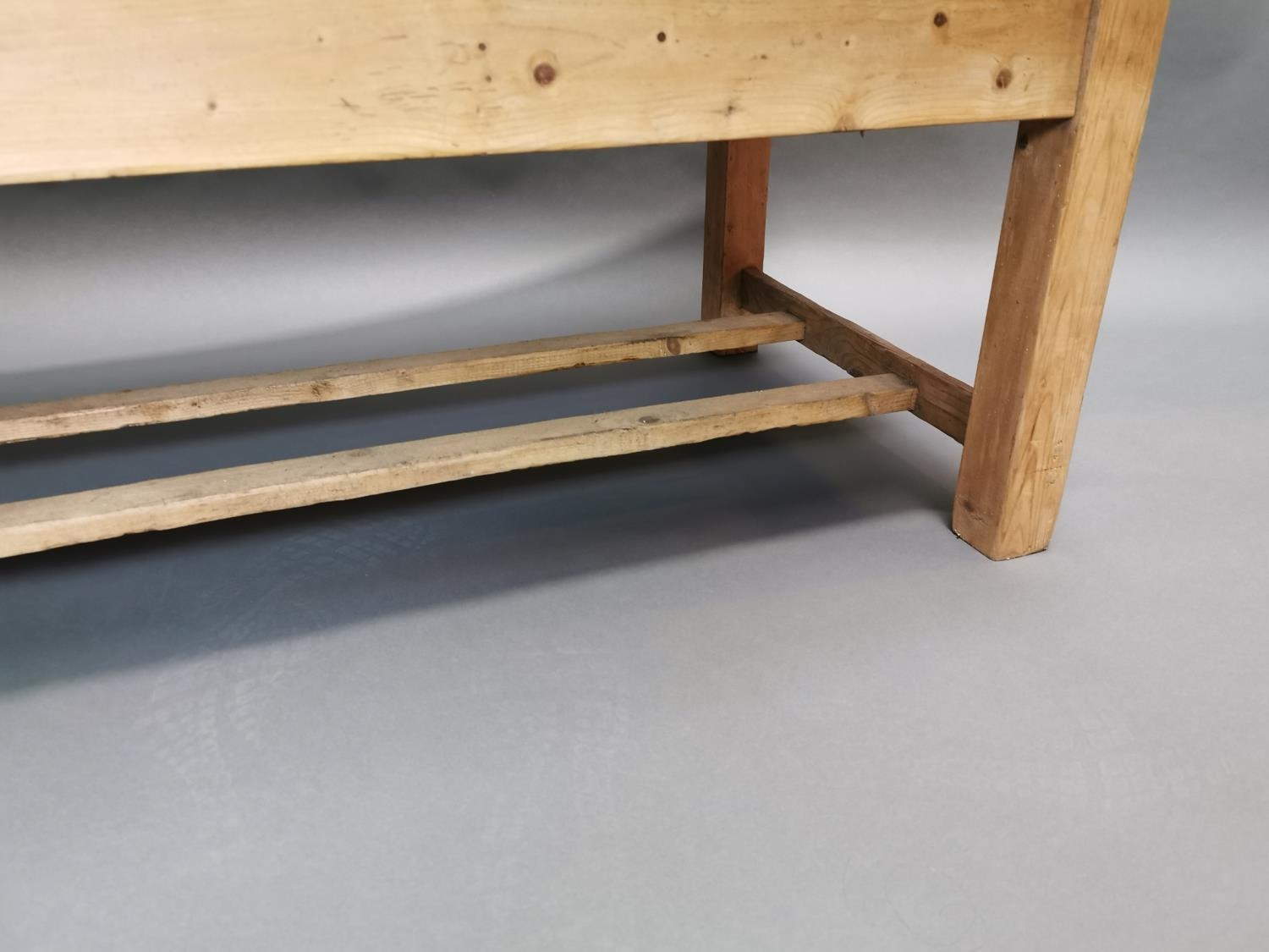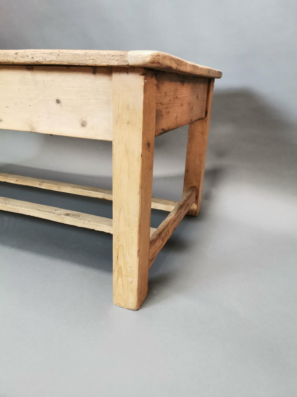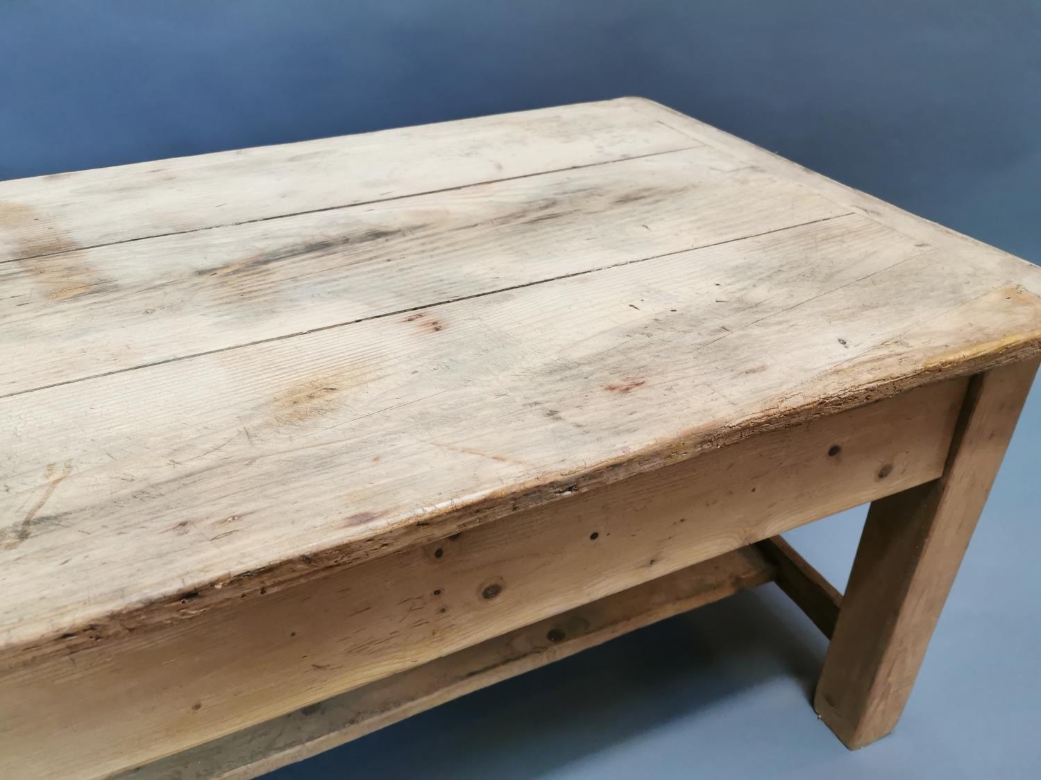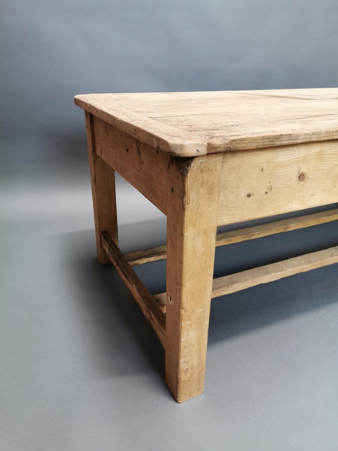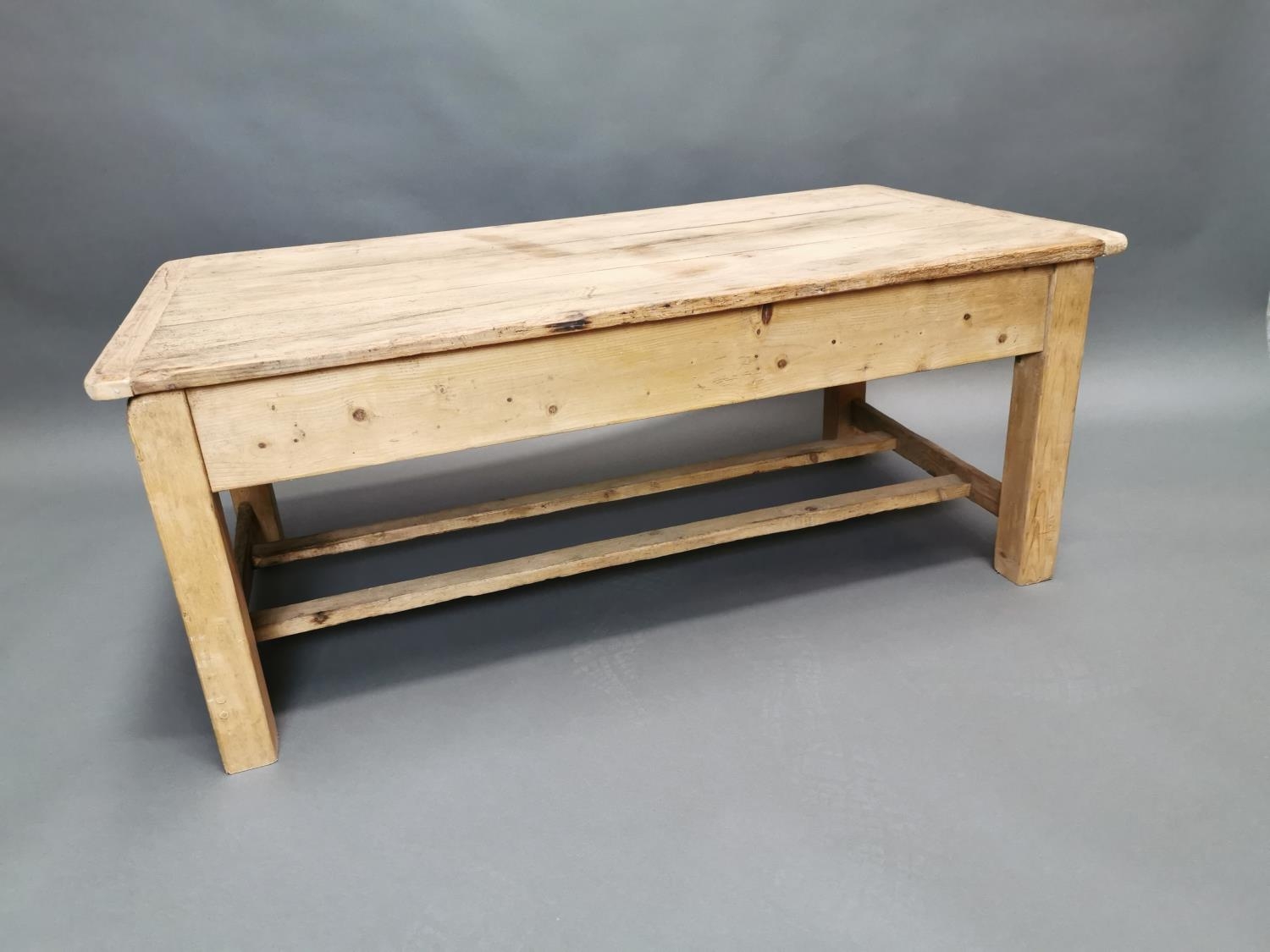 Early 20th C. stripped pine coffee table {50 cm H x 120 cm W x 67 cm D}.