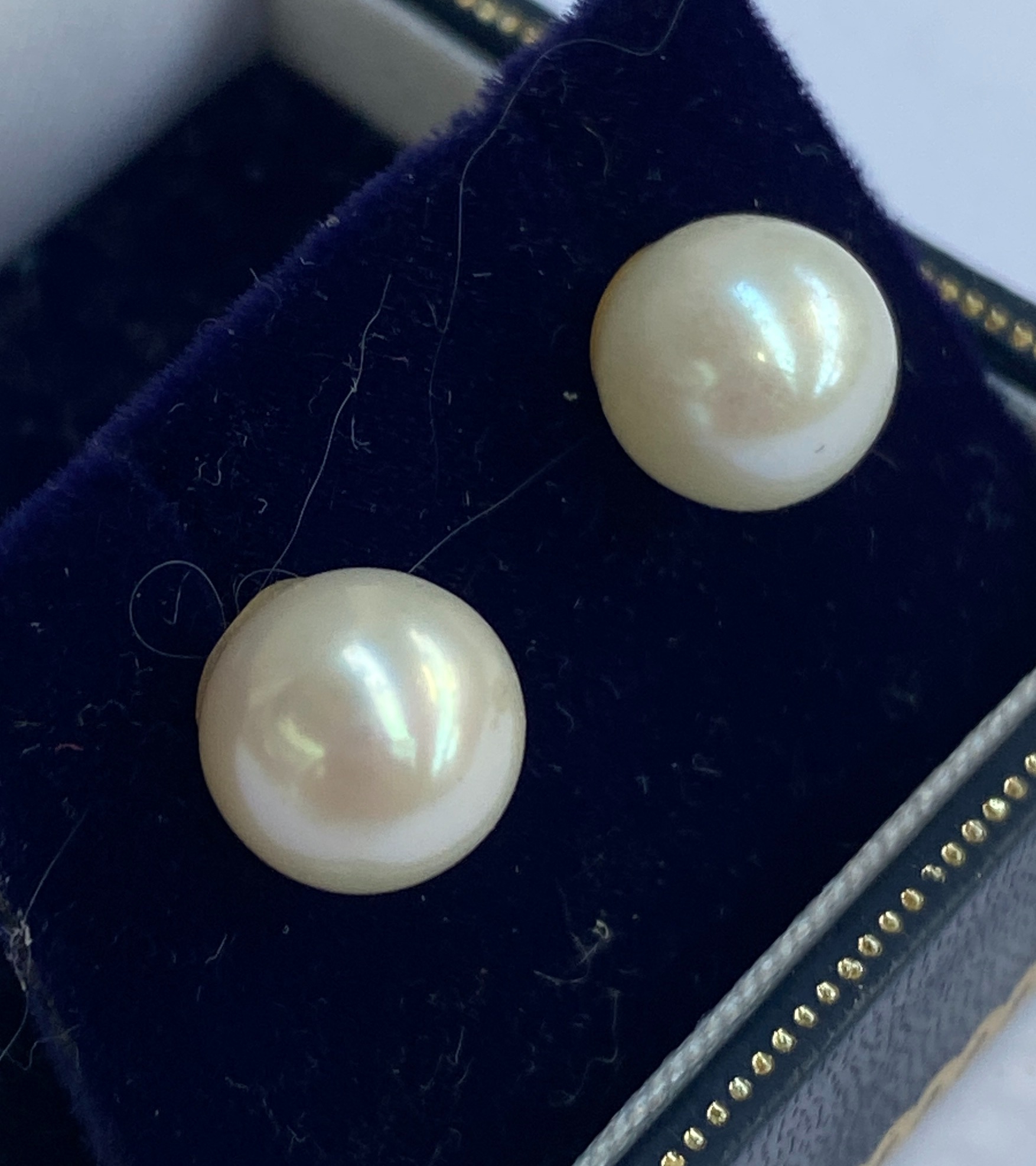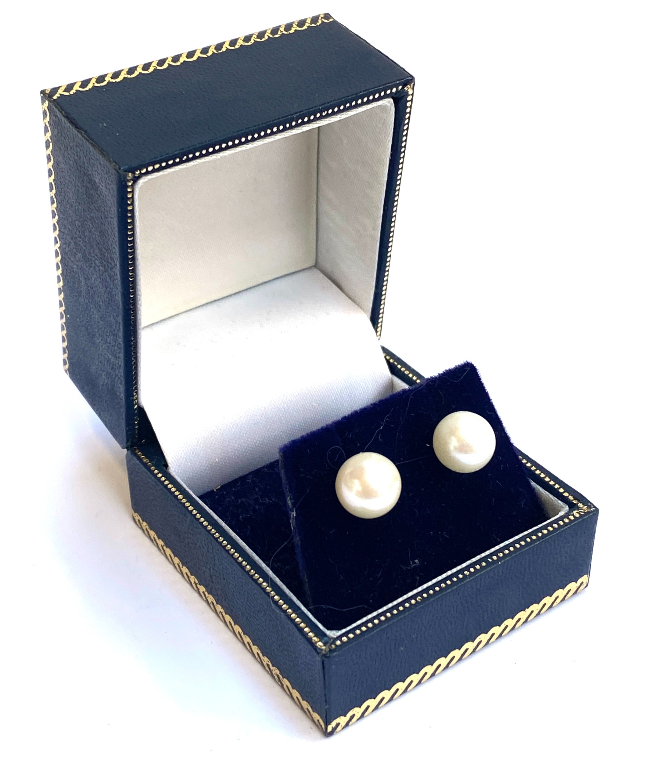 A pair of 9ct gold and cultured pearl stud earrings, the pearls 0.8cmD