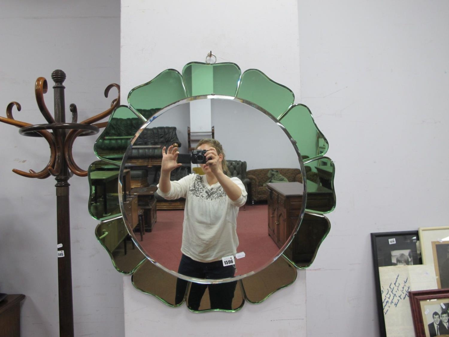 Art Deco Circular Wall Mirrror, with green petals to exterior, 60cm diameter.