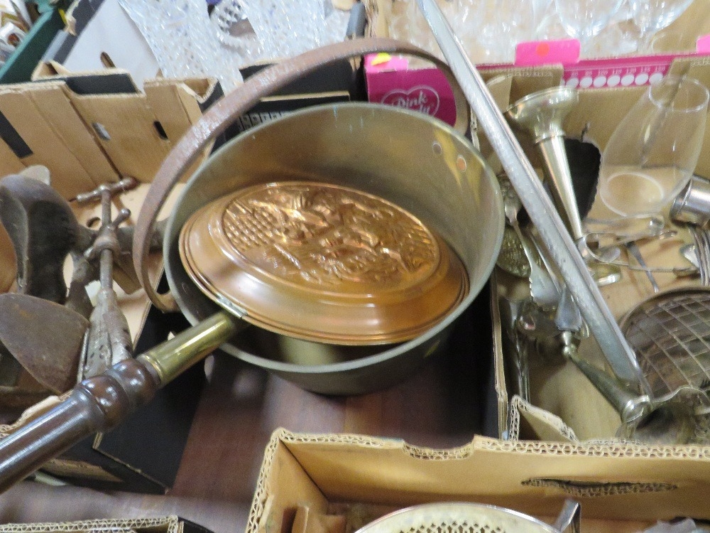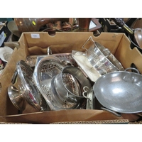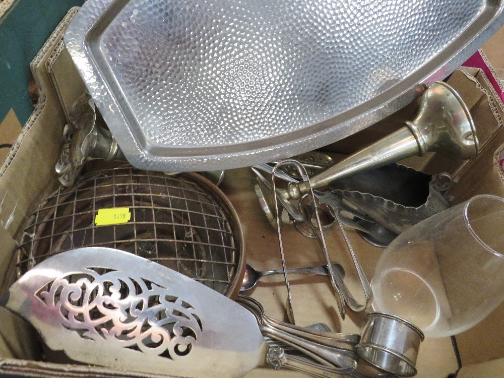 Two small trays of assorted metal ware to include silver plated ware, boot lace, jam pam etc
