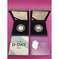 Two Royal Mint UK Silver Proof 50p Coins, includes a 202 Coronation of King Charles III and a 2024 D-Day, both cased with certificates of authenticity.