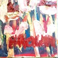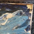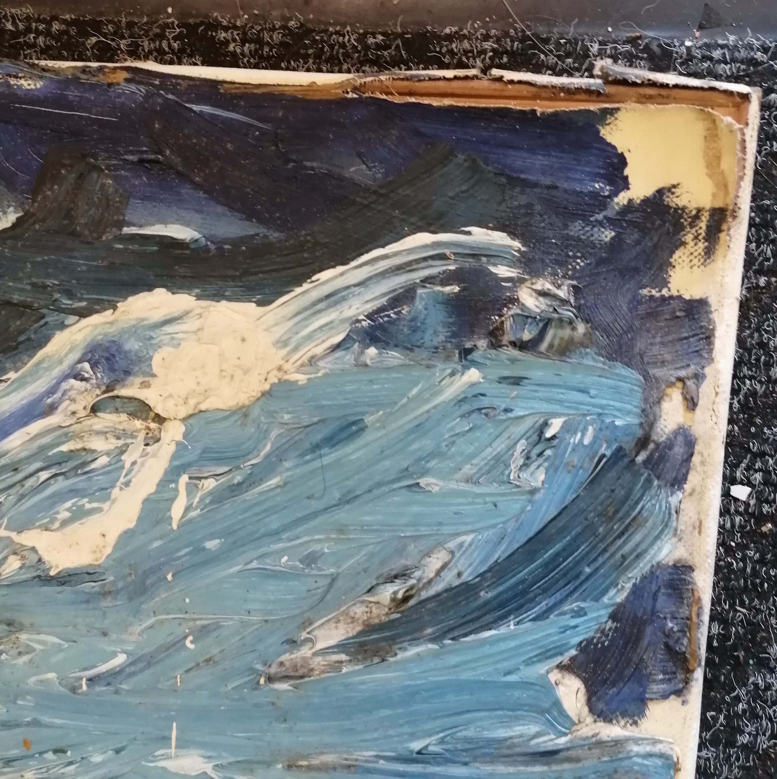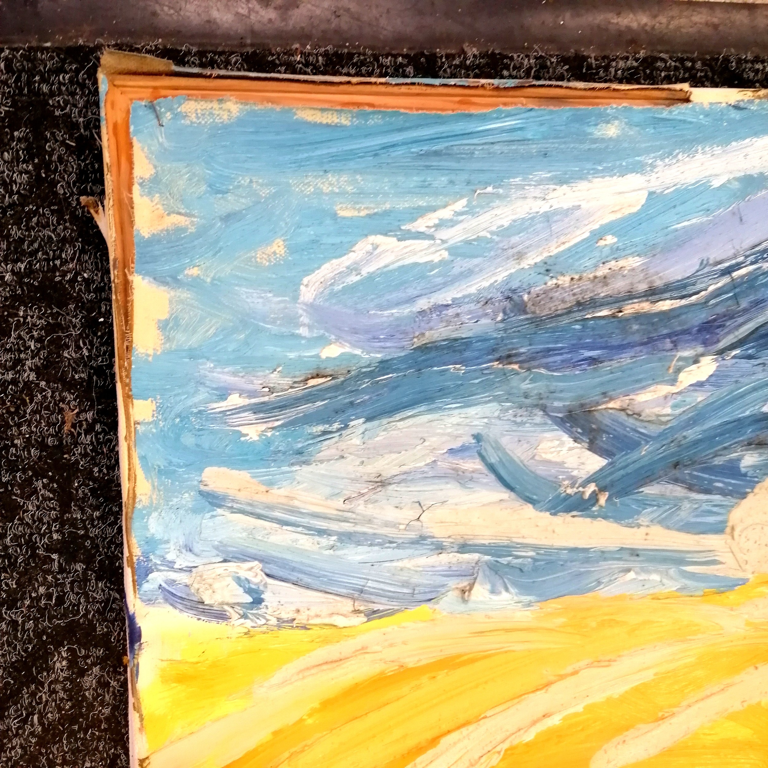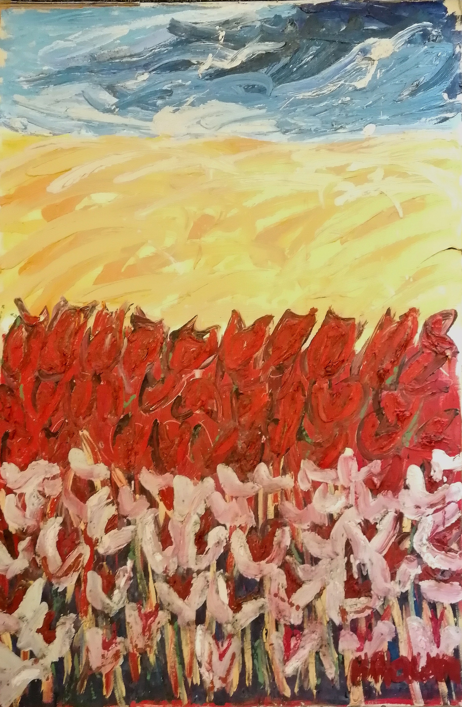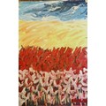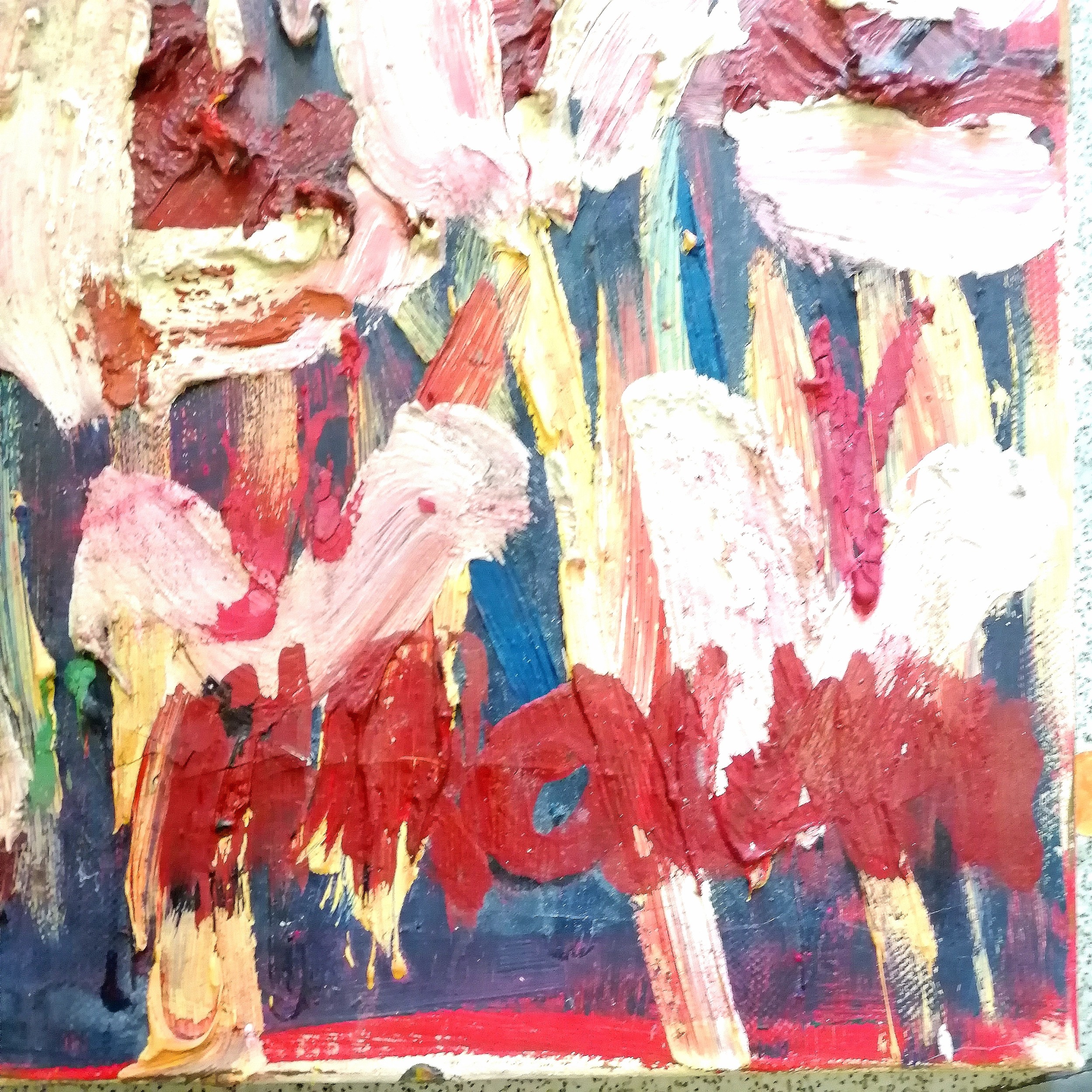 Large signed abstract oil painting on canvas of flowers in a field - 120cm x 80cm ~ canvas a/f to top and warped