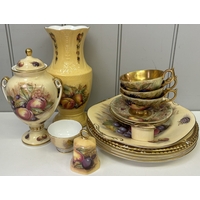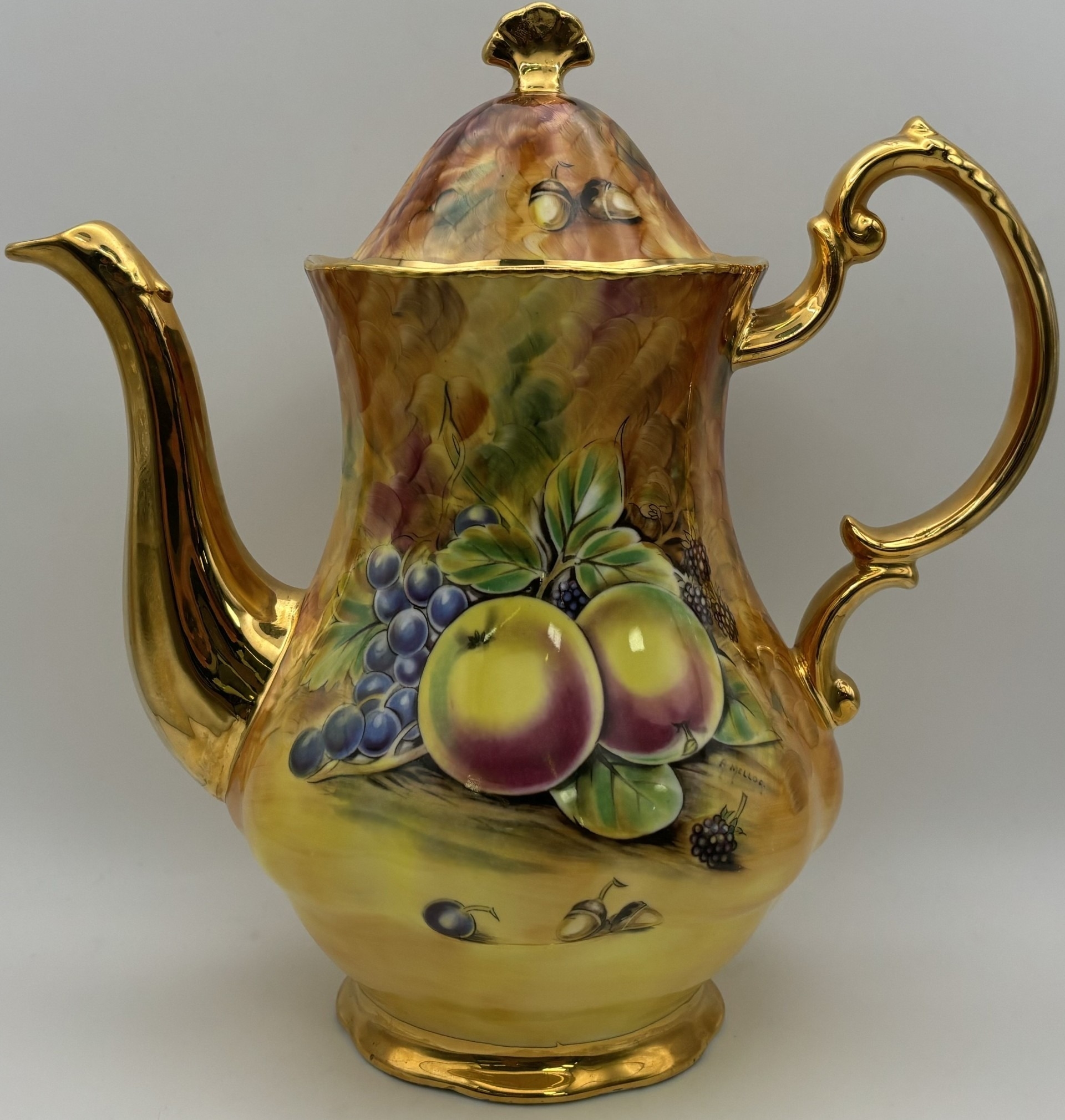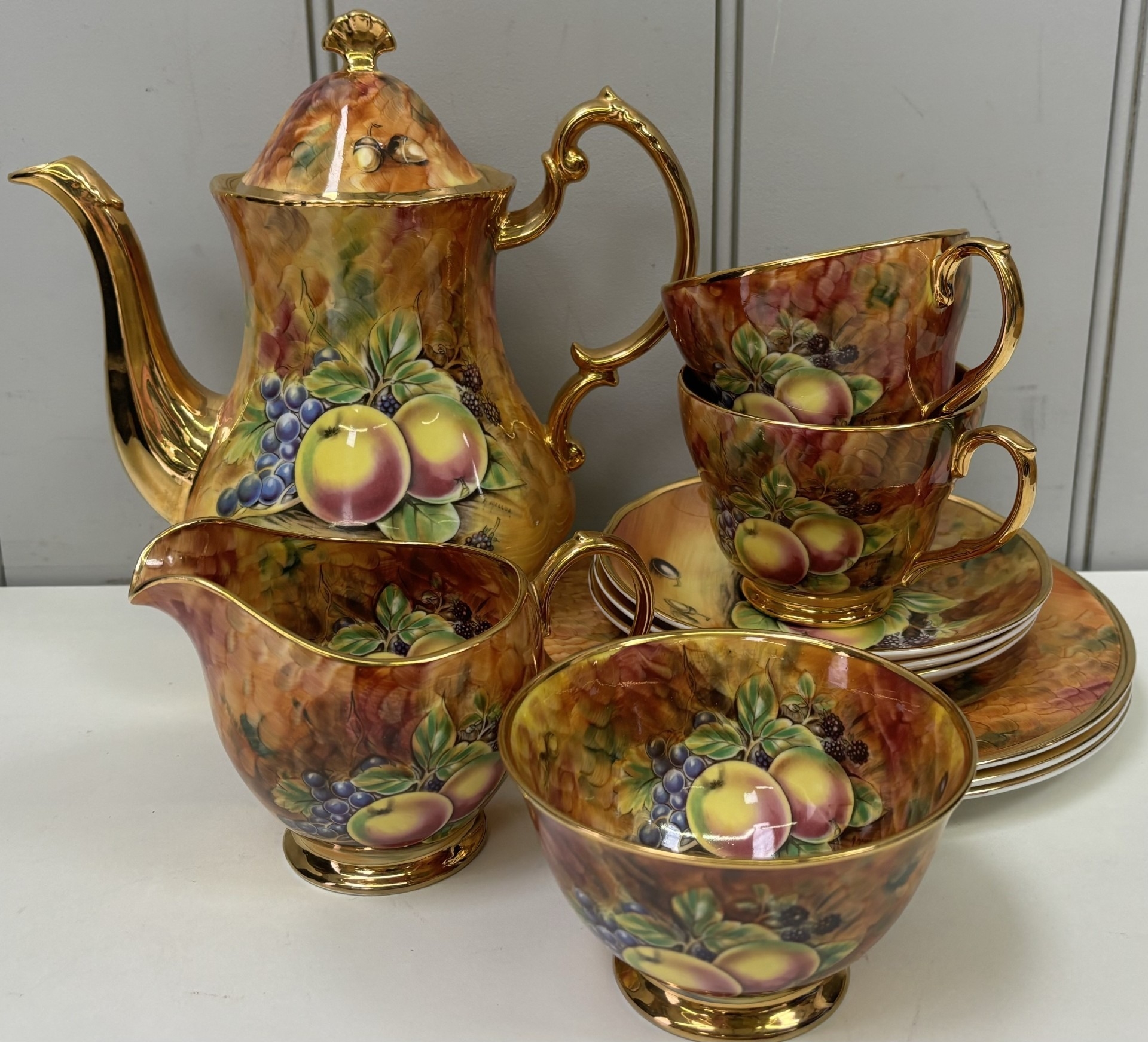 'Baroness' Fallen Fruit part-coffee set. To include coffee pot, 2 cups, 3 saucers, 3 side plates, milk jug & sugar bowl.