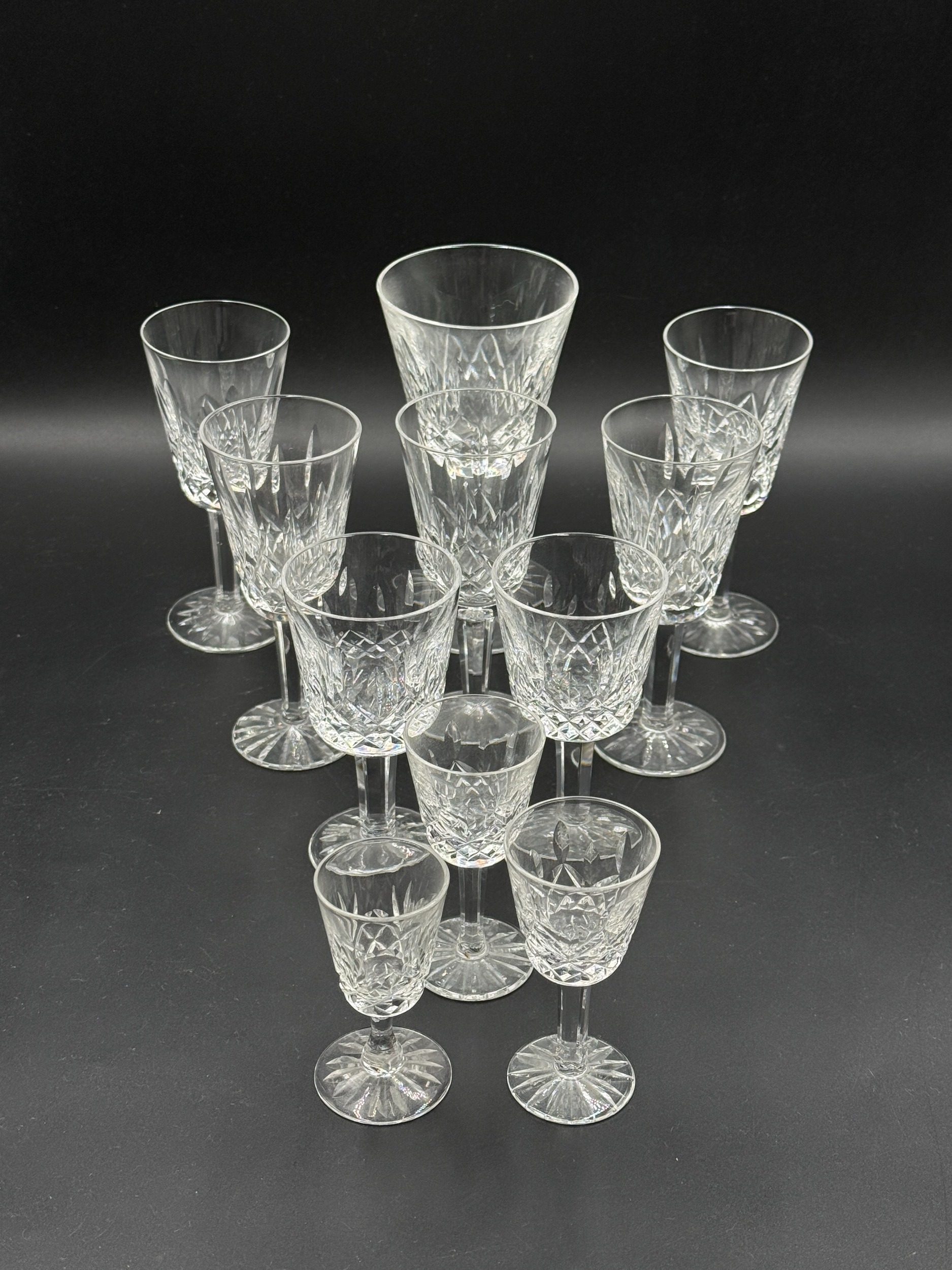 Eleven pieces of glassware, ten Waterford Crystal Lismore pattern and one Royal Doulton - largest approx. 15cm high
