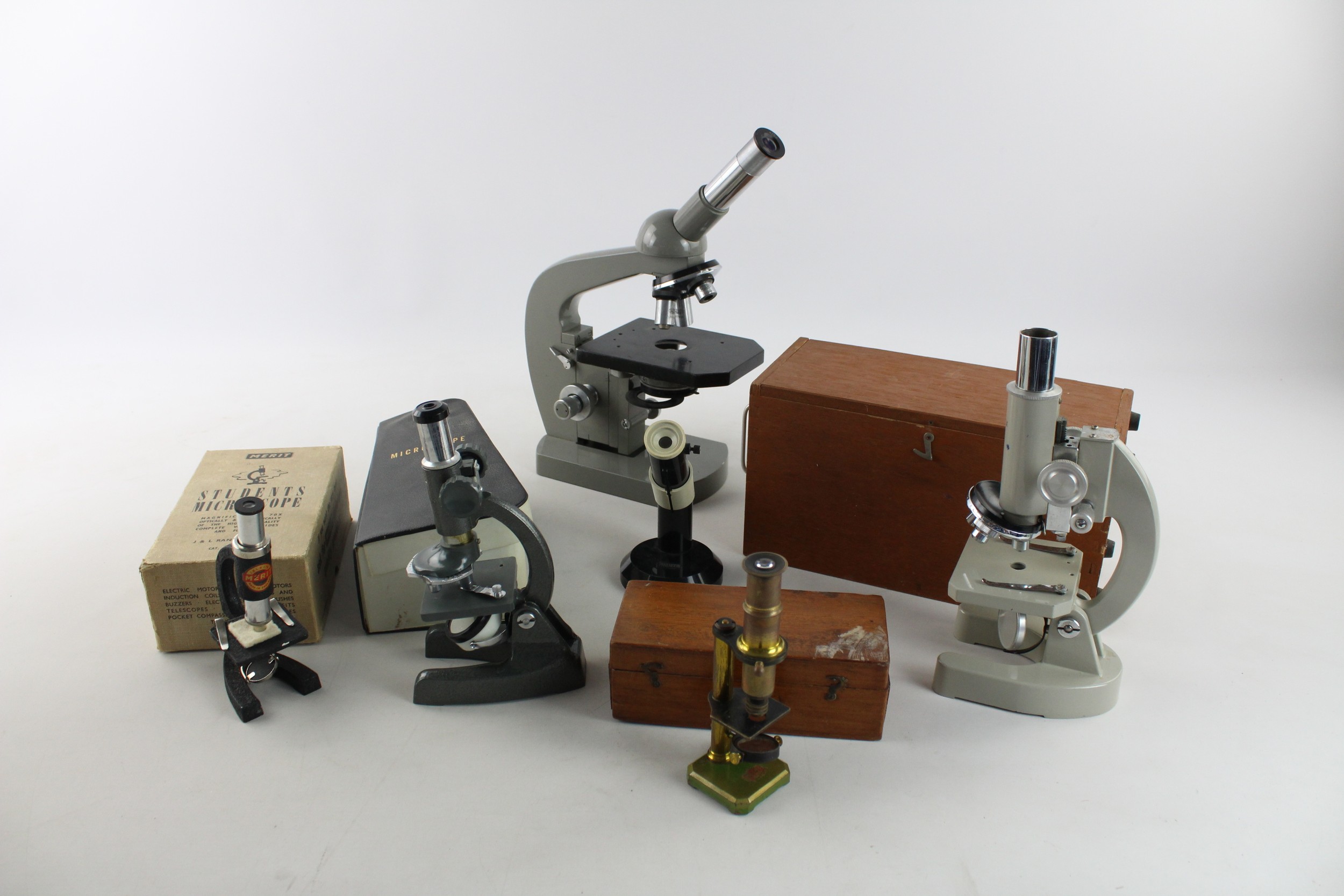 6 x Assorted Vintage MICROSCOPES Inc. Some Boxed & Various Brands