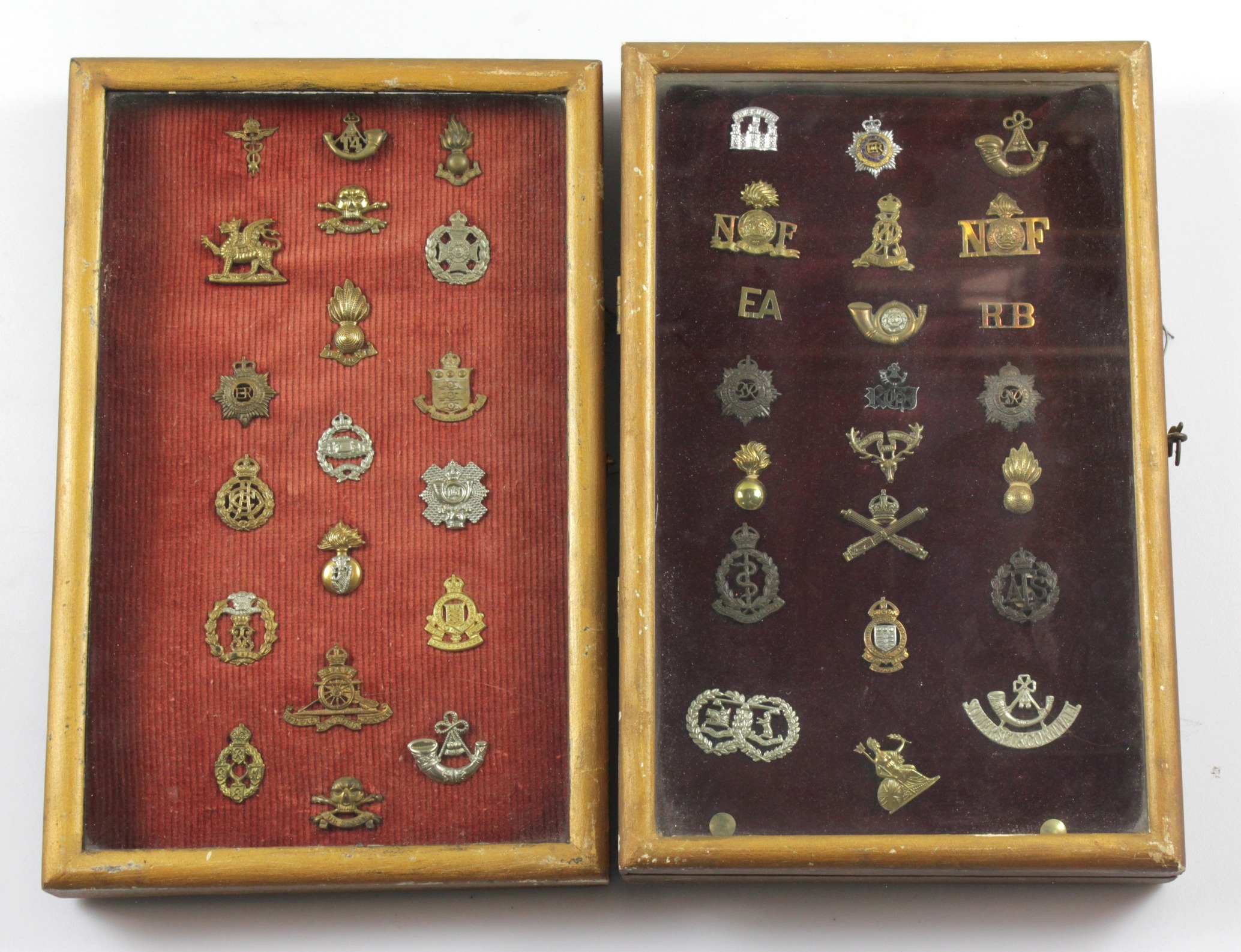 Badges two frames of collar badges various regiments.