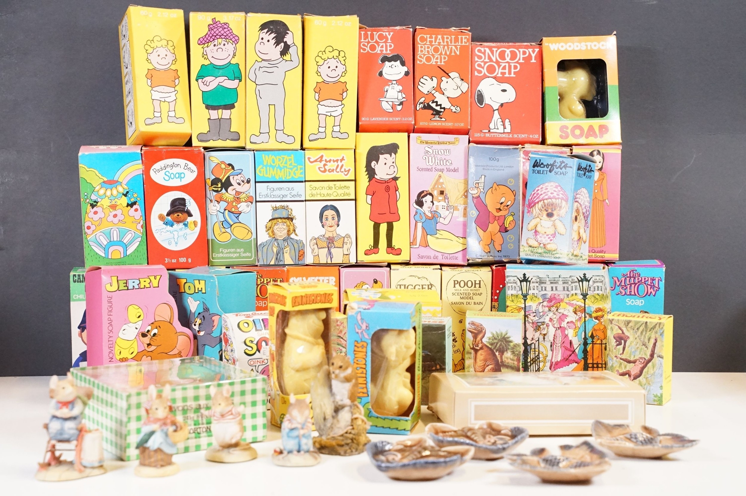A large collection of 1970's / 1980's novelty soaps within original boxes together with a small collection of Border fine arts figures.