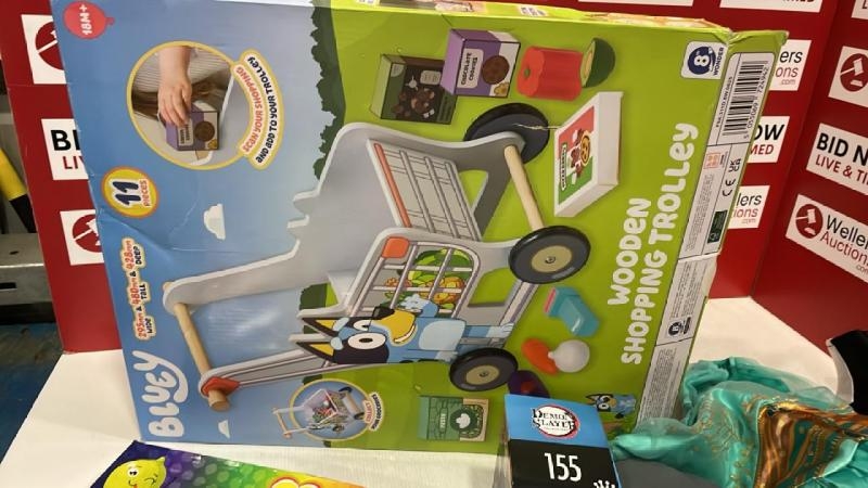 BAG OF X8 ASSORTED TOYS INC. NEW BLUEY SHOPPING TROLLEY / VIEW, BID AND BUY IN THE ROOM, THEN TAKE AWAY THE SAME DAY / VIEWING FROM 8AM ON THE DAY OF THE SALE / PLEASE NOTE: ANY PURCHASES LEFT AFTER 5 WORKING DAYS ME BE RE-SOLD TO COVER STORAGE & ADMIN